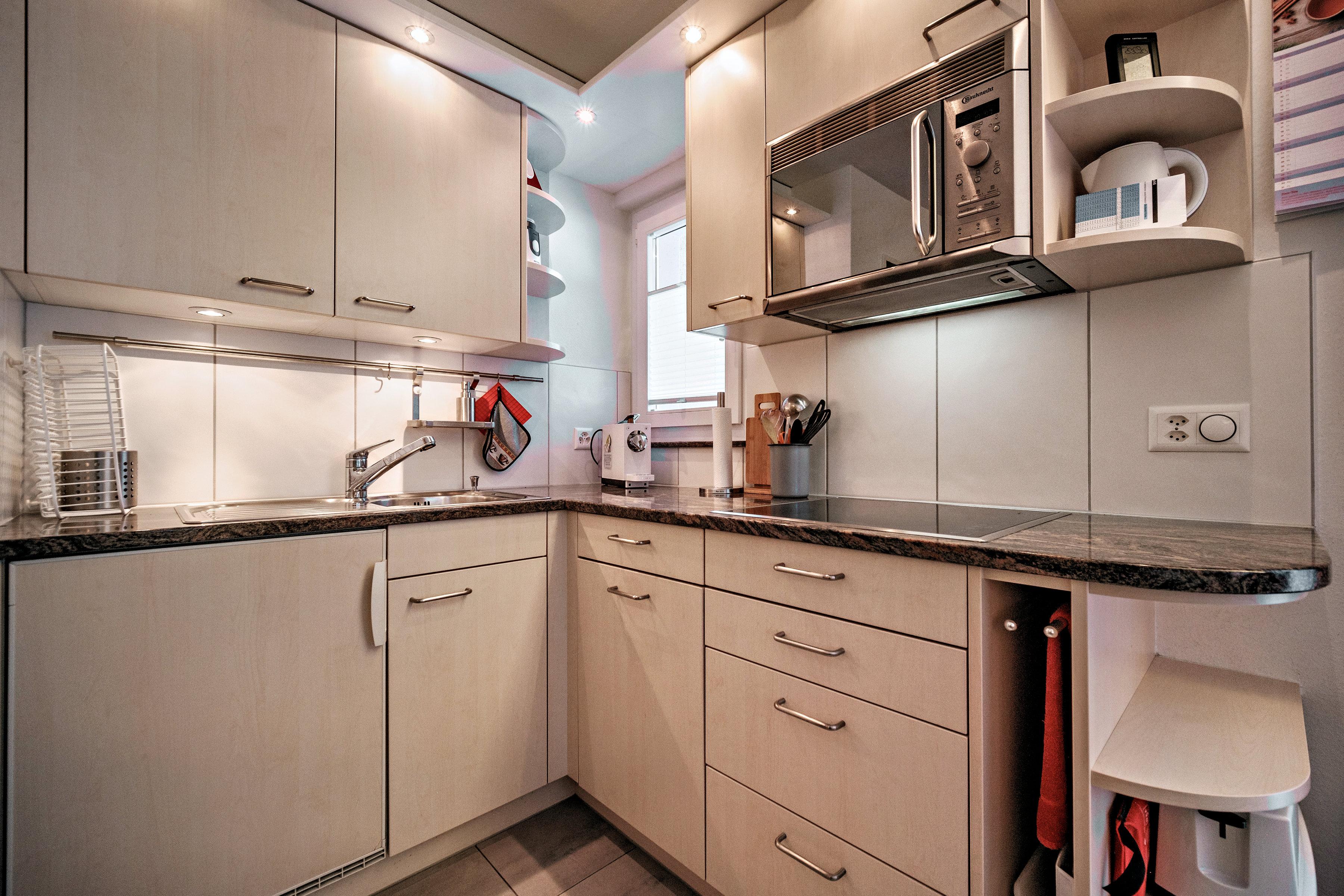 neue offene Küche mit Granitabdeckung, 4 Platten-Keramikkochfeld, Mikrowellen-Kombiofen, Kühlschrank, Kaffeemaschine, Toaster, Fondueset, etc.