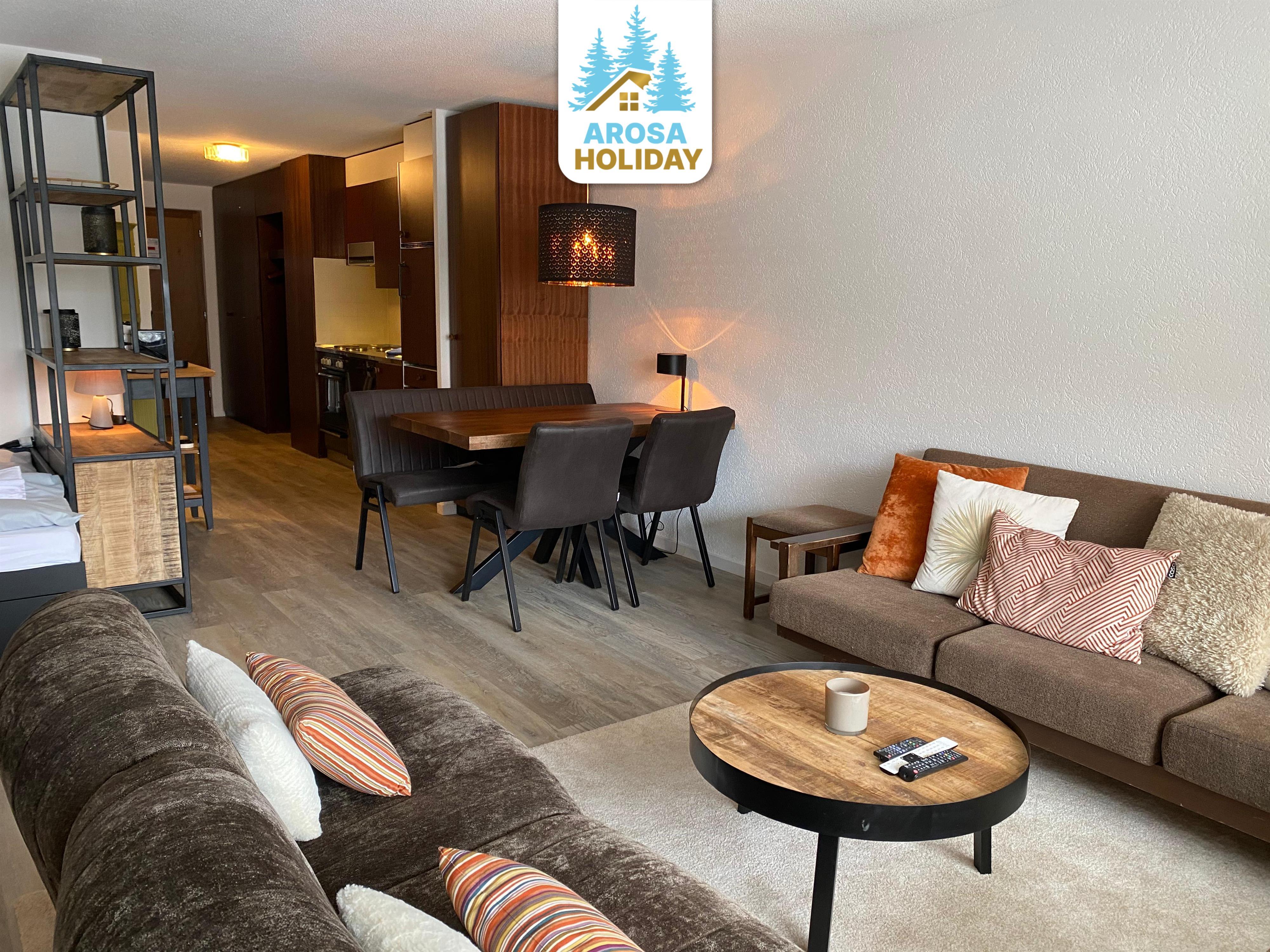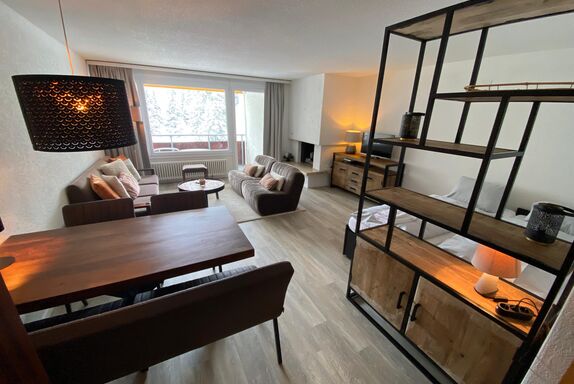 Die geräumige 2-Zimmer-Wohnung befindet sich im 5. Stock des Rothornblick Gebäudes an ruhiger Lage und von viel Natur umgeben. Der Balkon bietet einen herrlichen Bergblick. Während den Öffnungszeiten des direkt nebenan gelegenen Hotel Robinson Club Arosa, können der Swimming Pool und das Fitness kostenfrei mitbenutzt sowie im Winter vom Skibus profitiert werden.