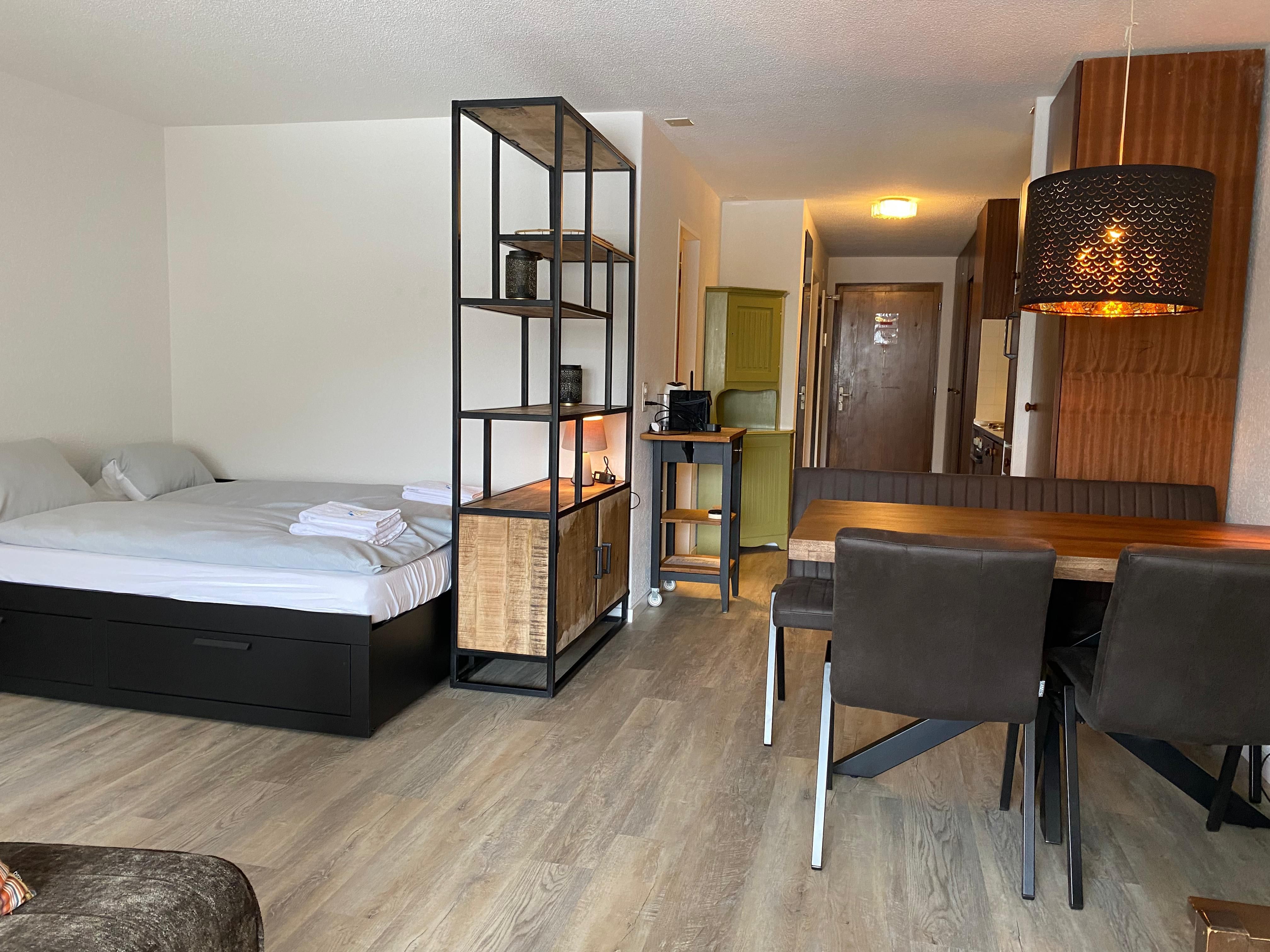 Die renovierte geräumige 2-Zimmer-Wohnung befindet sich im 5. Stock des Rothornblick Gebäudes an ruhiger Lage und von viel Natur umgeben. Der Balkon bietet einen herrlichen Bergblick.