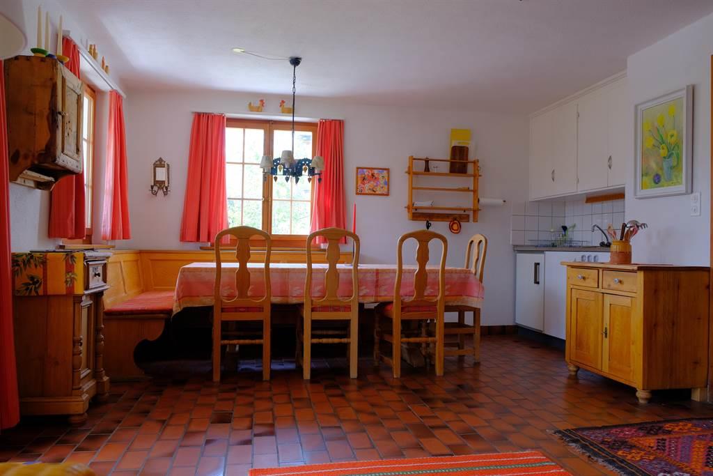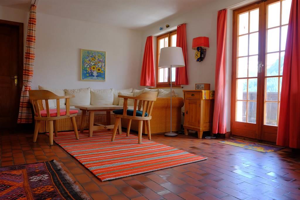 2-Zimmerwohnung mit schöner Wohnküche, großes, freundlich eingerichtetes Wohn- und Esszimmer mit ausziehbarem Sofa (Doppelbett), TV, ein Schlafzimmer mit französischem Bett und Zusatzbett, ein Sitzbad/WC, Autoabstellplatz, grosser Balkon