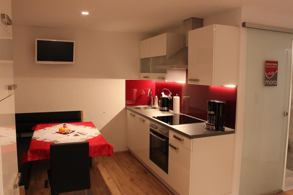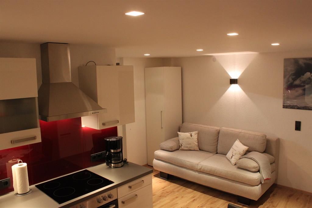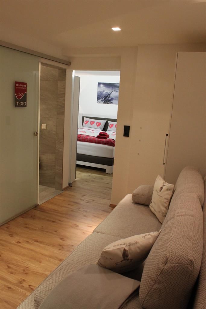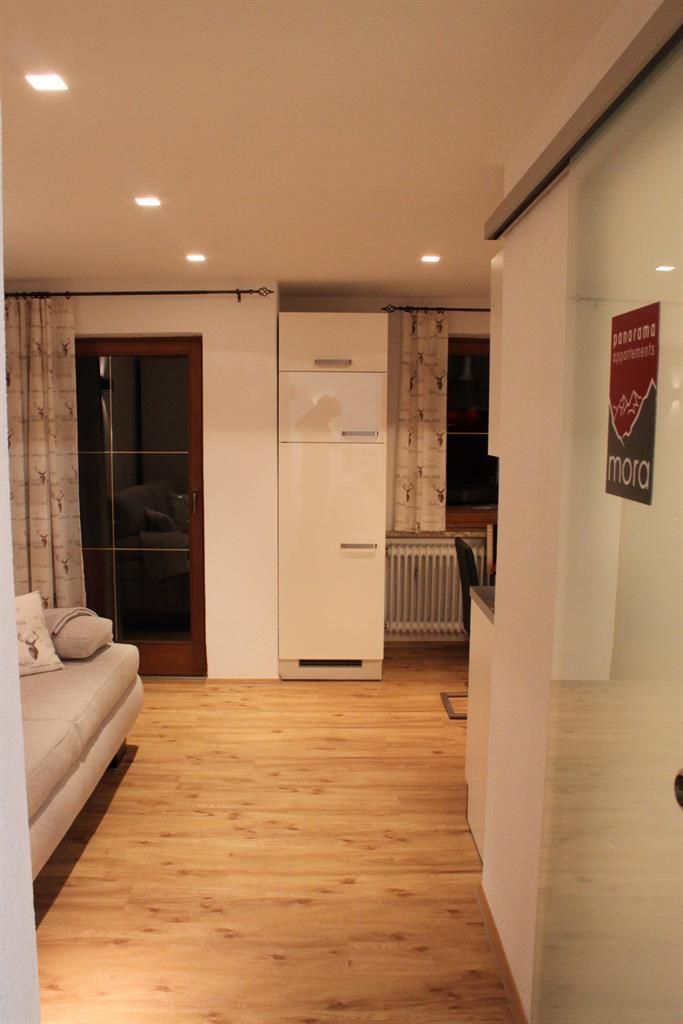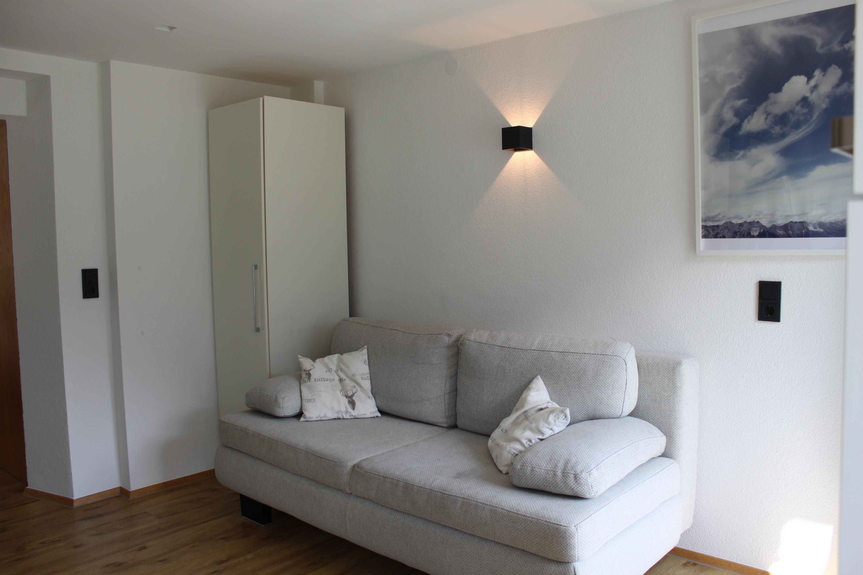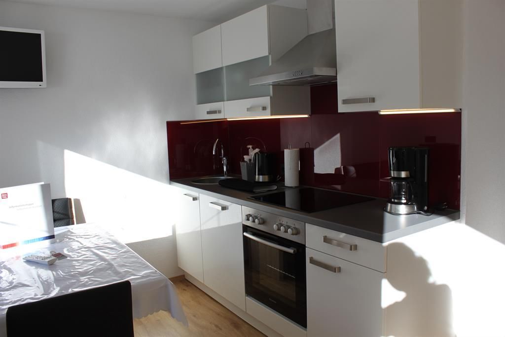 Unser neu renoviertes Appartement verfügt über 1 Schlafzimmer mit Doppelbett und Terrasse, Badezimmer mit Du/Wc und Wohnküche mit hochwertiger Schlafcouch und Balkon mit Panoramablick. Die neue Küche mit Essecke ist komplett ausgestattet mit Kühlschrank, Gefrierfach, Geschirrspüler, 4-Zone Ceranfeld, Backofen, Spüle, Wasserkocher, Kaffeemaschine, Töpfe und Geschirr. In beiden Zimmern ist ein TV.