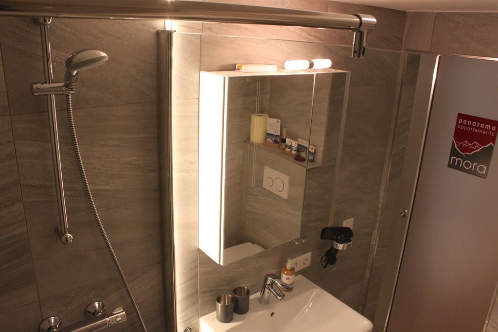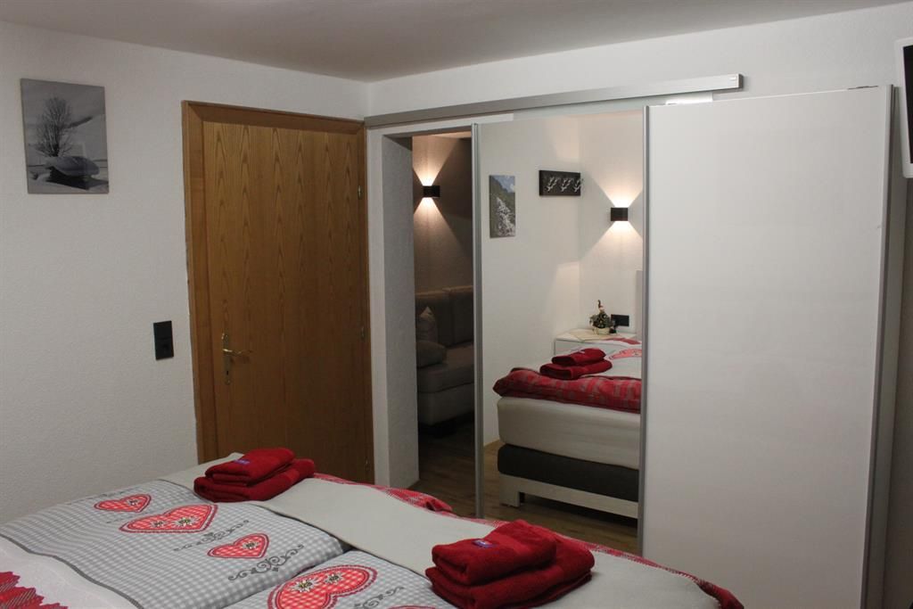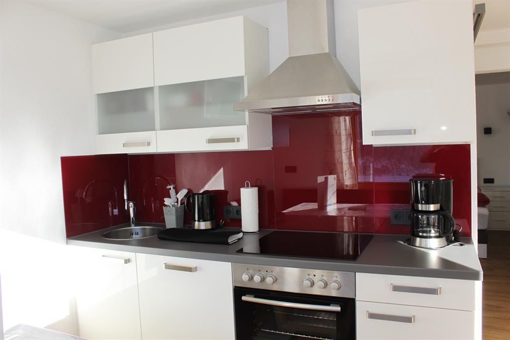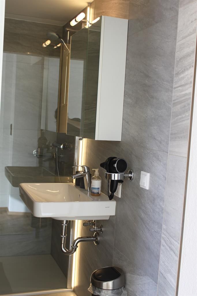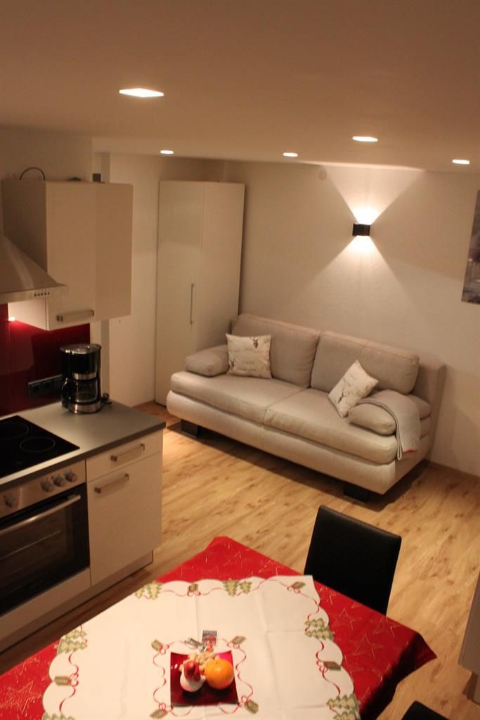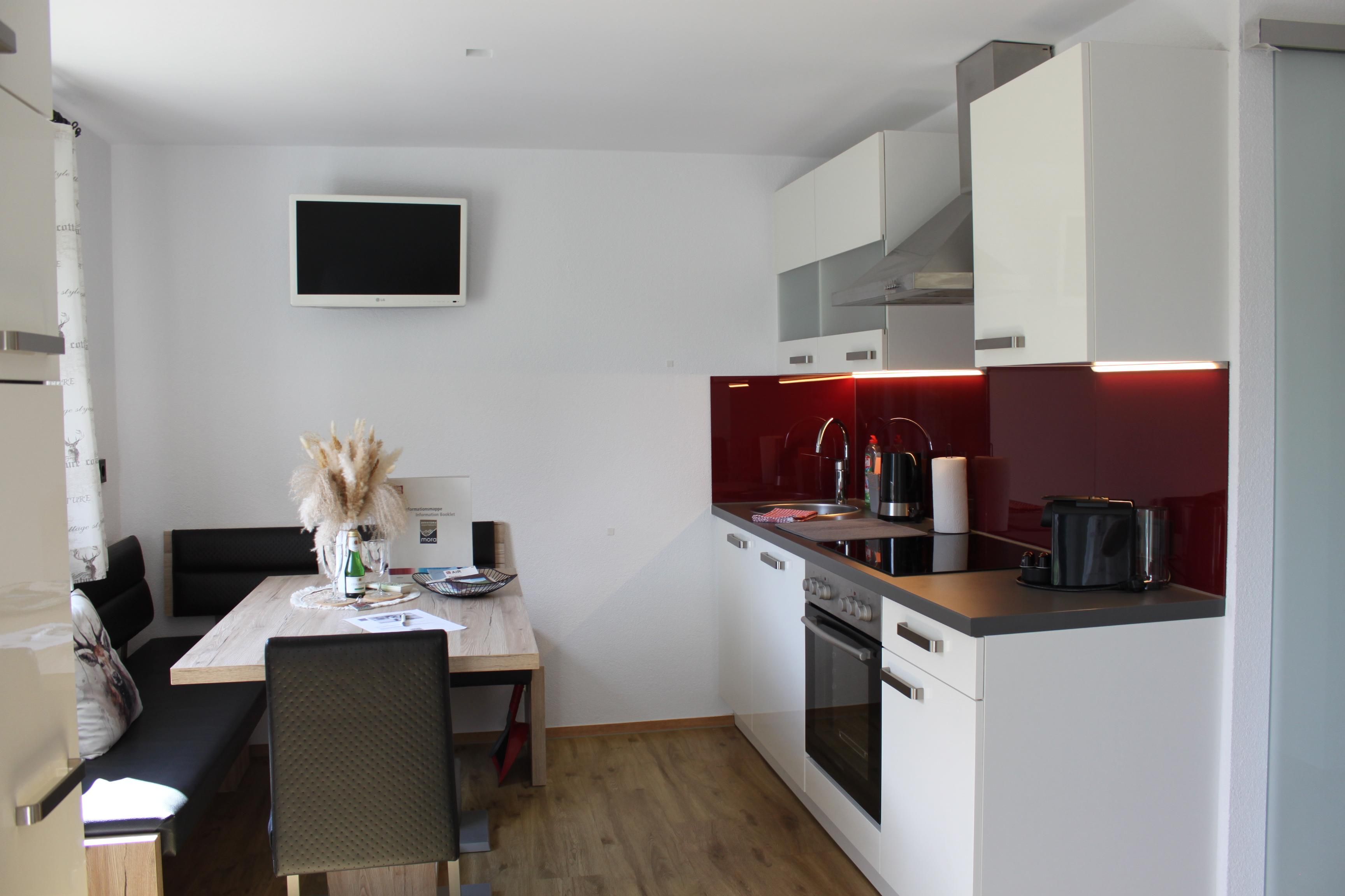 Unser neu renoviertes Appartement verfügt über 1 Schlafzimmer mit Doppelbett und Terrasse, Badezimmer mit Du/Wc und Wohnküche mit hochwertiger Schlafcouch und Balkon mit Panoramablick. Die neue Küche mit Essecke ist komplett ausgestattet mit Kühlschrank, Gefrierfach, Geschirrspüler, 4-Zone Ceranfeld, Backofen, Spüle, Wasserkocher, Kaffeemaschine, Töpfe und Geschirr. In beiden Zimmern ist ein TV.