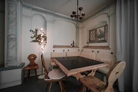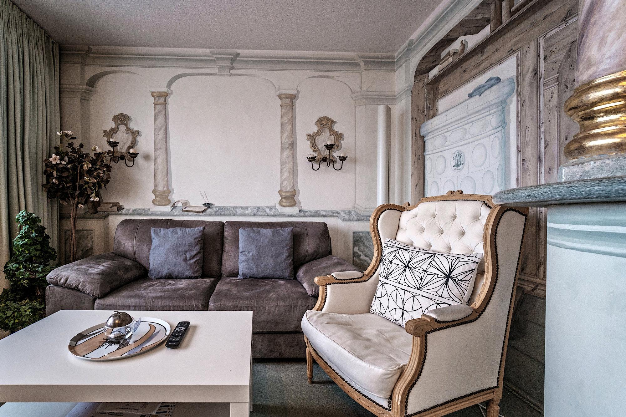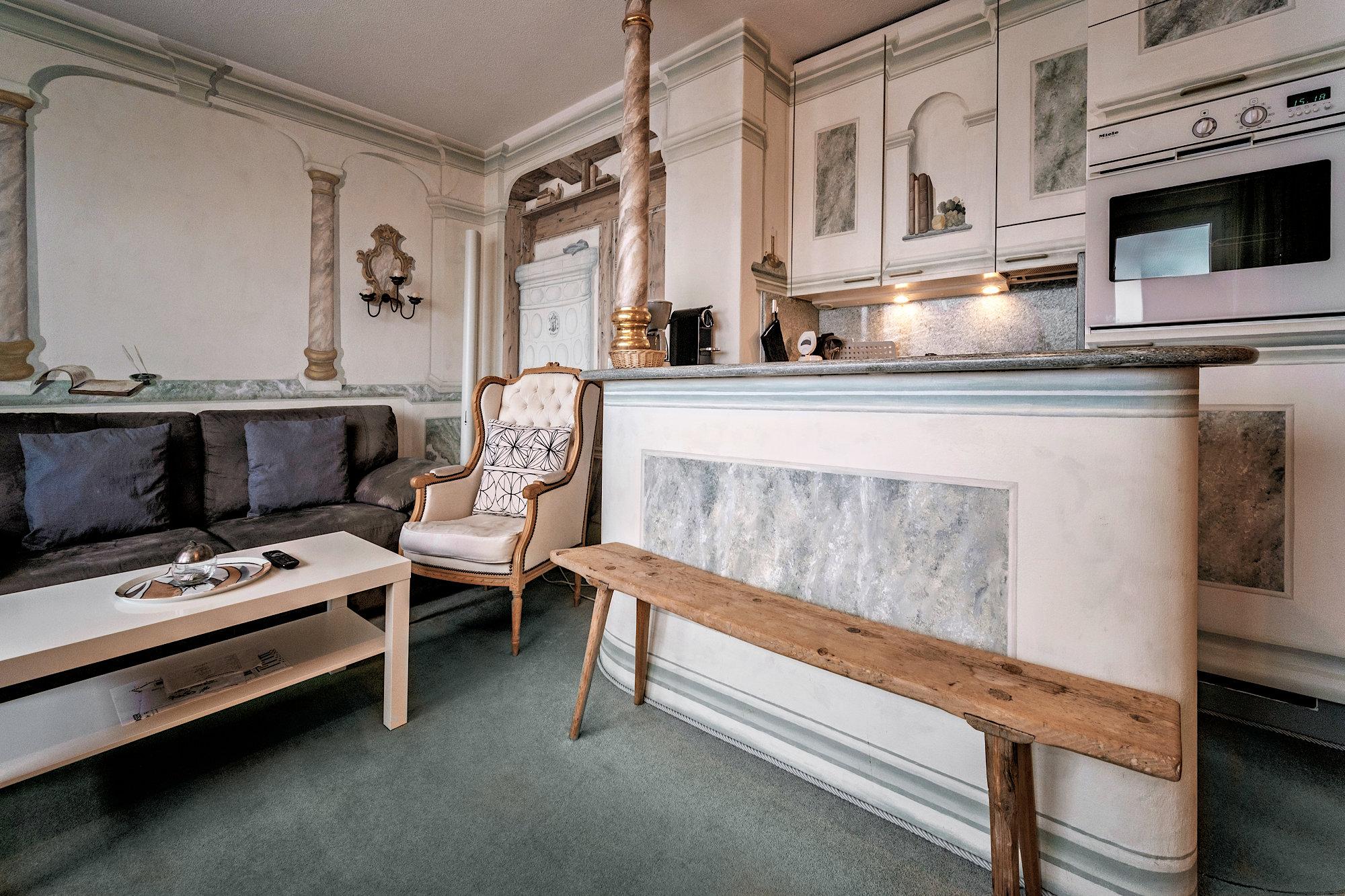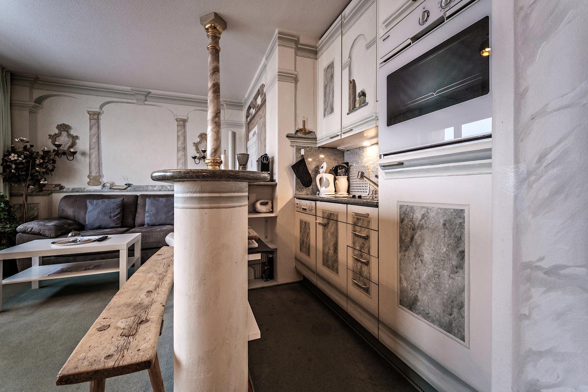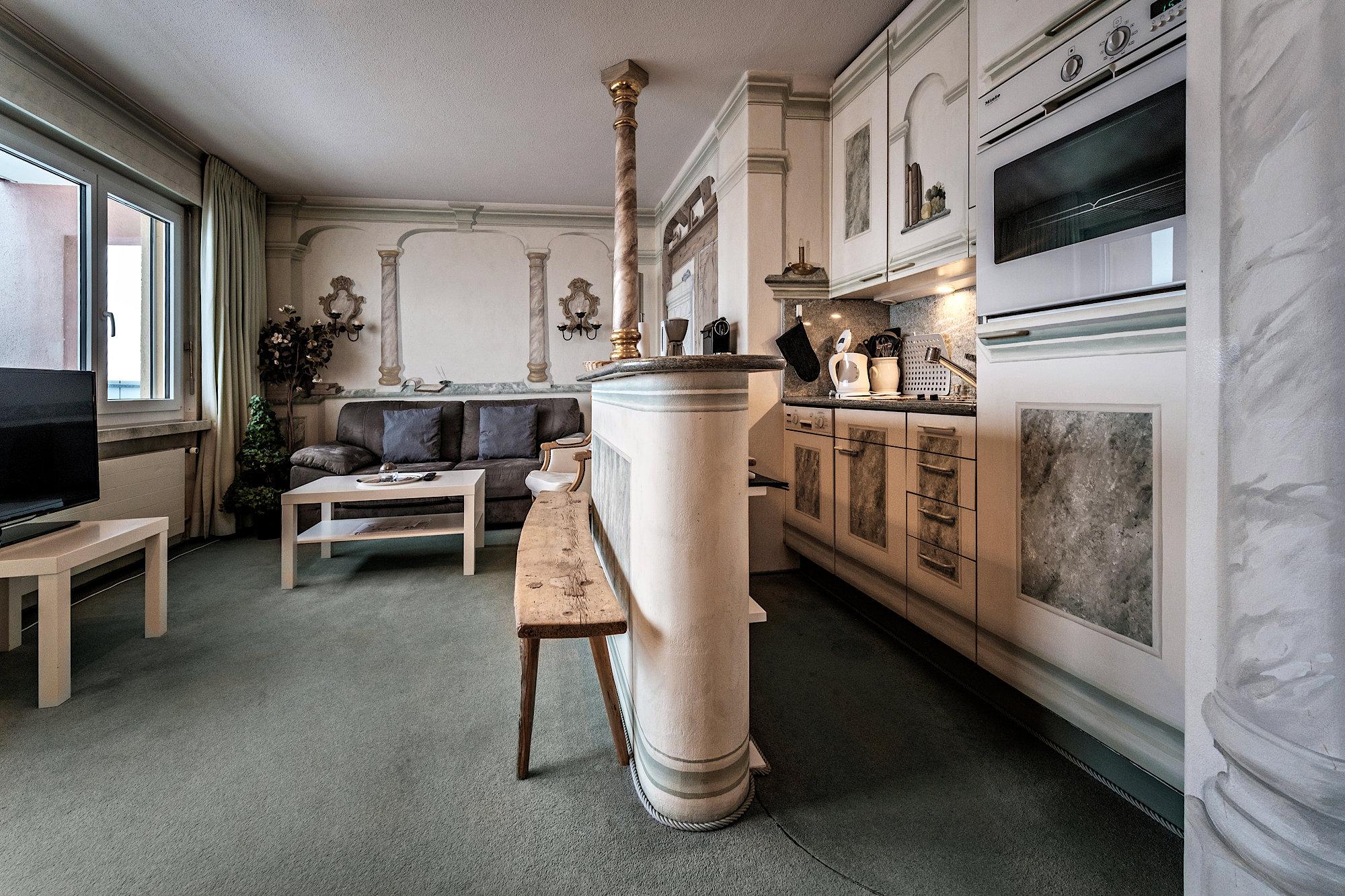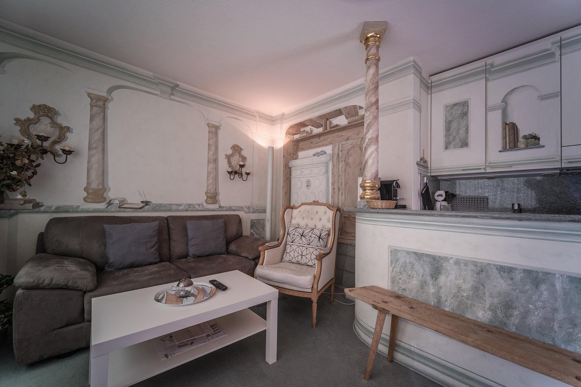 Die ganze Wohnung ist mit „Trompe-l’oeil“-Malereien dekoriert, und dadurch sehr gemütlich und attraktiv.