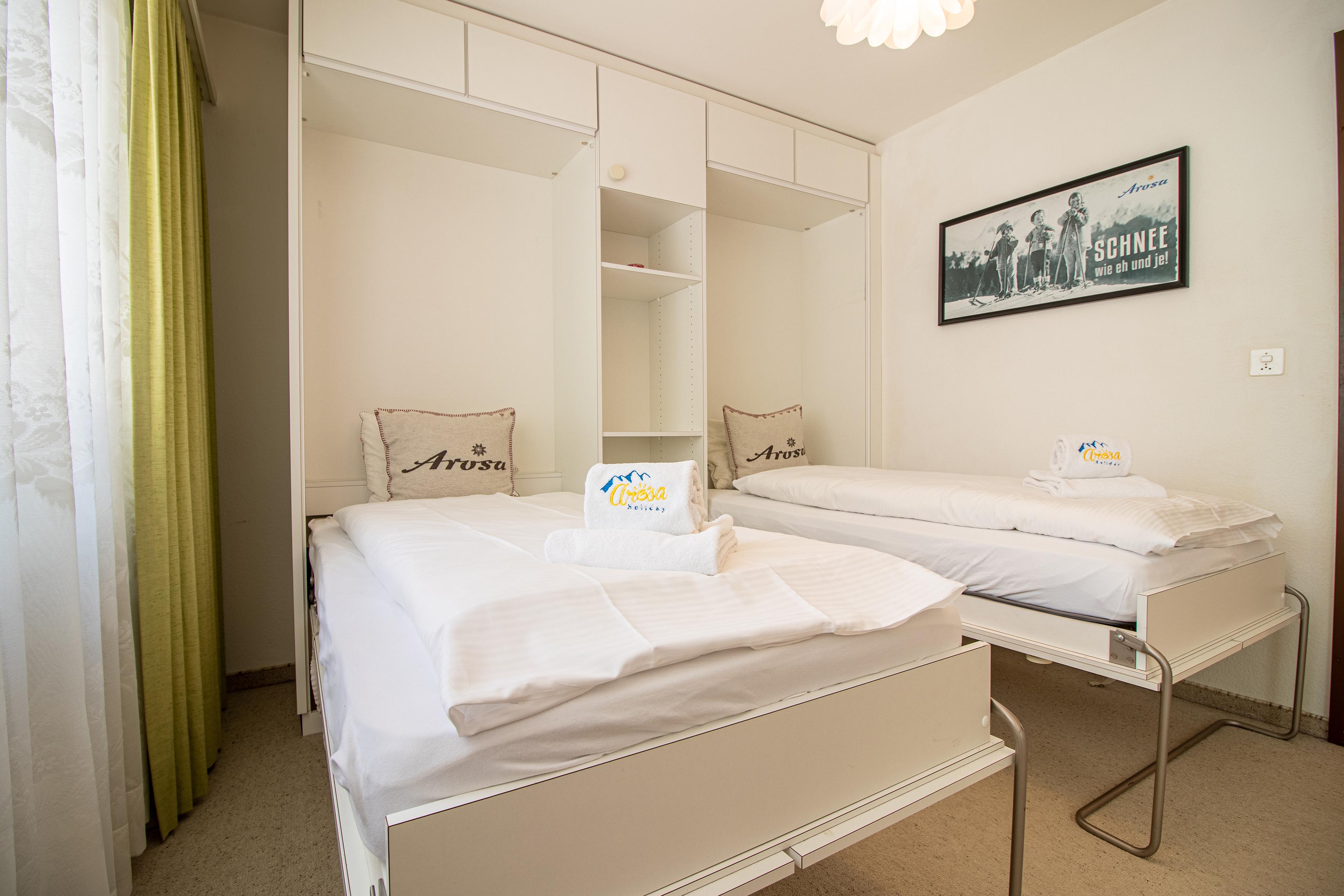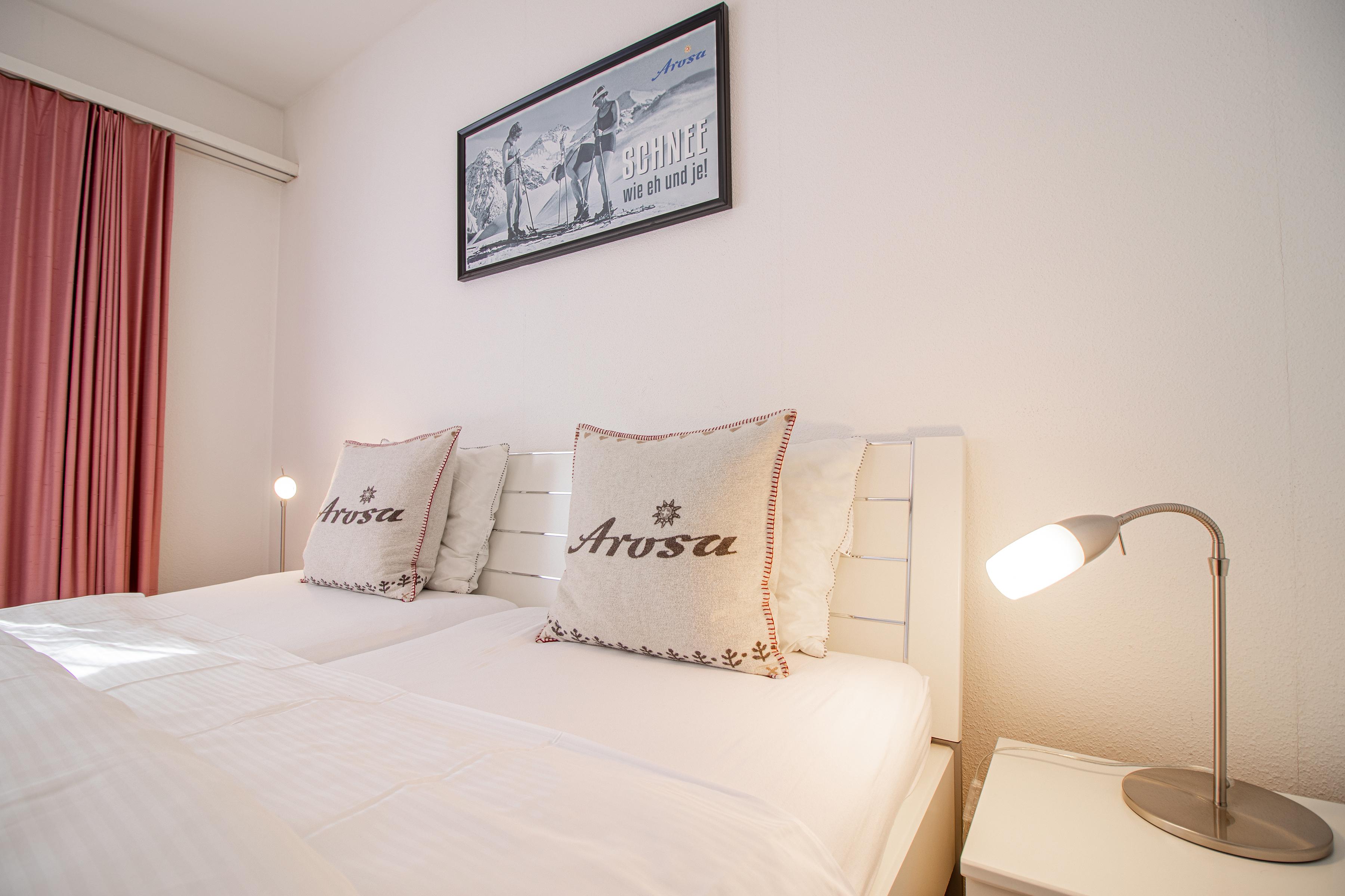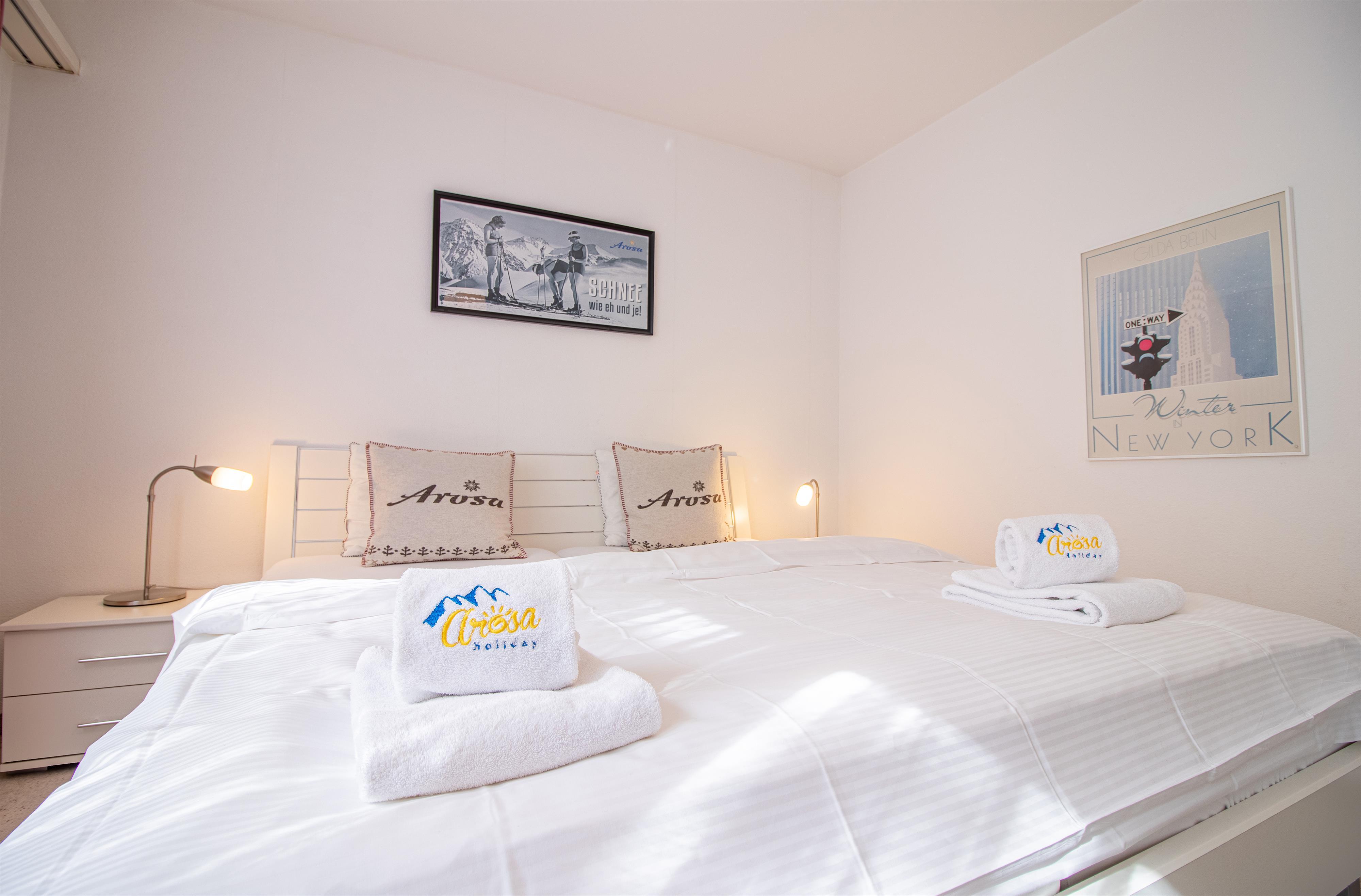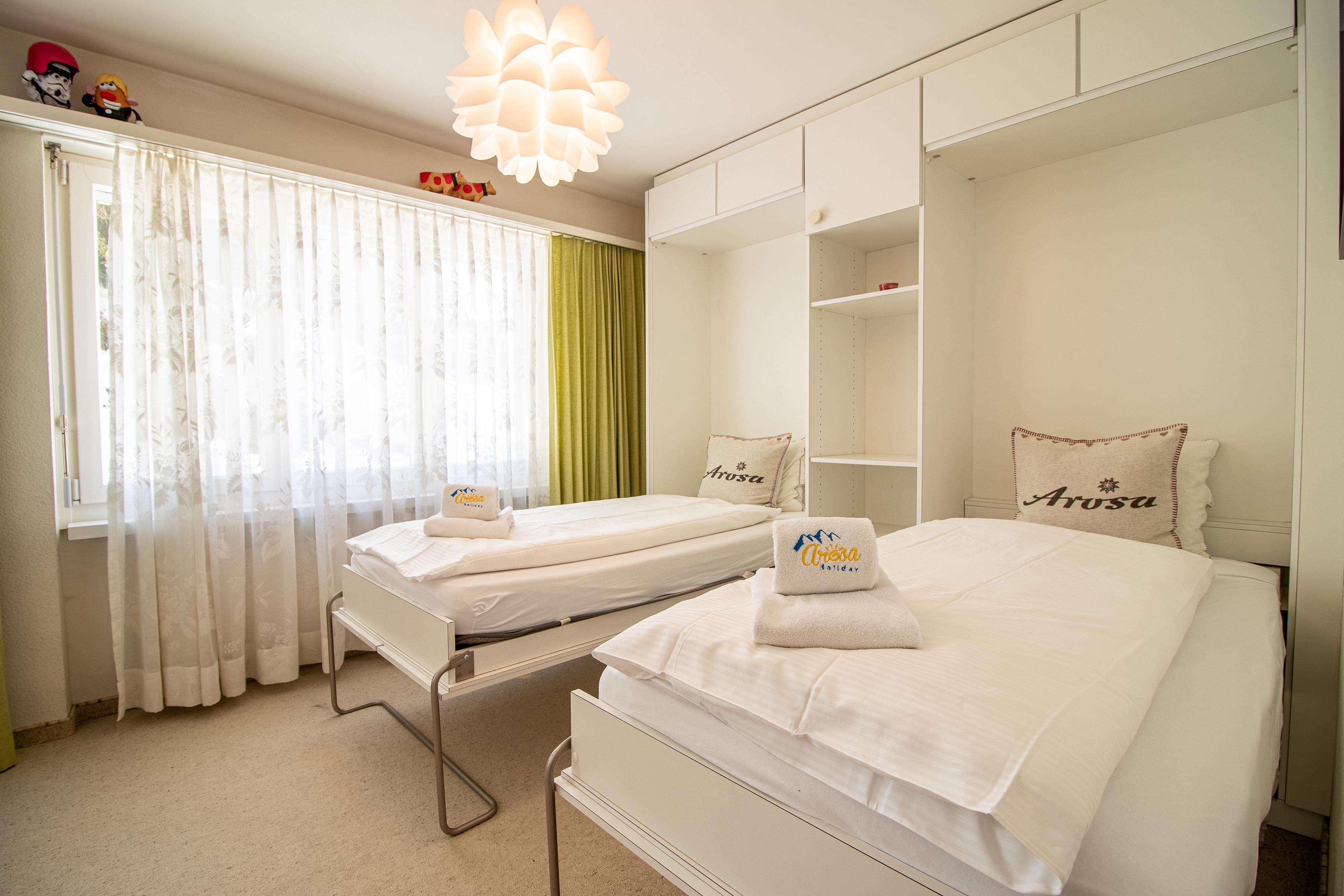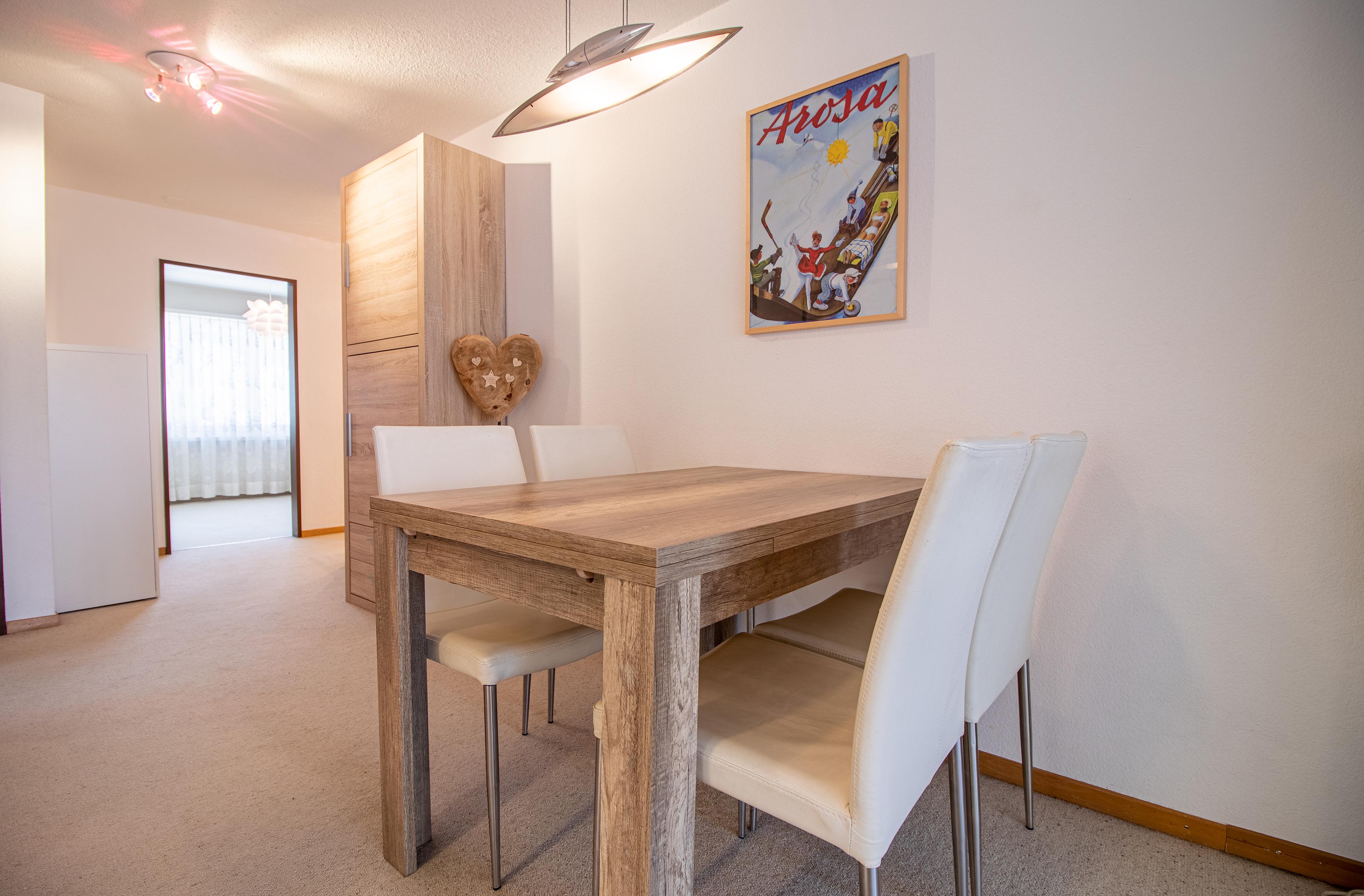 Die geräumige und helle 3.5-Zimmer-Wohnung befindet im zweiten Stock eines Wohngebäudes an ruhiger Lage. Der herrliche Bergblick kann vom Balkon aus genossen werden.Mit 2 Schlafzimmern, einem grossen Wohn-Essraum und einer Schlafcouch für weitere 2 Personen verfügt die Wohnung über genug Platz für 4-6 Personen. Einen Garagenplatz (max. 1.95m Höhe) ist inklusive; Haustiere sind nicht erlaubt. Der Start des berühmten Eichhörnliwegs in Arosa, das Zentrum sowie die nächste Bushaltestelle sind nur einen 5-10minütigen Fussweg entfernt.