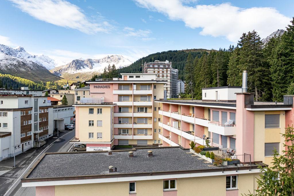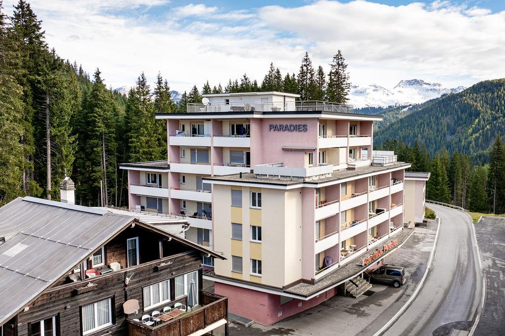 Das Haus Paradies befindet sich im Eingangsbereich von Arosa in ruhiger und dennoch zentraler Lage.
