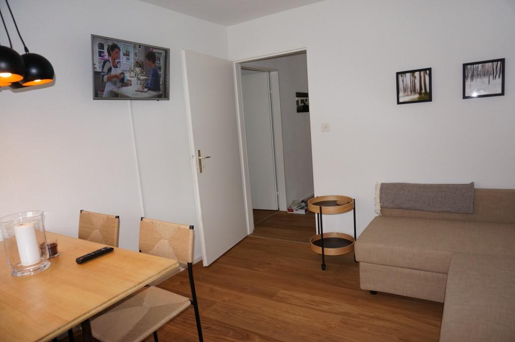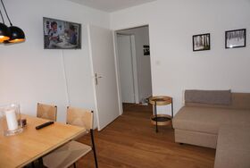 Wohnzimmer mit Sitzecke (Sofabett 1-2 Pers.) Esstisch, TV, Internet