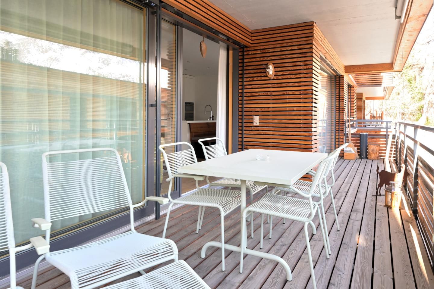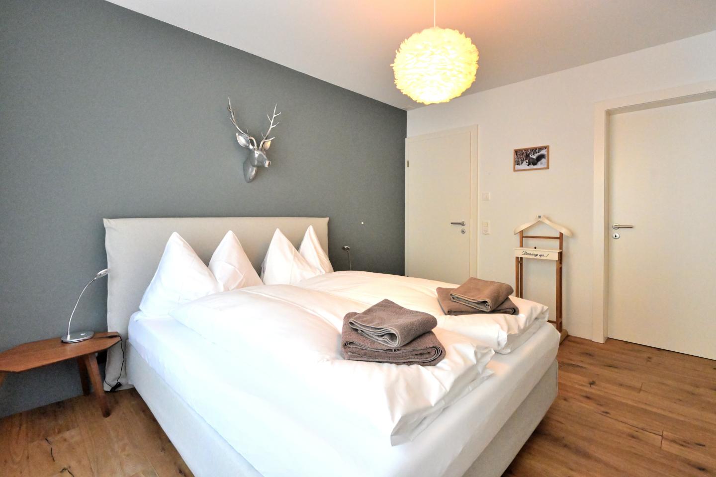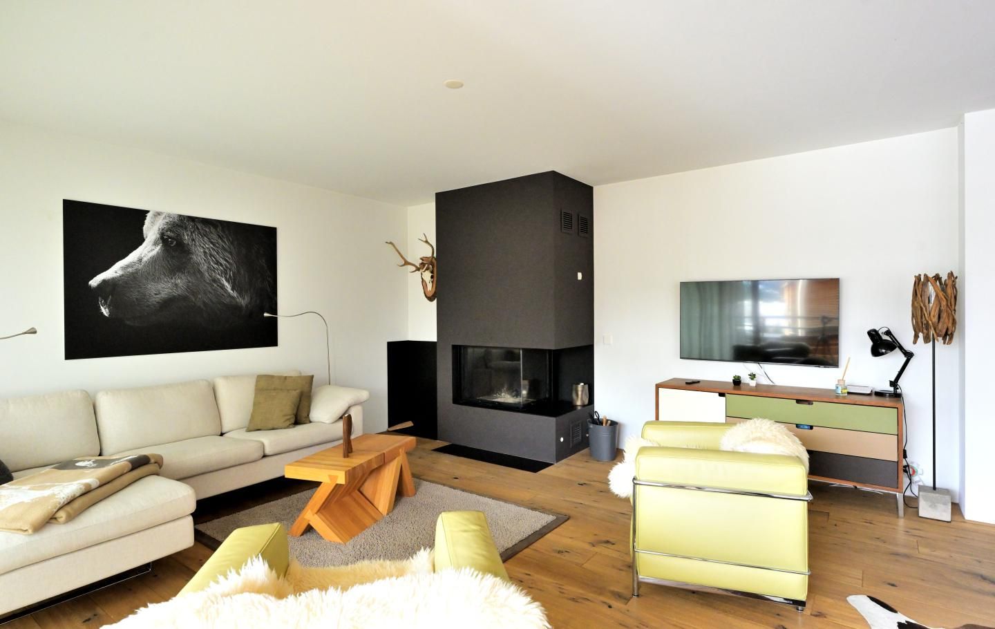 3 ½-Zimmer Ferienwohnung (95m2), mit Kamin und überdachtem Balkon, 2 Schlafzimmern und 2 Badezimmer.