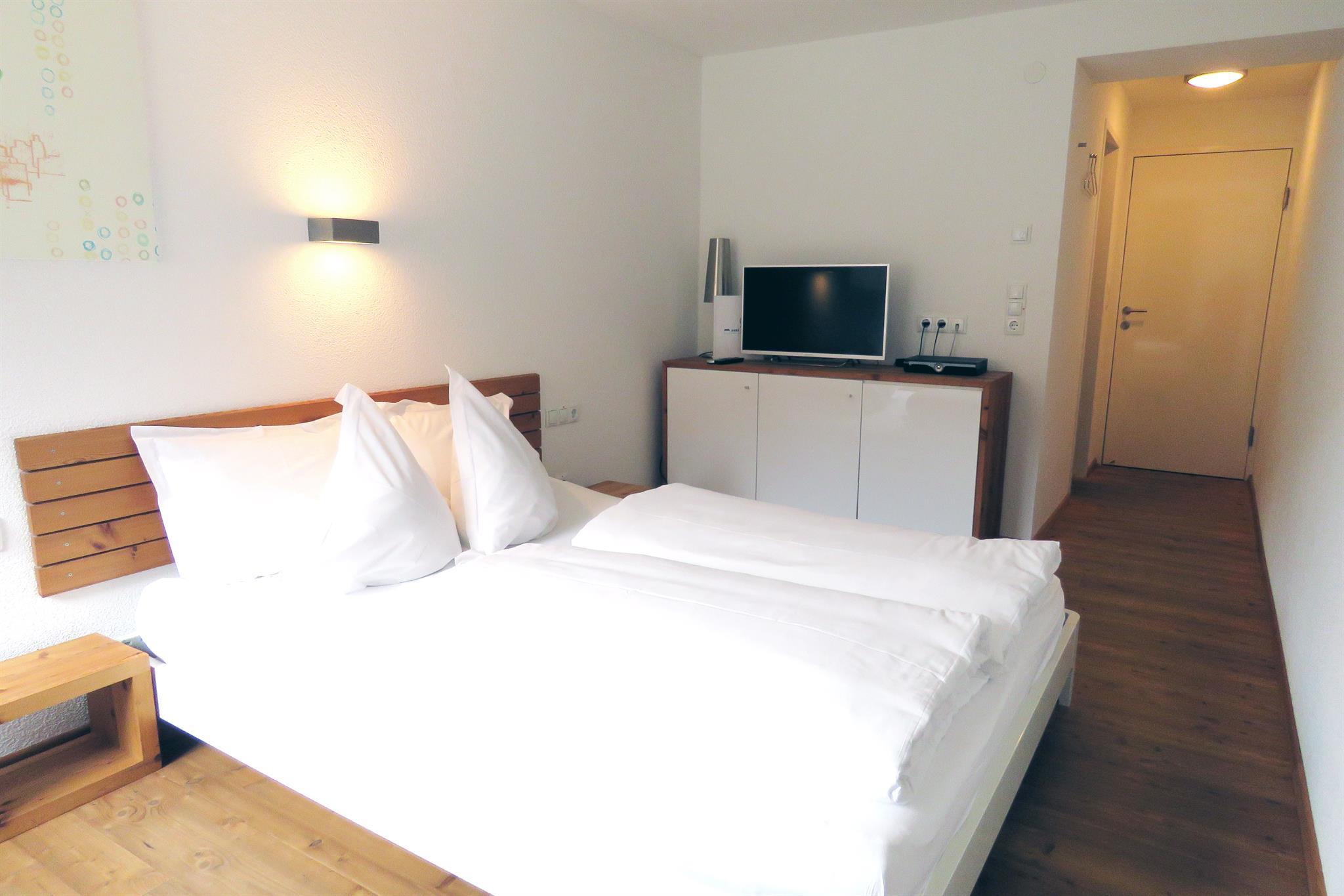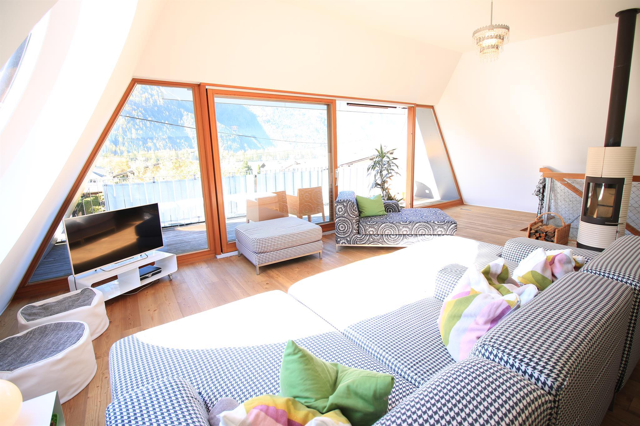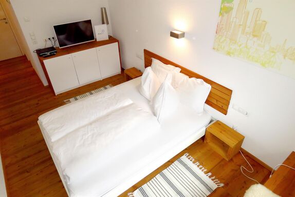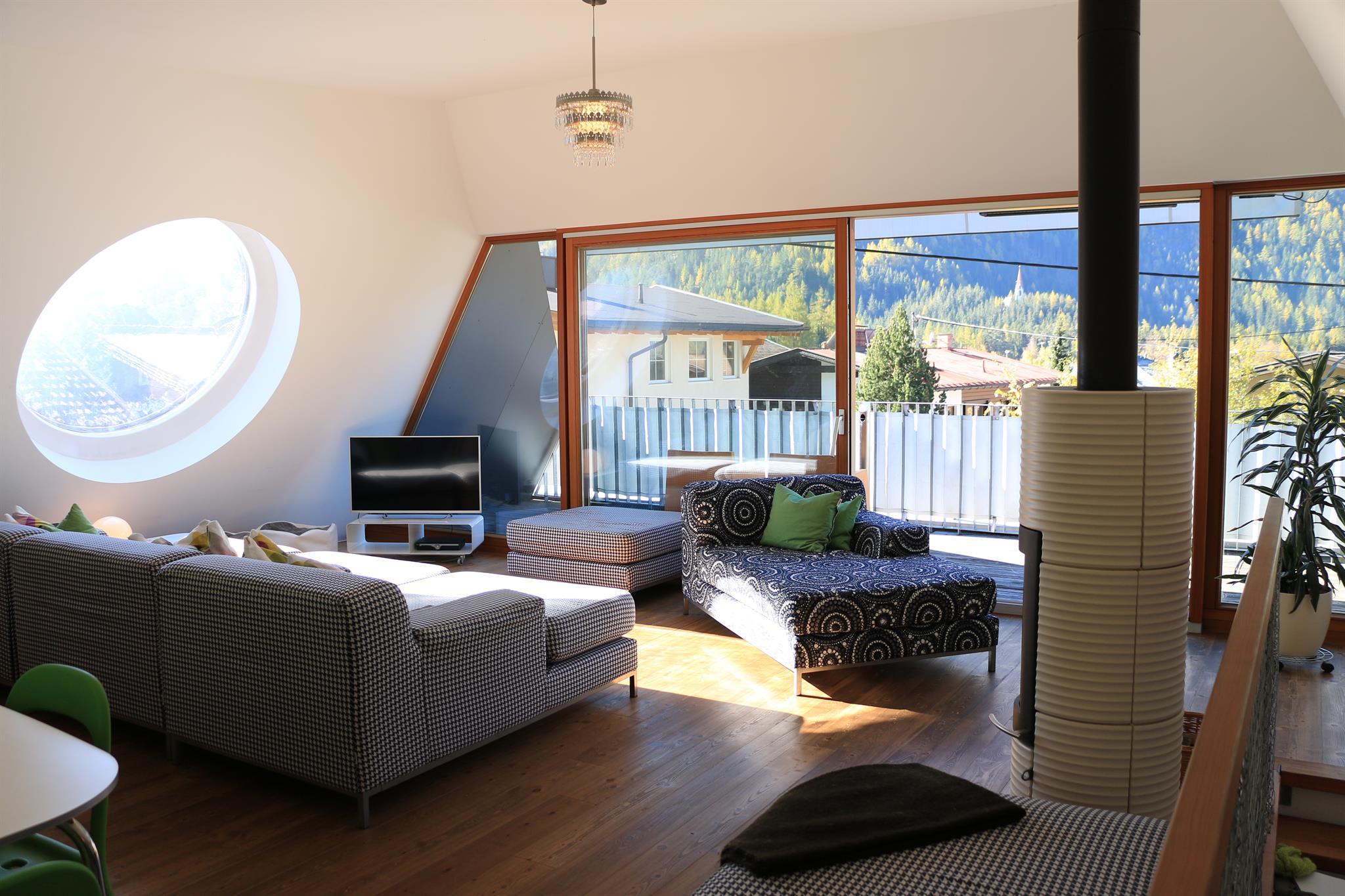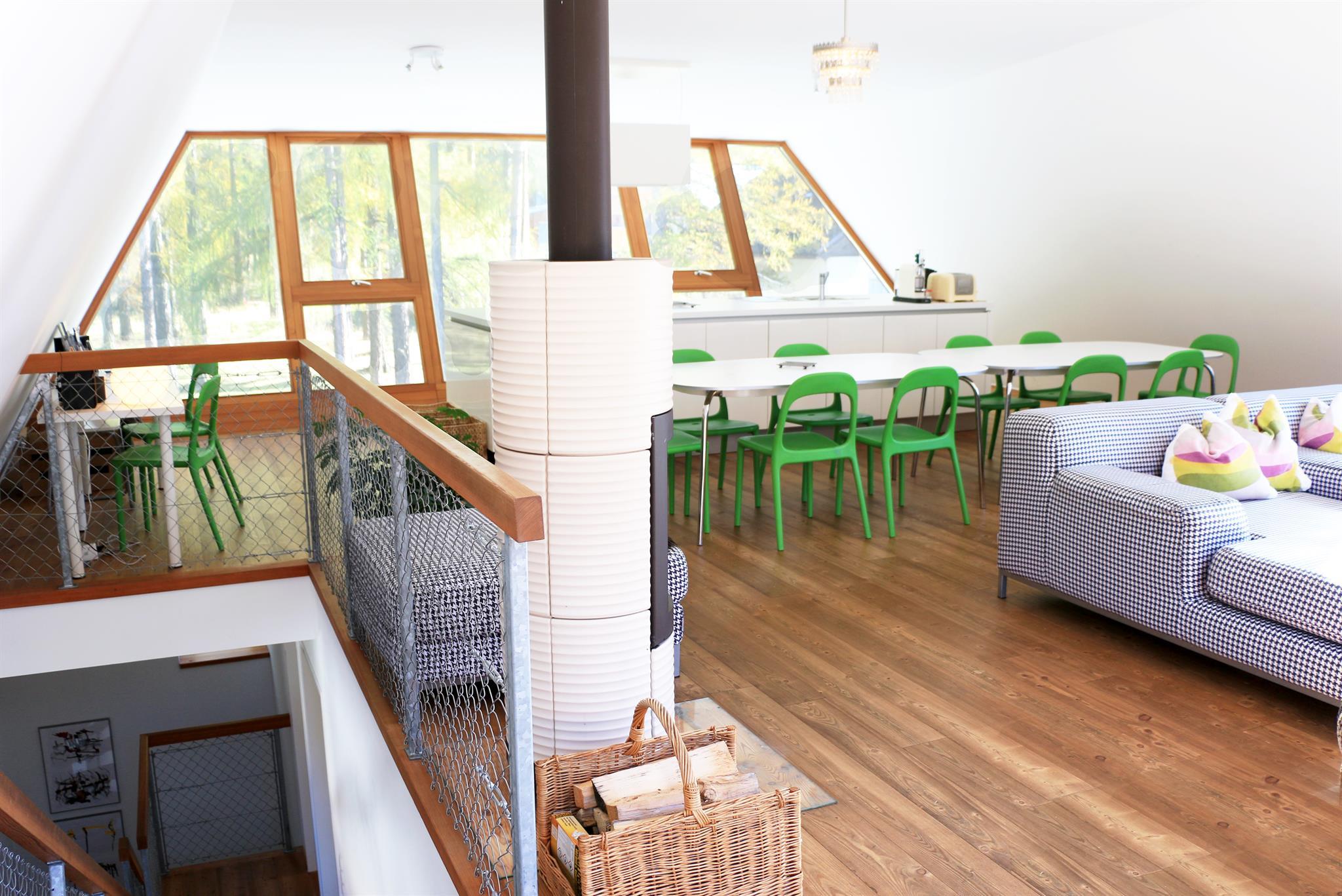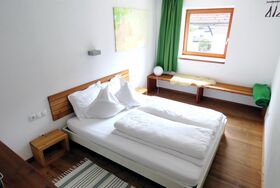 Ferienhaus mit 5 Doppelzimmern, jeweils mit Bad, WC, TV und Internet. Wohnloft mit Kachelofen und Küche im Dachgeschoß. 20m² Dachterrasse.
