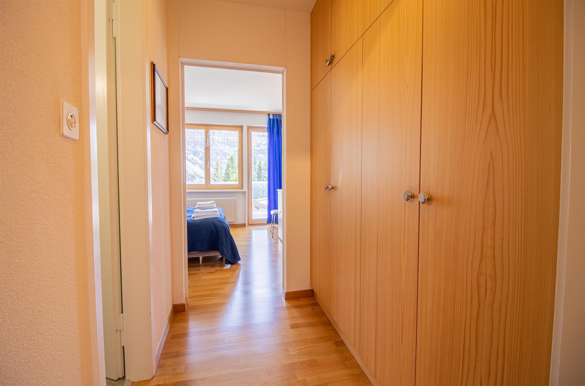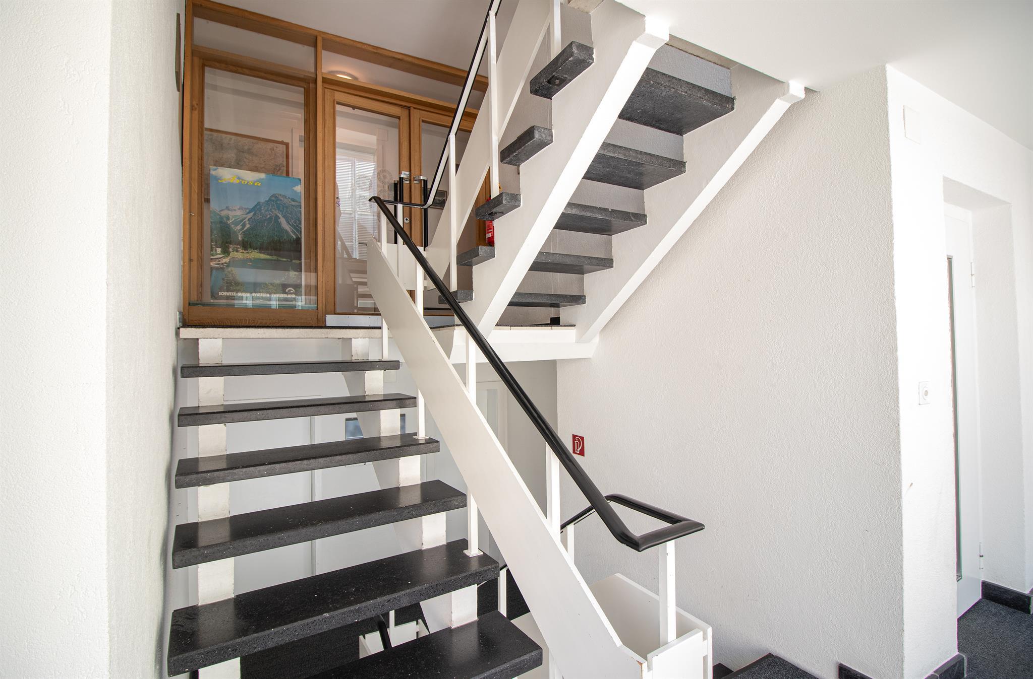Die Wohnung liegt im 2. Stock und befindet sich im Zentrum von Arosa, hinter der Graubündner Kantonalbank.
