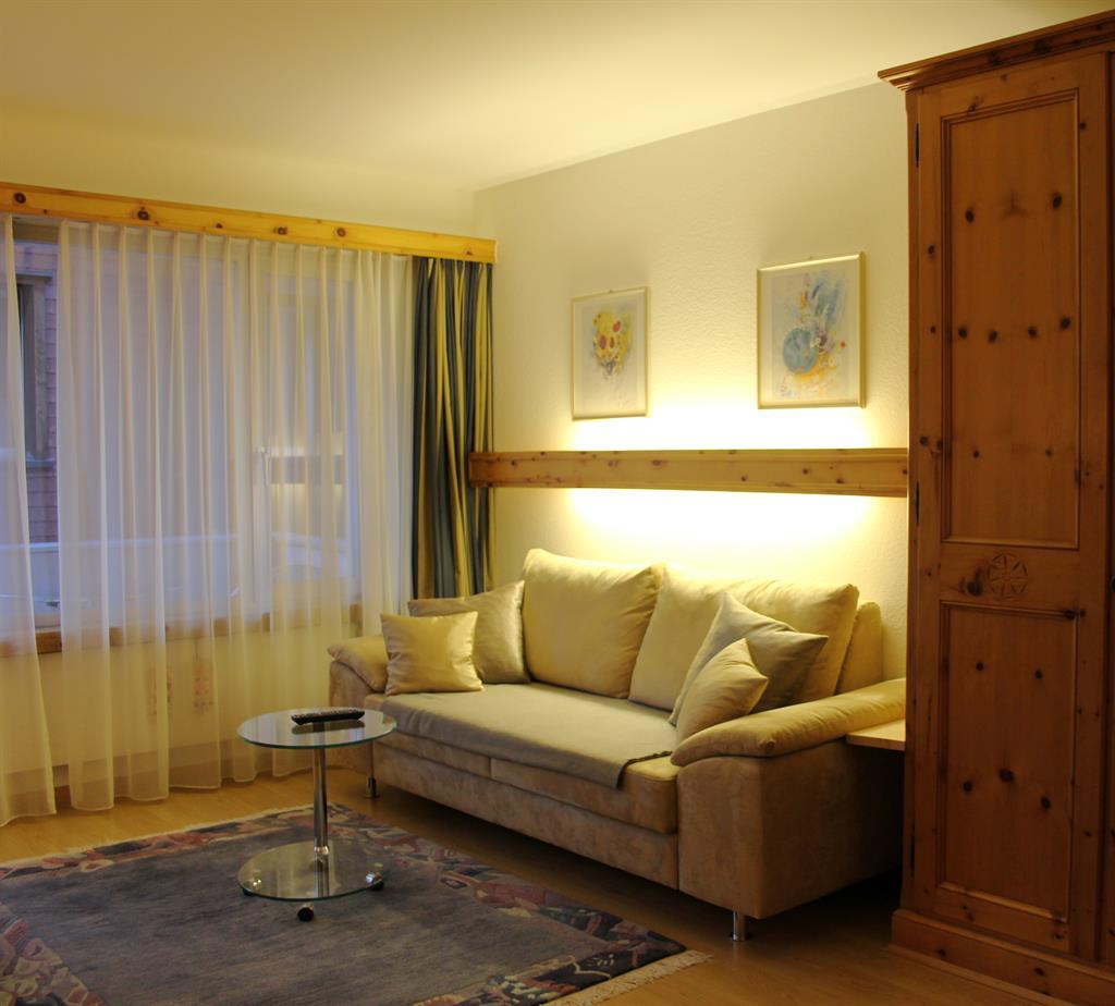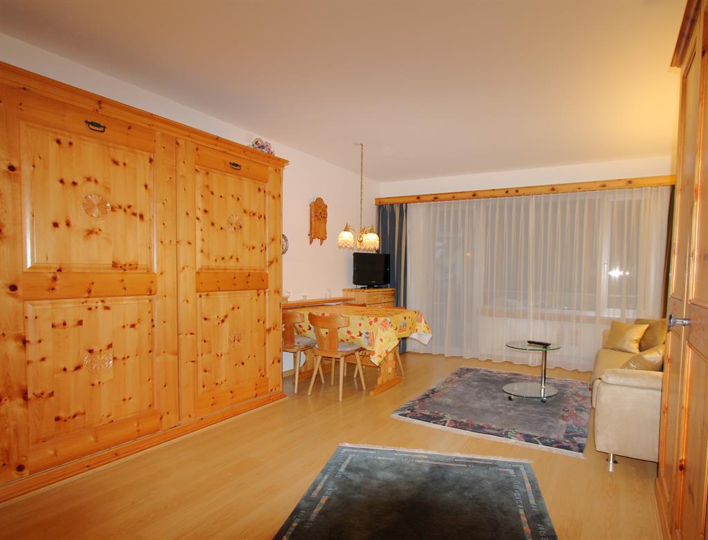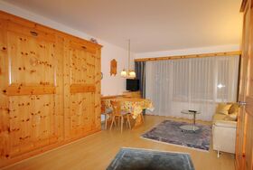 Das renovierte, stilvoll möblierte 1 1/2-Zimmer-Studio ist mit einer modernen Küche ausgestattet (Nespresso- und Filterkaffee-Maschine vorhanden). Im Wohnzimmer befinden sich 2 abklappbare Schrankbetten, Kleiderschrank, ein Sofa und ein Esstisch mit 4 Stühlen. Zur weiteren Ausstattung gehören TV/Radio sowie ein kleiner Balkon mit Tisch und 2 Stühlen. Das Badezimmer mit Dusche/WC ist ebenfalls komplett renoviert.