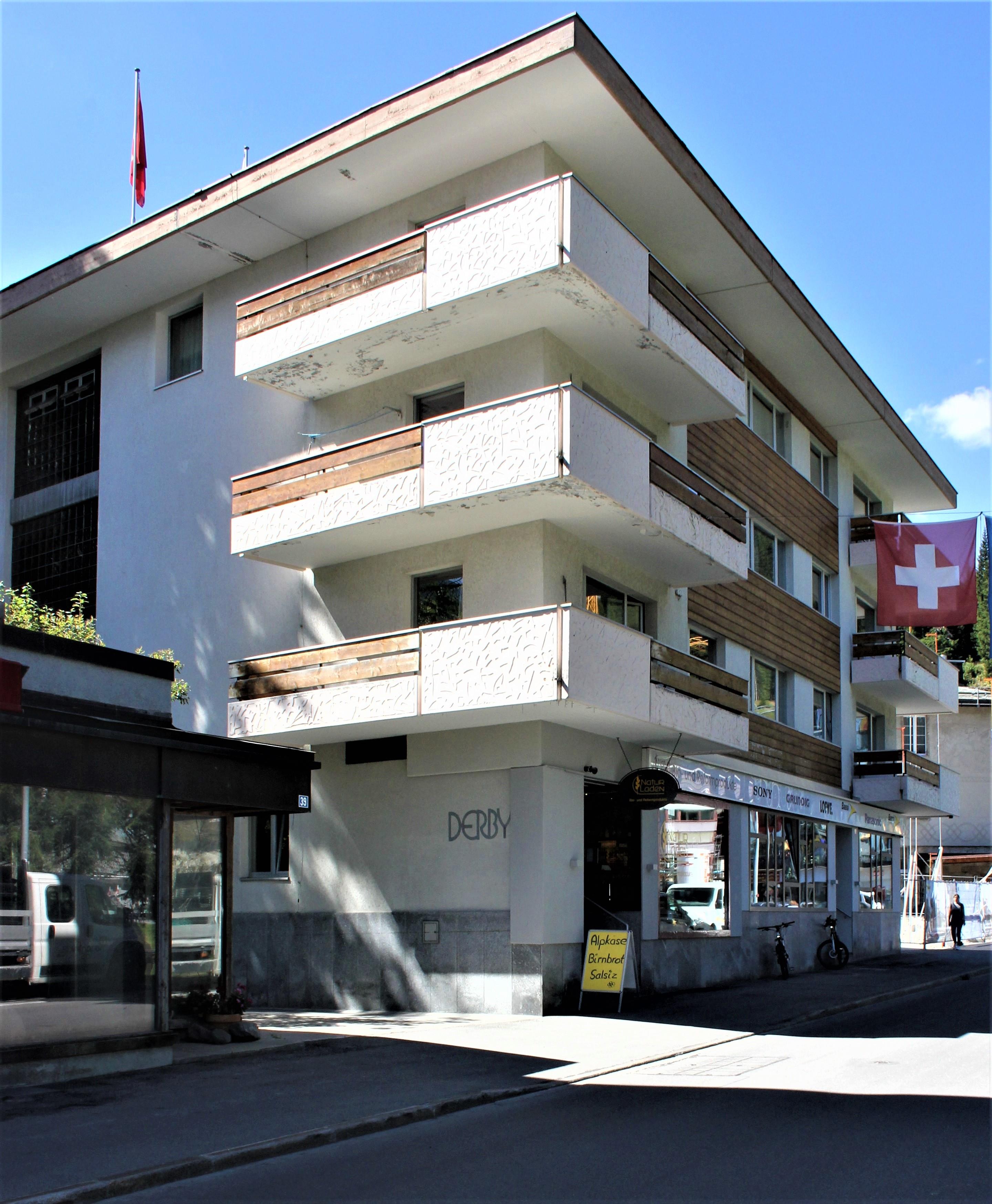 Das zentral gelegene Mehrfamilienhaus Derby ist nur durch die Poststrasse von der Promenade des Obersees getrennt. Bahnhof, Bushaltestelle, Eishalle und offene Eisfläche, Apotheke, Bäckerei, Lebensmittelgeschäfte, Post und verschiedene Restaurants befinden sich in unmittelbarer Nähe, ebenso wie die 1. Sektion der Luftseilbahn Arosa-Weisshorn, die Sesselbahn Tschuggen Ost und die Haltestelle des Langlaufbuses zur Loipe in der Isel.