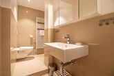 Die Wohnung hat 2 Schlafzimmer. Das Hauptschlafzimmer hat ein kleines Bad und ein Doppelbett. Das zweite Schlafzimmer hat ein Einzelbett und ein Etagenbett.
