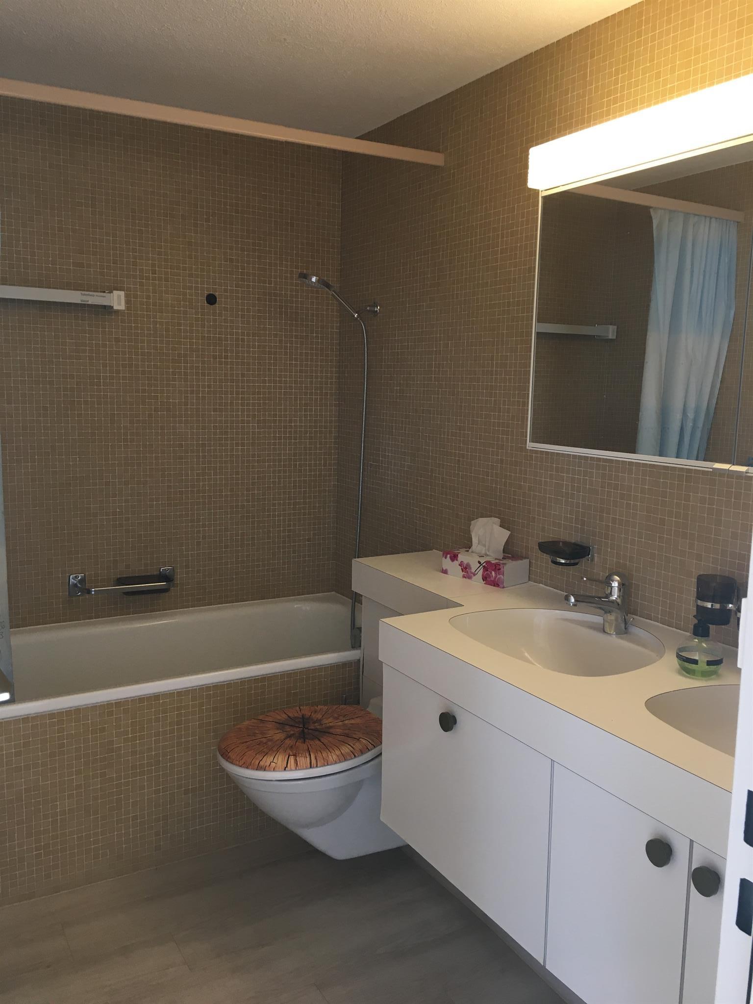 Wohnungsausstattung: Geschirr, Kaffeemaschine (Kapseln), Bett-/Bad- und Tischwäsche, WLan, Radio, Swisscom-TV