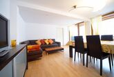 Gemütliche Sitzgruppe mit Salontisch, Flat-TV, Radio/CD, Ausgang zum Balkon mit Gartenmöbeln