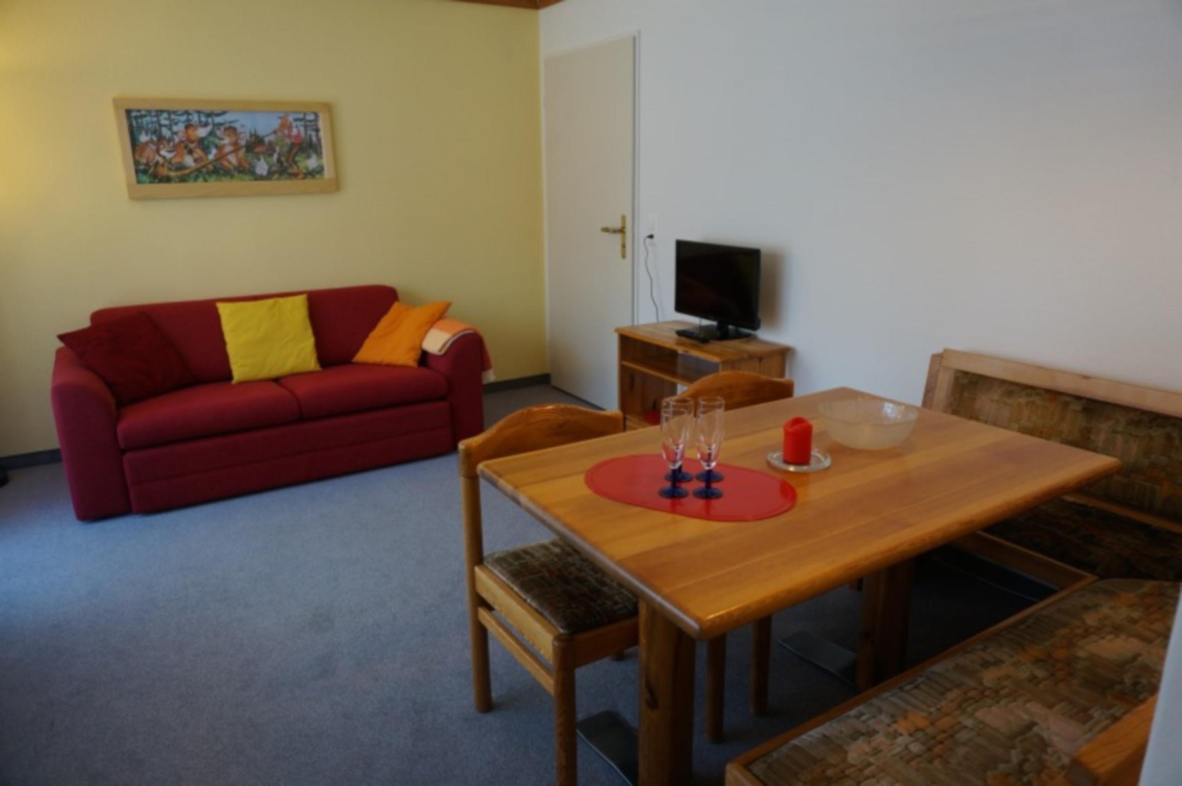 Wohnschlafzimmer mit gepolsterter Eckbank zum Sitzen und Essen, Sofabett ( 2 Pers) Radio, LCD-Sat-TV; WLAN