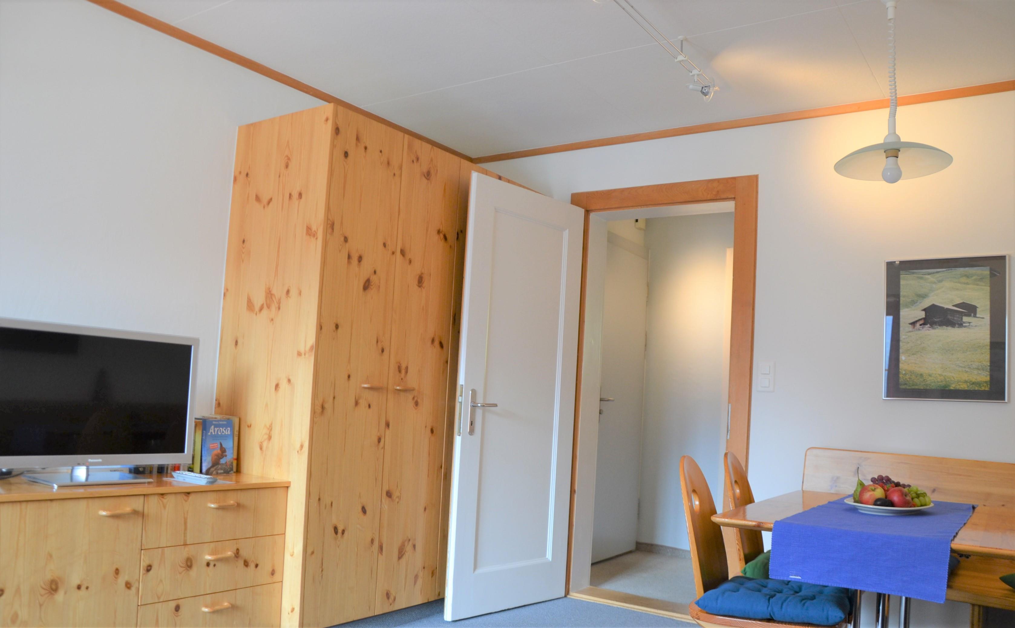 • An einem der Zugänge zum Eichhörnliwald mit seinen Wanderwegen nach Maran, Prätschli, Mittelstation, Dorf Innerarosa, Bärenland
