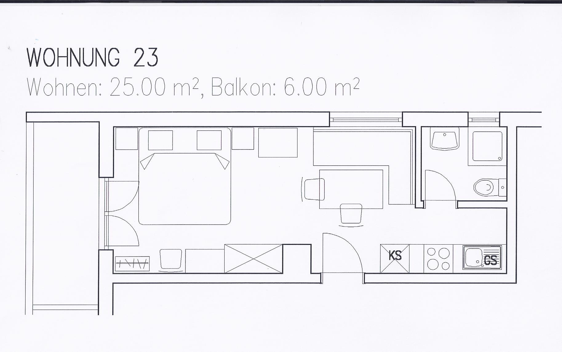 - Wohn/Schlafraum kombi.