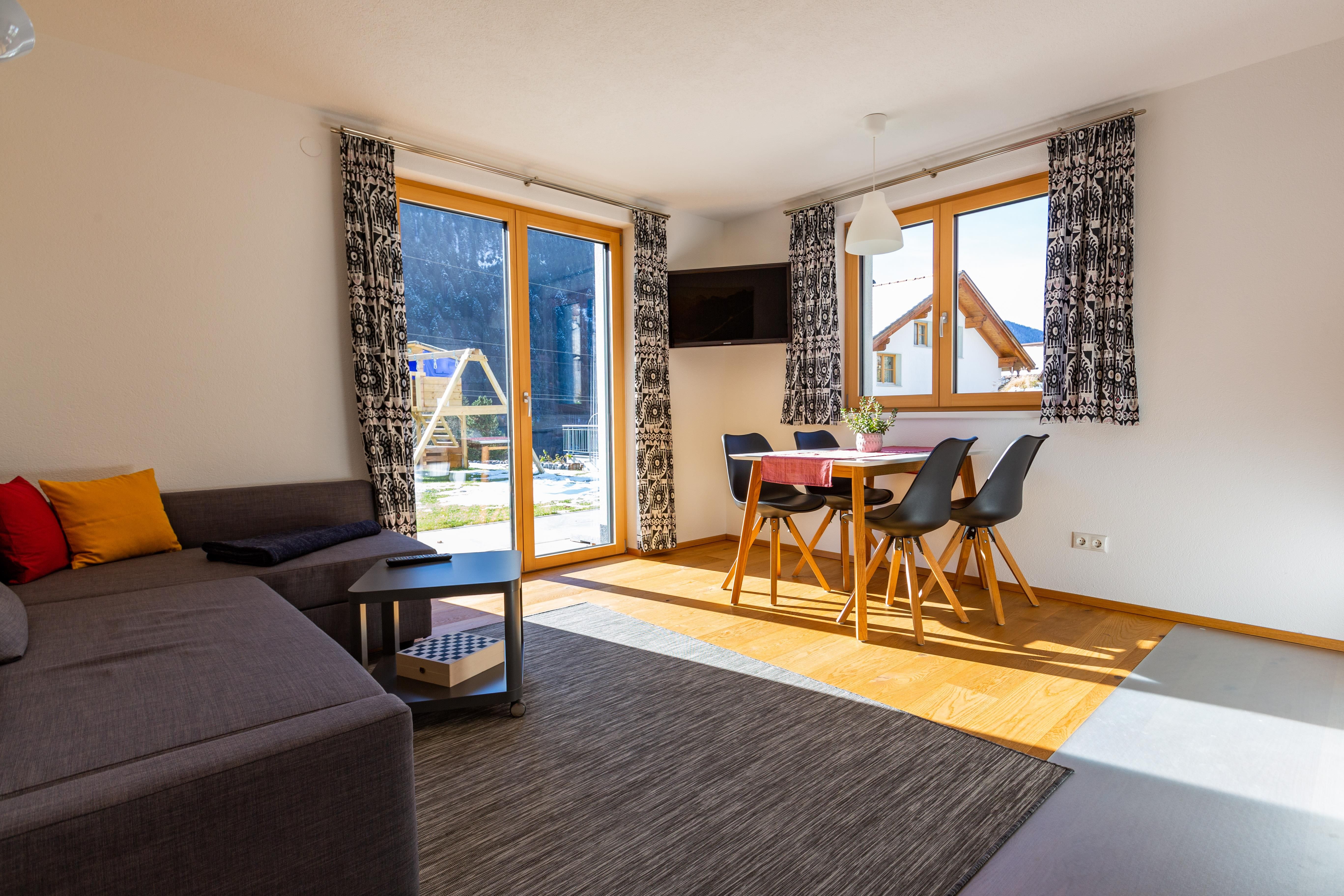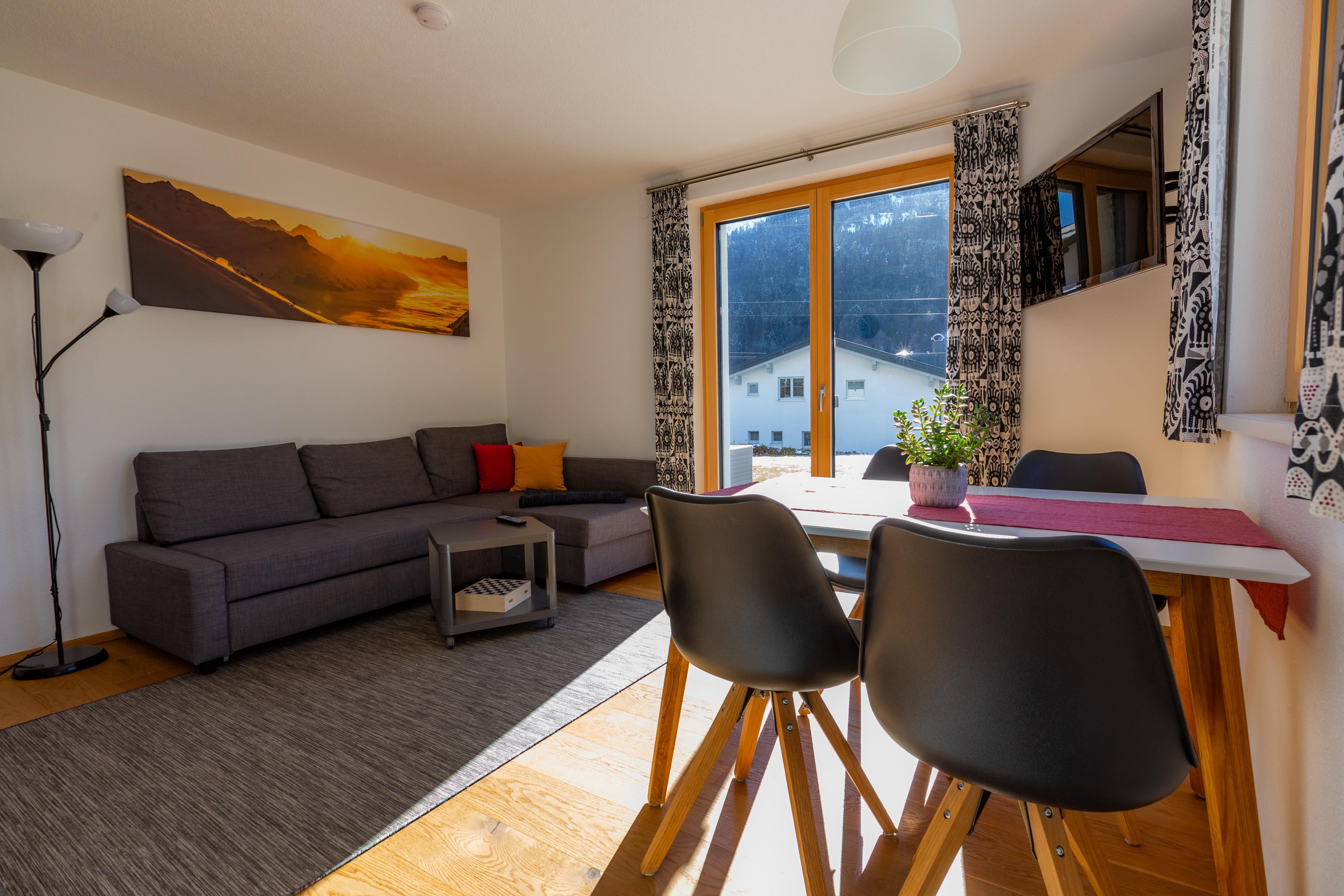 Wir befinden uns auf der Sonnenseite von Wald am Arlberg und sind nur wenige Minuten vom Skigebiet Sonnenkopf und der Bushaltestelle für das Skigebiet Arlberg entfernt. Unsere 45m² Zweizimmer Ferienwohnung, bietet ein Schlafzimmer und einen geräumigen Wohnbereich mit voll ausgestatteter Küche. Im Wohnbereich befindet sich ebenfalls ein ausziehbares Schlafsofa für 2 weitere Personen.