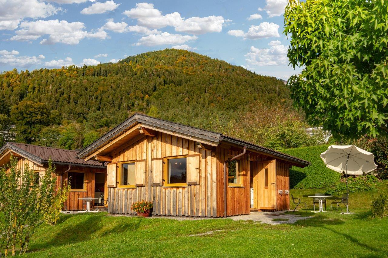 Unsere 2 Bungalows in natürlicher Holzbauweise mit herrlichem Blick auf die Berge