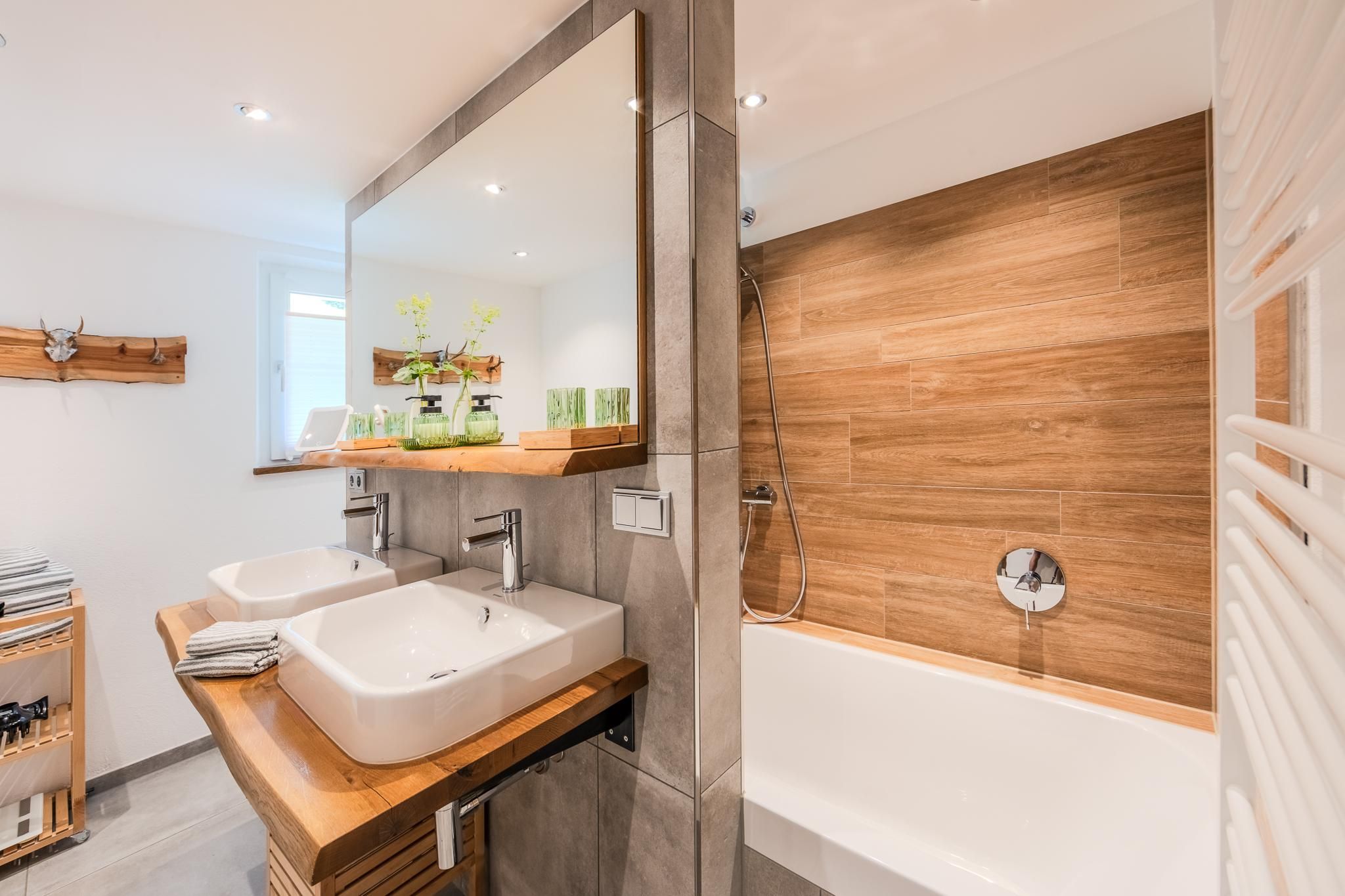 Unsere luxuriöse Ferienwohung erstreckt sich über zwei Stockwerke und ist gesamt 130 m² groß.Traditionelles alpines Design wurde mit zeitgemäßem Wohnkomfort kombiniert. Drei wunderschöne Schlafzimmer und zwei hochmoderne Bäder bieten Platz für bis zu sechs Personen.