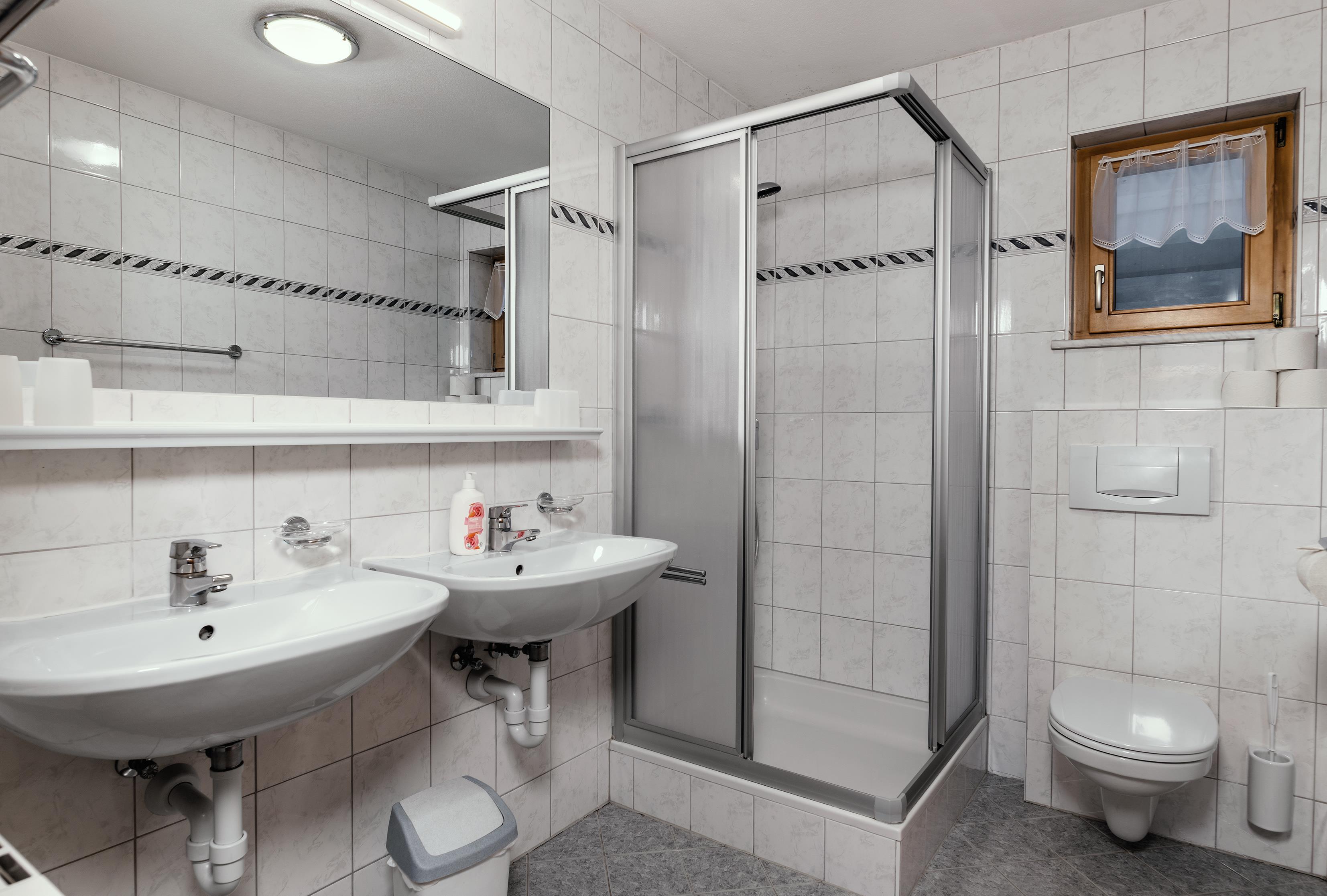 Badezimmer mit DU/WC und Doppelwaschbecken