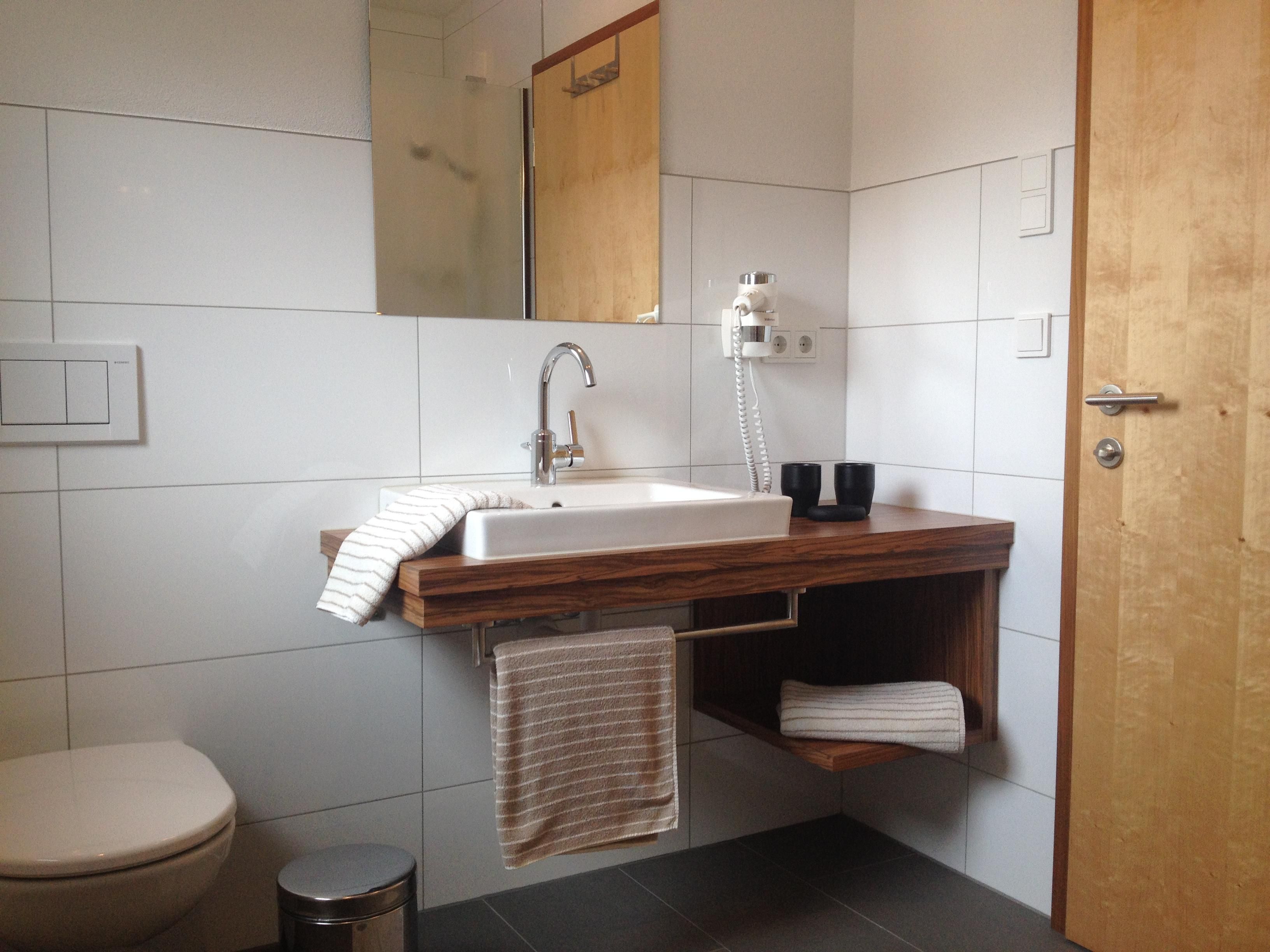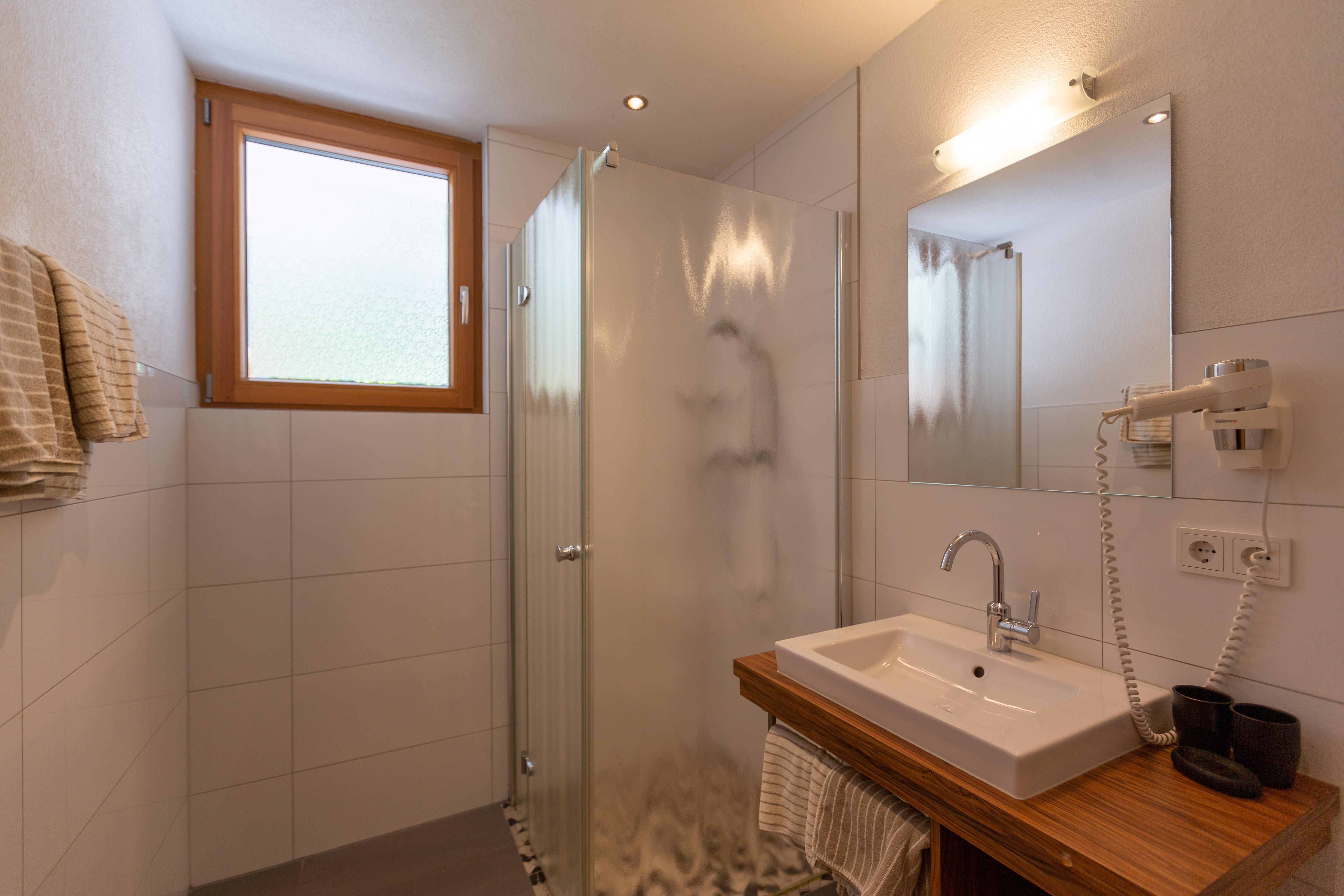 • Das komfortable Badezimmer verfügt über einen Waschtisch, einer Dusche sowie einer Toilette. Handtücher, Klopapier und Fön sind vorhanden.