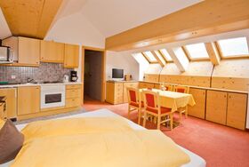 1 Schlafzimmer mit Sofa, 1 Wohn-Schlafzimmer mit Doppelbett (auch trennbar), Küchenzeile mit Backofen, Mikrowelle, Kühlschrank, Kaffeemaschine, Toaster, Wasserkocher,..., 1 Badezimmer mit Bad und Doppelwaschbecken, sep. WC, begehbarer Kleiderschrank, Telefon, Kabel-TV, Zimmersafe, Haarföhn und Balkon mit herrlichem Panoramablick über Sölden, Größe: 74m².