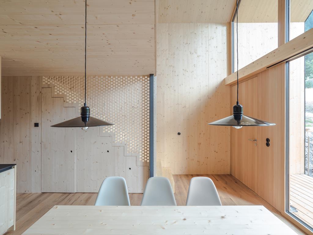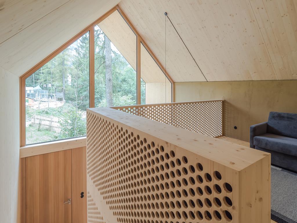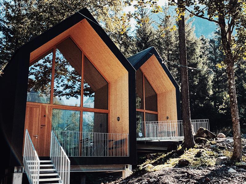 Die insgesamt 5 neuen Chalets bieten mit 75 Quadratmeter großzügigen Platz für 2 bis 6 Personen. Im Erdgeschoss befindet sich die modern ausgestattete Küche mit Esstisch, das Bad mit Dusche/Doppelwaschbecken und ein getrenntes WC sowie ein Schlafzimmer mit Doppelbett. Auf der Galerie findet man einen fantastischen Blick in die Berge und genug Platz auf der gemütlichen Sitzecke zum Verweilen. Ebenfalls im Obergeschoss befinden sich zwei weitere Schlafzimmer mit Blick in den Wald.