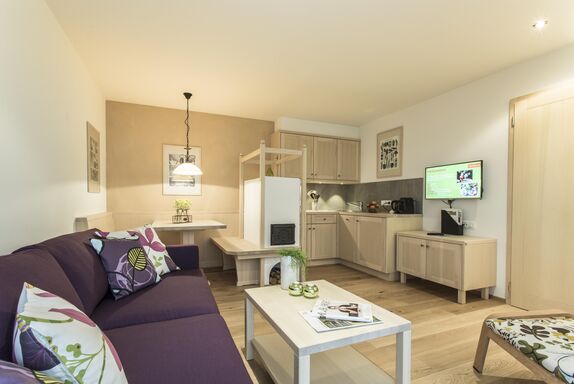Das attraktive, mit Naturholz eingerichtete Appartement Rothorn, lädt Sie ein auf erholsame und relaxte Urlaubstage. Aus dem gemütlichen Wohnzimmer blickt man direkt in die Berge, unter anderem auf das Rothorn. Ein separates Schlafzimmer mit Fernseher, ein modern ausgestattetes Badezimmer, eine kleine Küche mit Spülmaschine und 2er-Kochfeld sowie einem Kombi-Mikrowellen-Backofen), eine Sitzecke und eine Couch lassen sie auf Anhieb wohl fühlen. Die Fußböden und die ganzen Möbel sind aus heimischer Fichte gebaut. Eine Sauna mit Wellnessdusche und Ruheraum befindet sich nur wenige Meter von ihrem Appartement entfernt. Die gemütliche Terrasse lädt zum Verweilen und Sonnenanbeten ein.