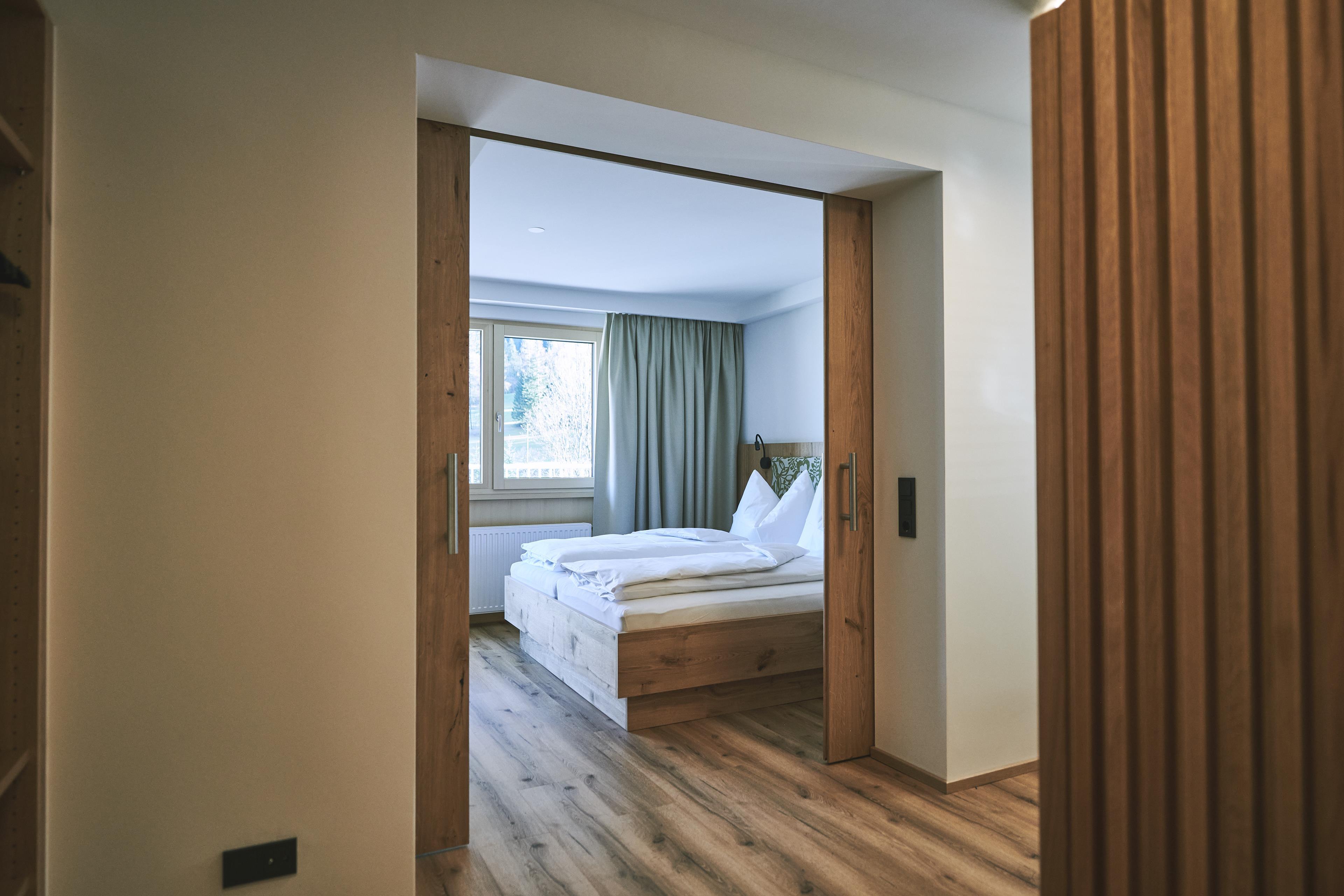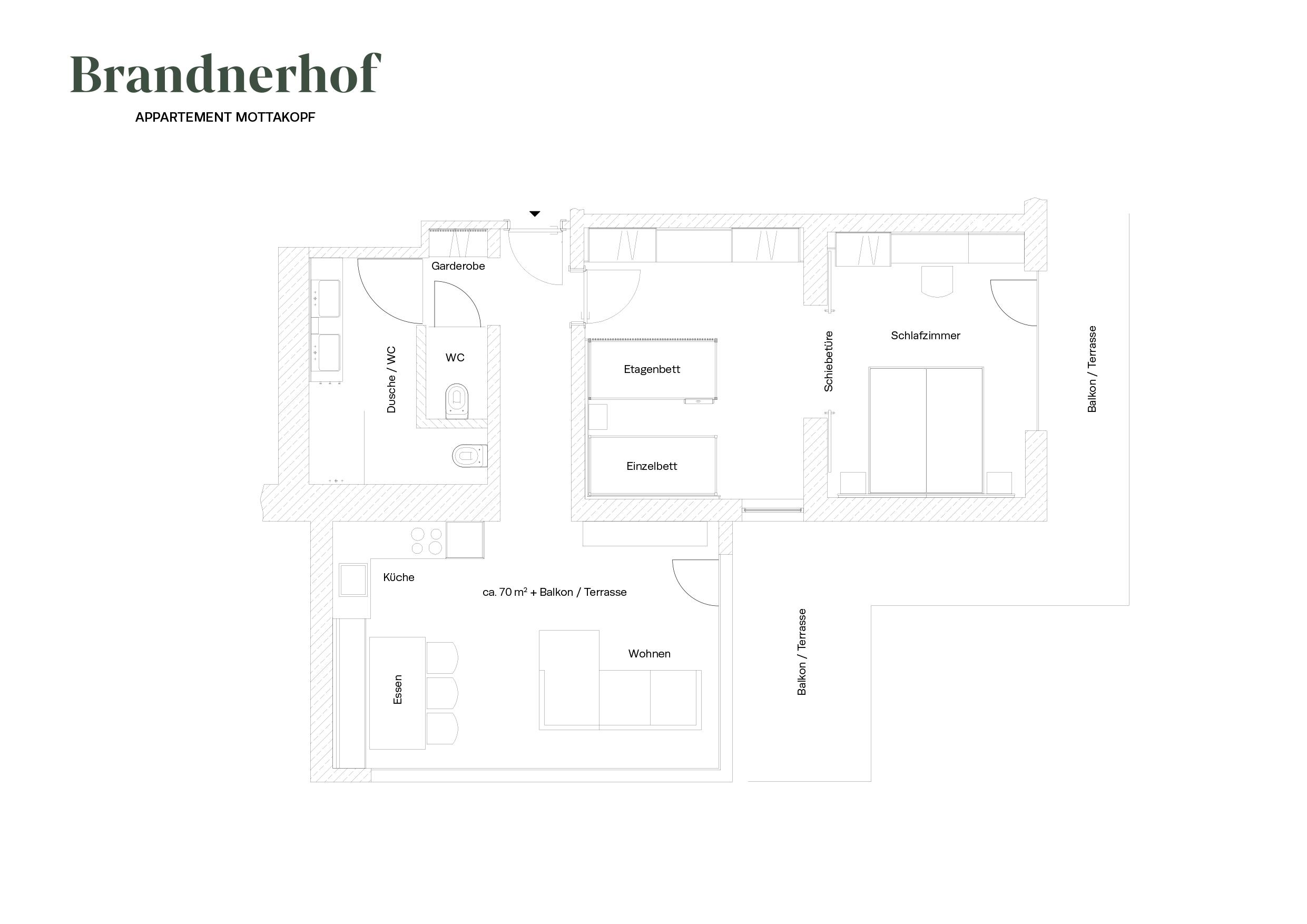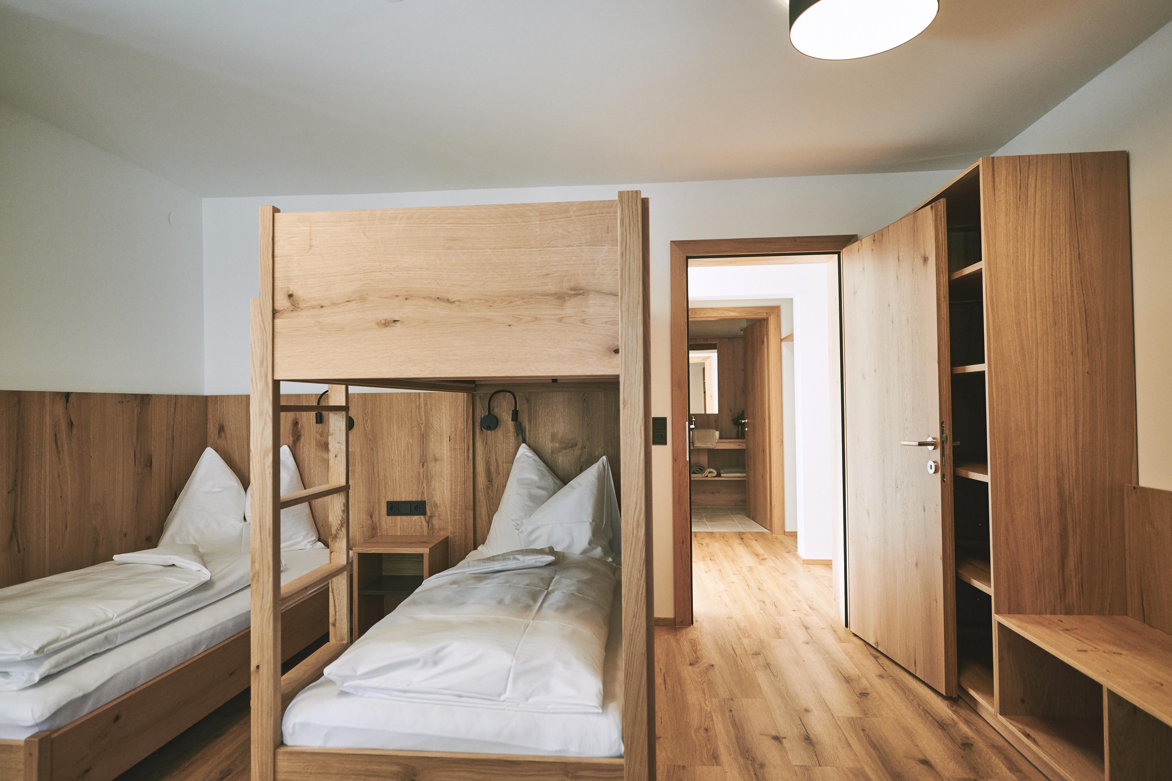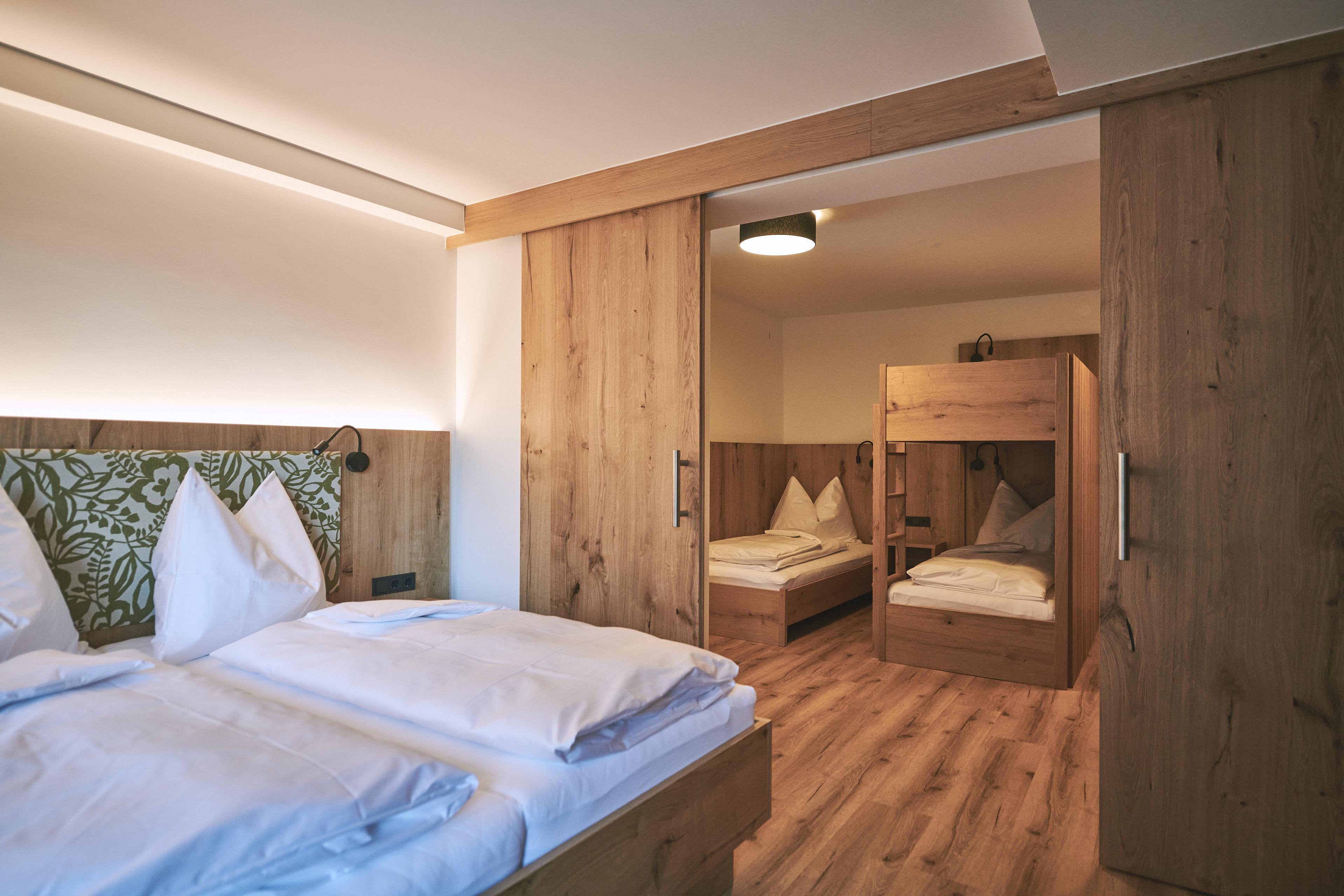 Mit 70 Quadratmeter bietet unser Familienappartement Mottakopf großzügig Platz für zwei bis fünf Personen. Im Wohn-Essbereich samt großen Esstisch, südseitiger Terrasse mit Panorama Bergblick, 1 Doppelzimmer mit Verbindungsschiebetür zum 2. Schlafzimmer mit 3 Betten, Badezimmer mit Dusche und WC sowie einem separaten WC gibt es genügend Platz für alle. In der vollausgestatteten Küche befinden sich Geschirrspüler, Induktionskochfeld, Backofen und Kapsel-sowie Filterkaffeemaschine. Heimeliges Wohngefühl und viel Holz gibt es von uns gerne obendrauf!
