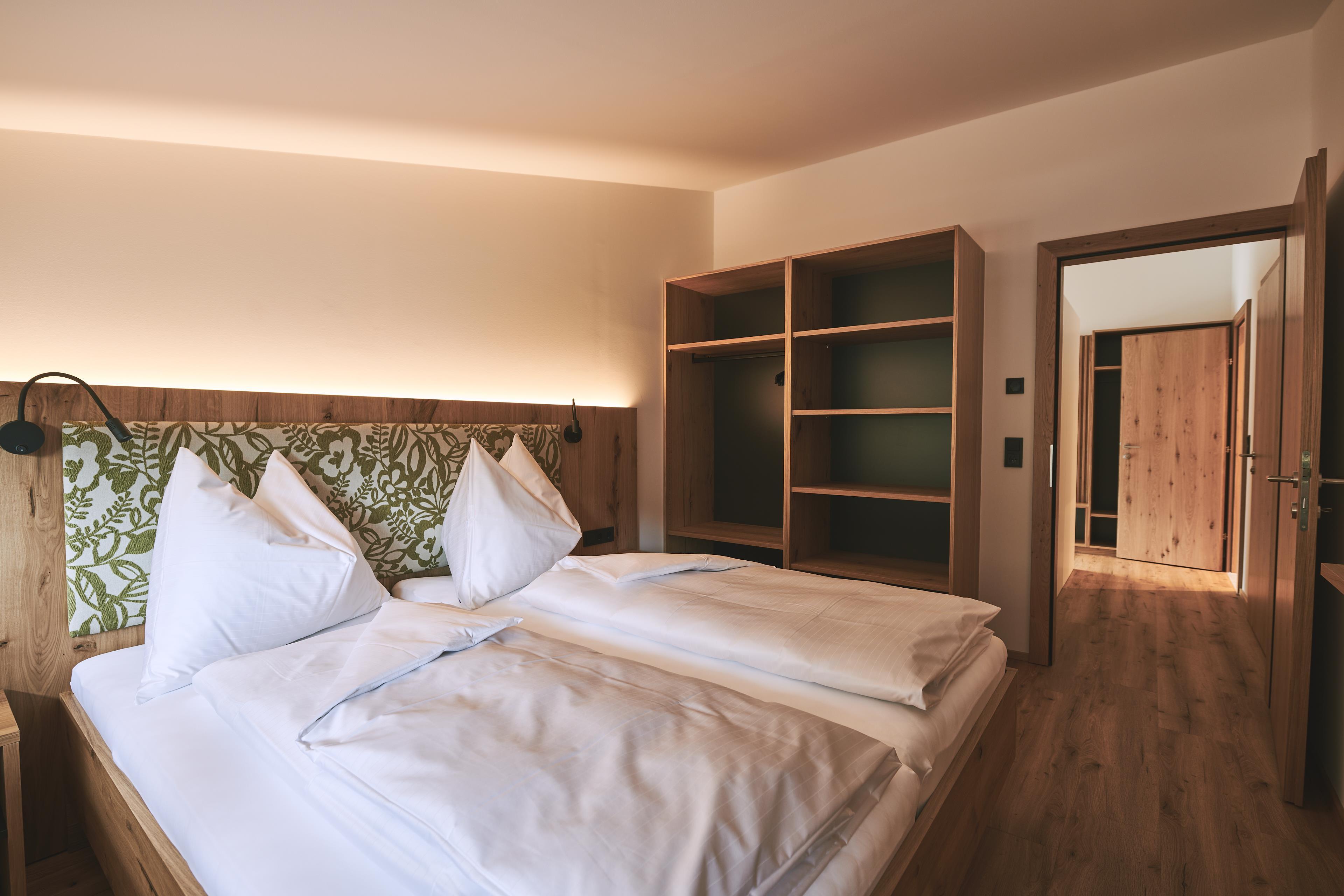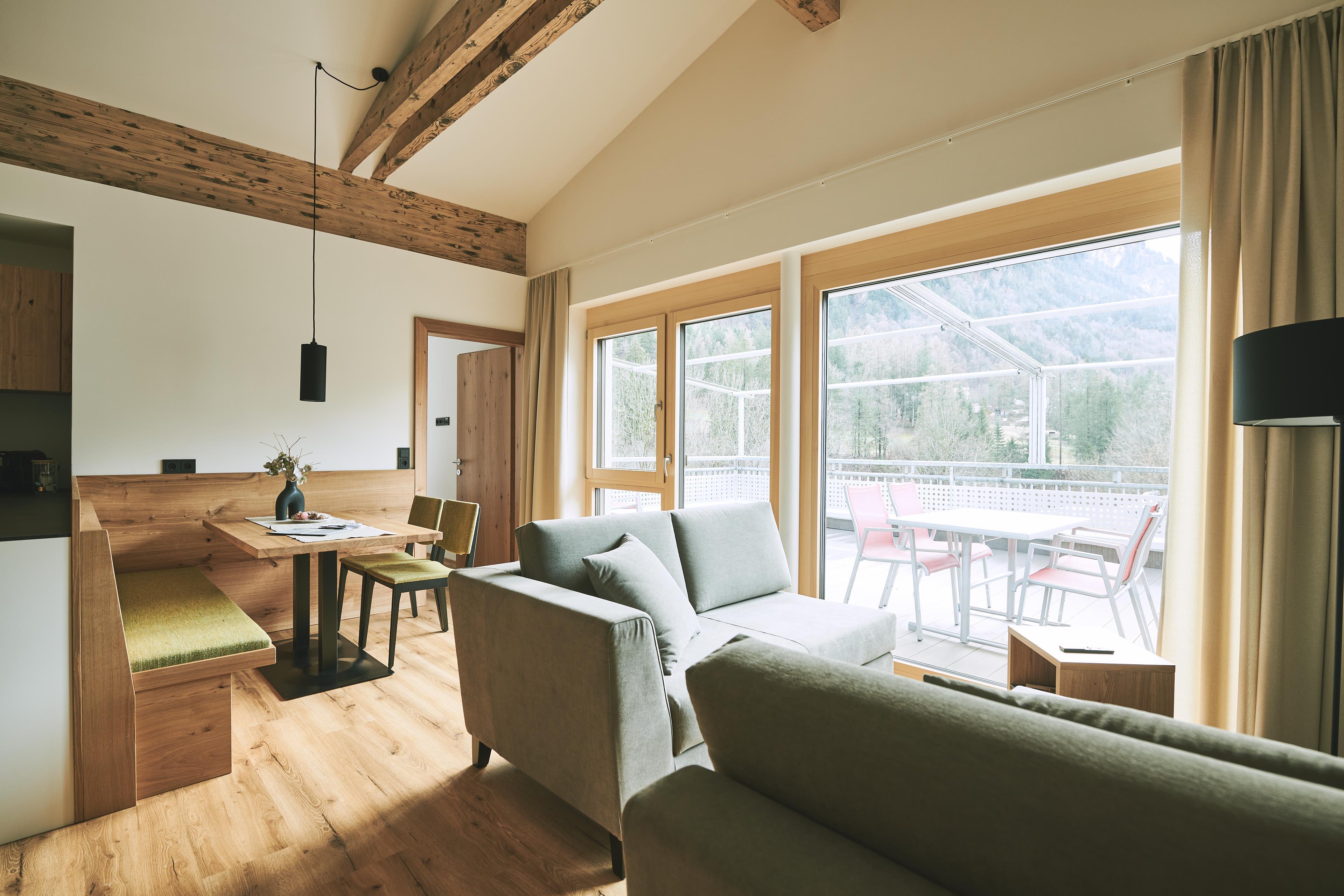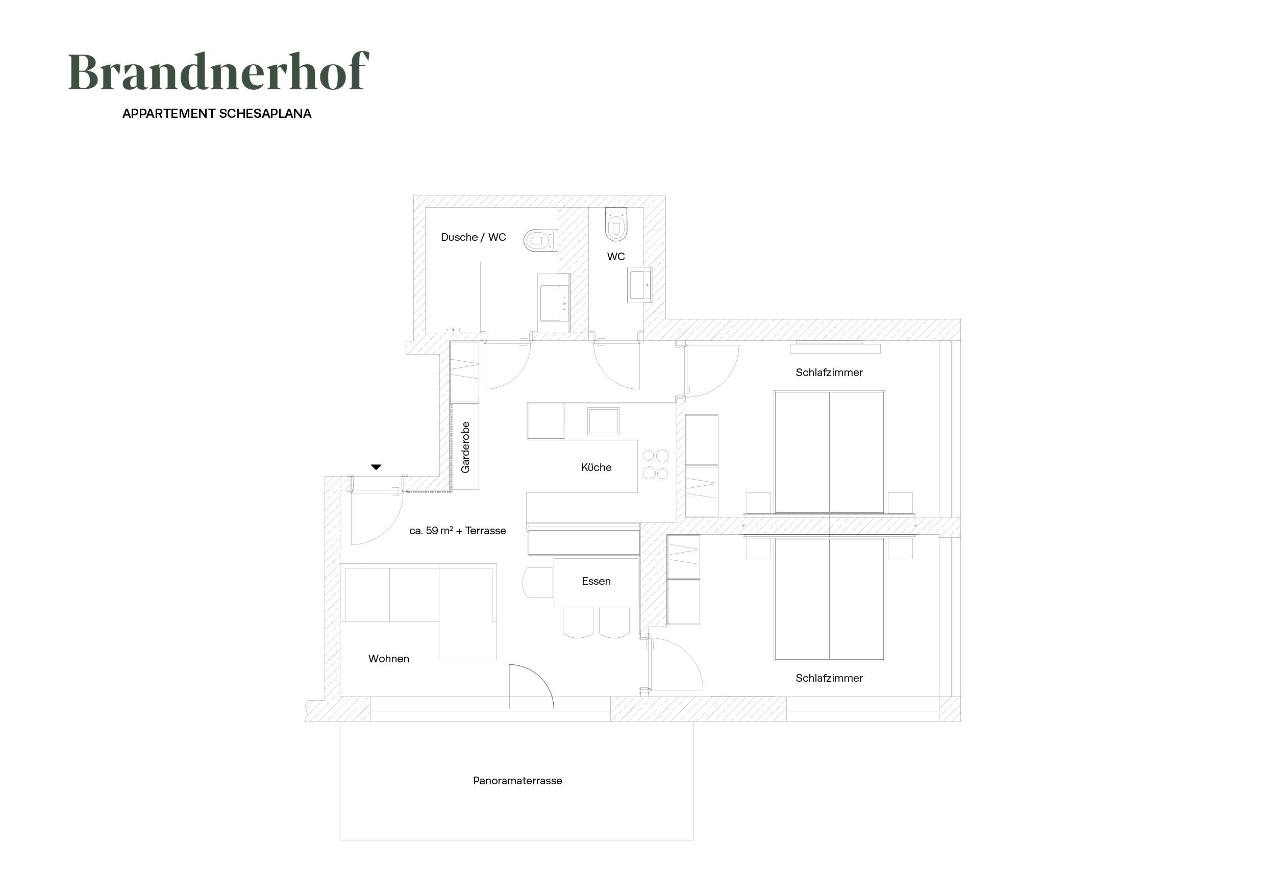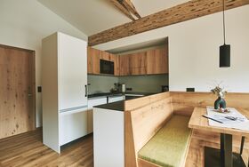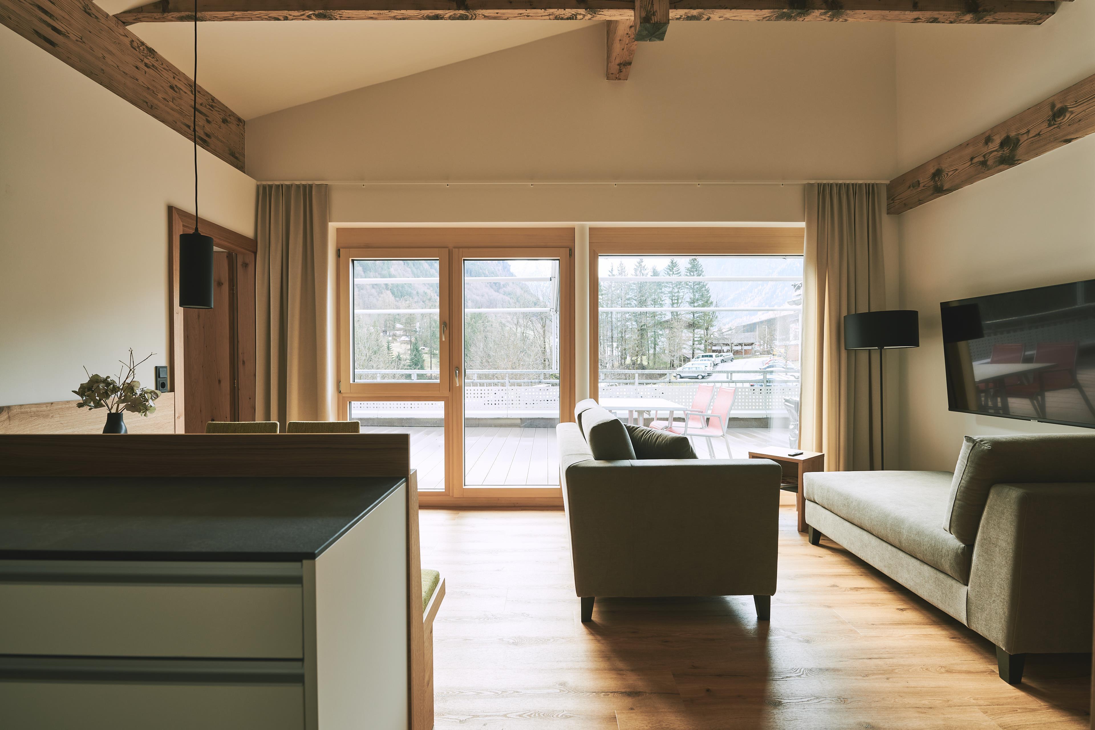 NATÜRLICHES WOHLBEFINDEN ERFAHREN Direkt an das Restaurant angrenzend befindet sich das 59 Quadratmeter große Appartement Schesaplana im OG2/EG und bietet Platz für zwei bis vier Personen. Ausgestattet mit einem kleinen Wohn-Essbereich, einer umso größeren südseitigen Panoramaterrasse mit Bergblick auf die Schesaplana die Königin des Rätikonmassivs, 2 Doppelzimmern, Badezimmer mit Dusche und WC sowie einem separaten WC. In der vollausgestatteten Küche befinden sich Geschirrspüler, Induktionskochfeld, Backofen und Kapsel-sowie Filterkaffeemaschine. Heimeliges Wohngefühl und viel Holz gibt es von uns gerne obendrauf!