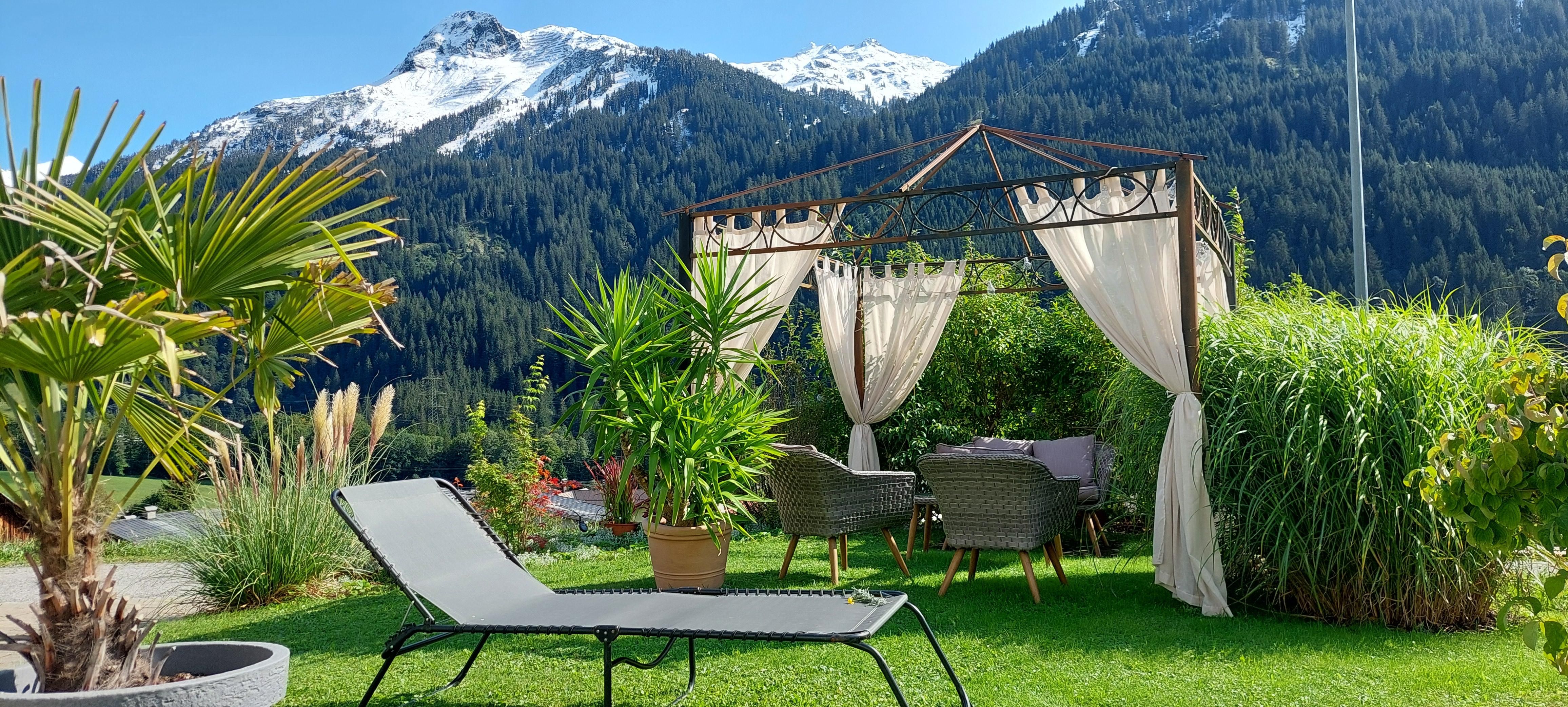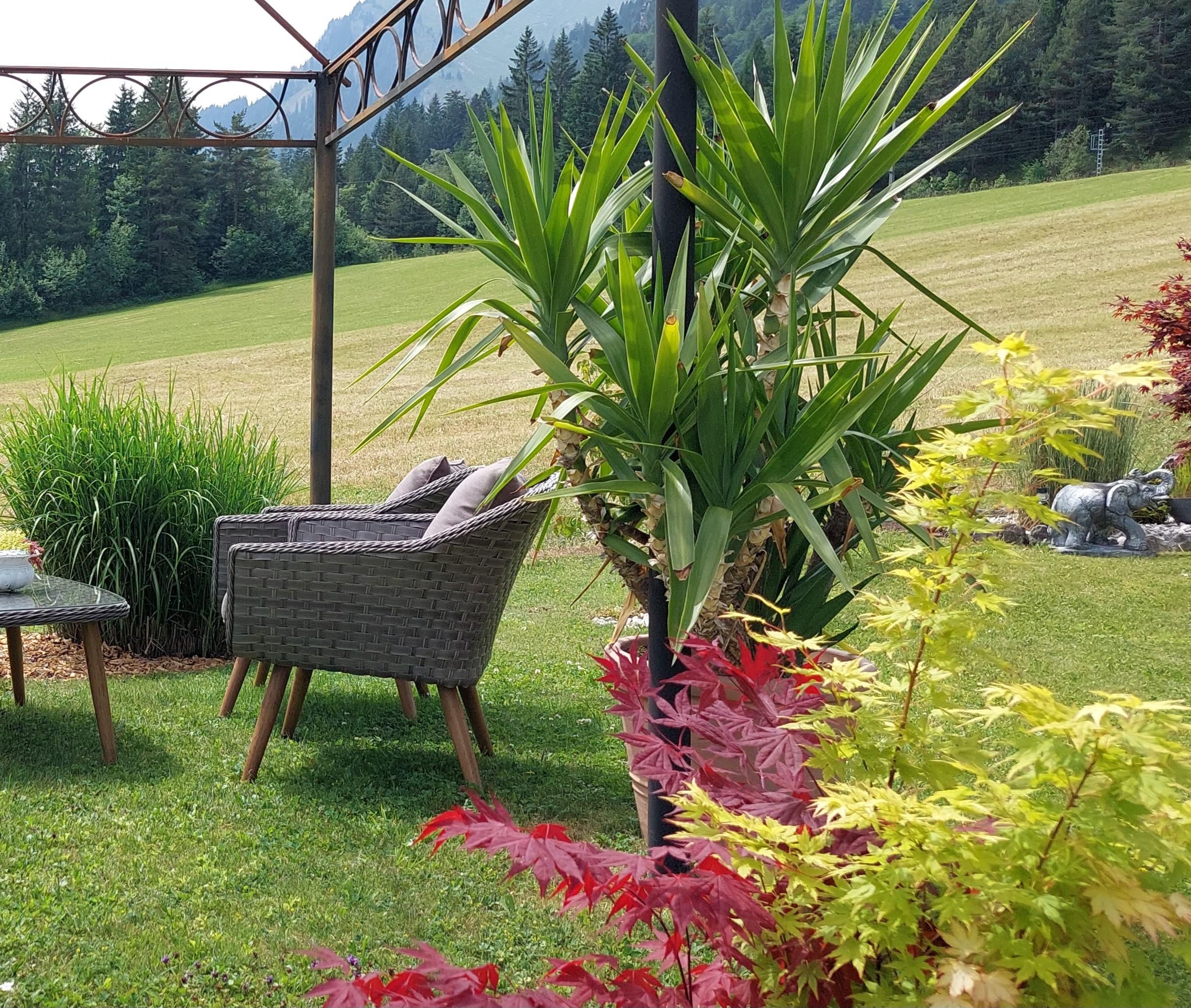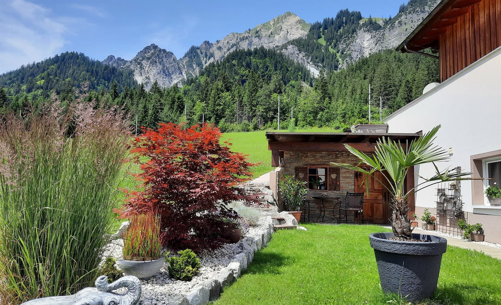 Wir befinden uns in einer Privatstraße in ruhiger Lage und großzügigen Garten mit Grillmöglichkeit, inklusive Traumausblick auf die wunderschönen Berge!