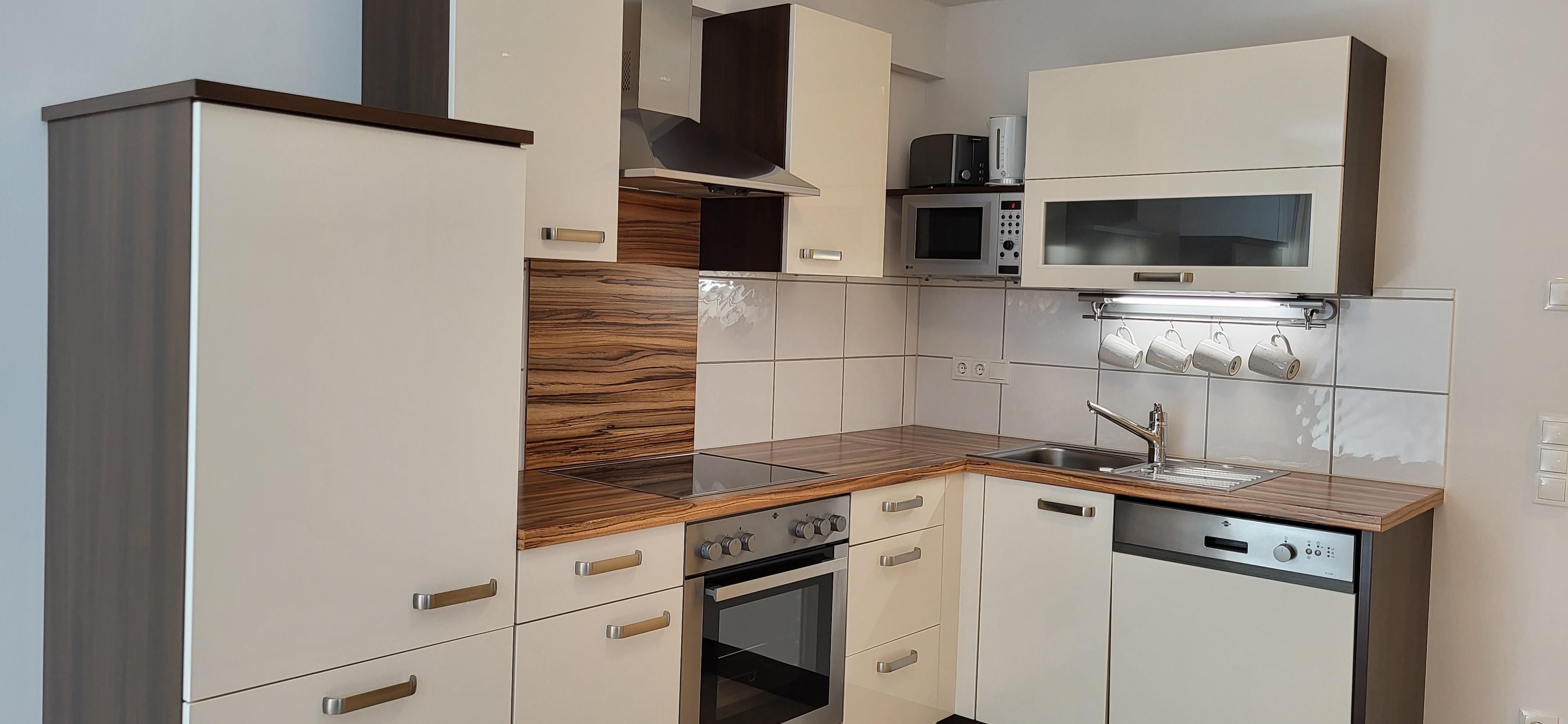 • Gästeküche und gemütlicher Aufenthaltsraum mit Kachelofen und Heimkino