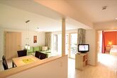 • Gästeküche und gemütlicher Aufenthaltsraum mit Kachelofen und Heimkino