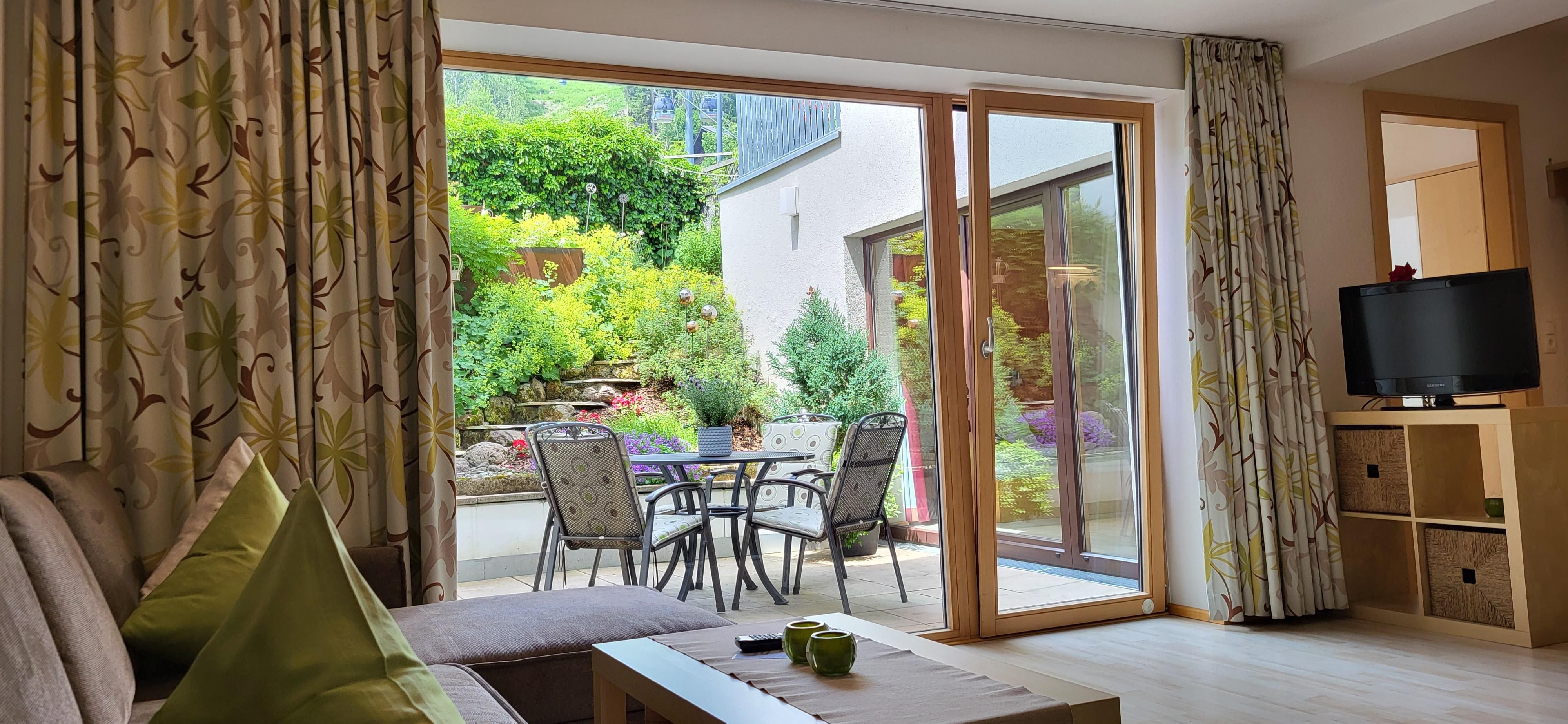 Unsere sauberen, liebevoll eingerichteten Gästezimmer und Appartements – 8 Meter neben der Bergbahn – erwarten Sie mit herzlicher und traditioneller Gastfreundschaft.