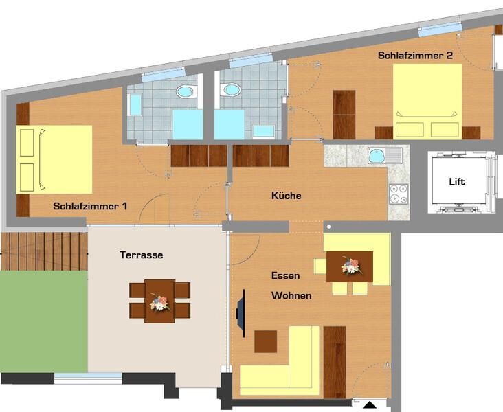 Zentrale Lage: 8 Meter neben der Bergbahn, direkt an der Bushaltestelle, 50 Meter zum 1. Hole vom Golfplatz, mehrere gemütliche Restaurants im Umkreis von 200 Metern, 50 Meter zum Sparmarkt, 70 Meter zum Badeteich