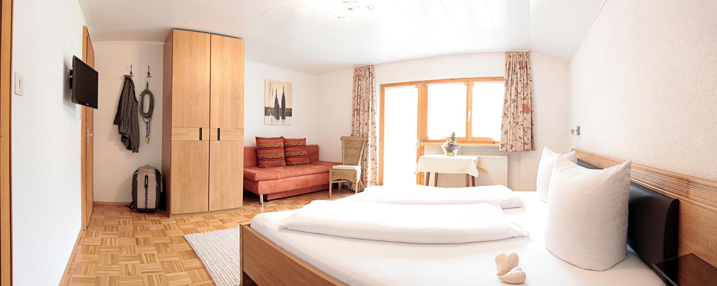 Unsere sauberen, liebevoll eingerichteten Gästezimmer und Appartements – 8 Meter neben der Bergbahn – erwarten Sie mit herzlicher und traditioneller Gastfreundschaft.