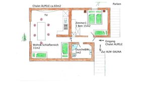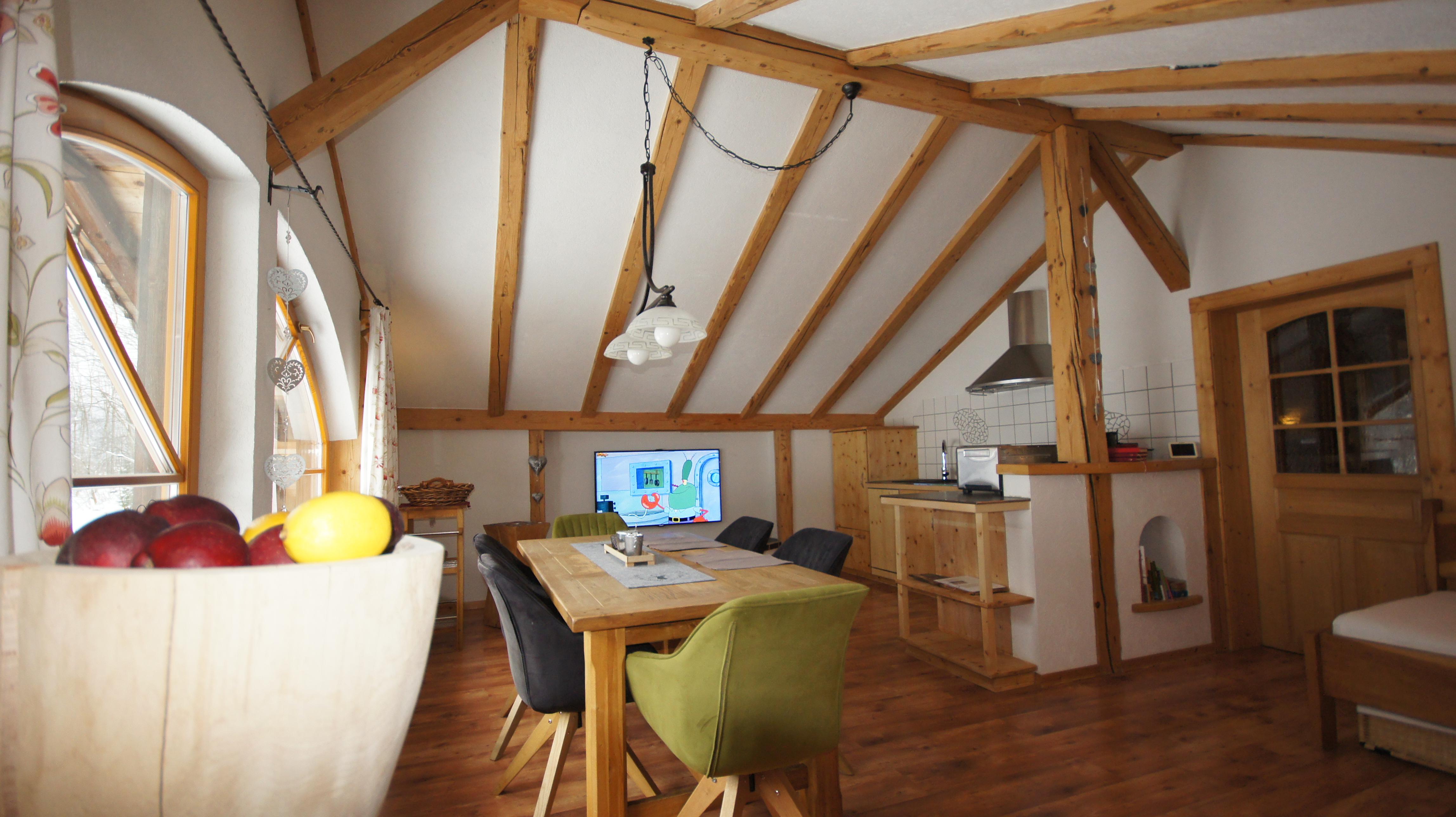 Unser erstes Appartement ÄLPELE im Dachgeschoß hat ca.65 m2 und ist bis zu