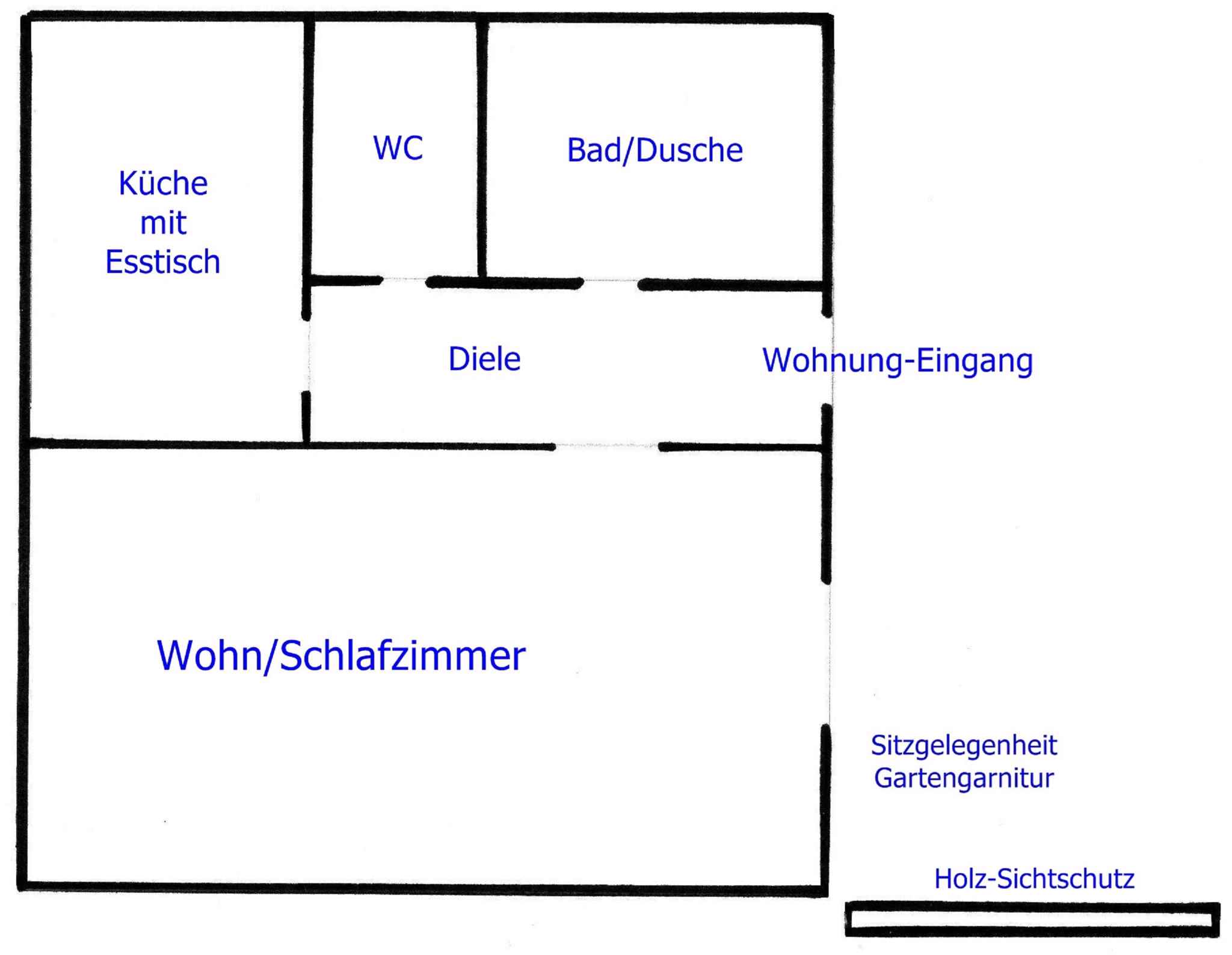Ihr Studio erstreckt sich über 1 Etage, 1 Zimmer, ist 40 qm groß und ist für maximal 2 Personen geeignet. An kälteren Tagen kann Ihr Studio beheizt werden mit Zentralheizung (Gas). Der Eingang ist überdacht und führt über 2 Stufen direkt in den Vorraum mit Garderobe und Türen zu allen Räumen. Die Zimmer teilen sich wie folgt auf: Wohn/Schlafzimmer 25 qm groß und mit 1 Doppelbett und 1 Zusatzbett auf Klappbett, Sitzecke, TV und Radio. Küche 6 qm groß und mit Essecke, Elektroherd, Dunstabzugshaube, Kühlschrank (Eisfach), Mikrowelle, Kaffeemaschine, Toaster und elektrischem Wasserkocher. Die Essecke bietet Platz für 3 Personen. Bad 4 qm groß und mit Dusche, 1 Waschbecken und Föhn. Separates WC 2 qm groß und mit WC. Darüber hinaus ist Ihr Studio mit Kinderspielzeug, Gitterbett und Kinderstuhl ausgestattet. TV- bzw. Rundfunksender können per Satellit empfangen werden.