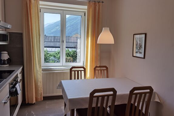 Der Vermieter wohnt ständig im Haus. Relaxen Sie draußen mit Sonnenschirm, Sonnenliege und Gartenmöbeln. Eine Grillmöglichkeit ist vorhanden. Skiraum mit Skischuhtrockner (zur gemeinsamen Nutzung). Ihre Fitness können Sie mit 4 Fahrrädern auf Trab halten.Lage: Obervellach, 700 mNN. Die Ferienwohnung befindet sich in einem einzeln stehenden Einfamilienhaus, wurde im Jahr 2020 renoviert und ist modern und zweckmäßig eingerichtet. Das Grundstück liegt in einem Wohngebiet im Ortszentrum. Auch wegen des Ausblicks auf die Berge und der ruhigen Lage ist das Domizil beliebt. Von der FerienWohnung aus hat man einen Blick auf die Berge, Garten und Kirche. Die Zufahrt zum Grundstück erfolgt über eine asphaltierte Nebenstraße. Öffentliche Parkplätze befinden sich auf der Straße vor dem Haus. Die nächste Einkaufsmöglichkeit ist 100 m entfernt, Restaurant 100 m und Ortszentrum 50 m. Bahnhof in Mallnitz-Obervellach 8 km. Hallenbad, Sauna jeweils 100 m in Obervellach. Autozug in Mallnitz 8 km. Der Autozug fährt nach Böckstein, von dort Bundesstr. und Autobahn nach