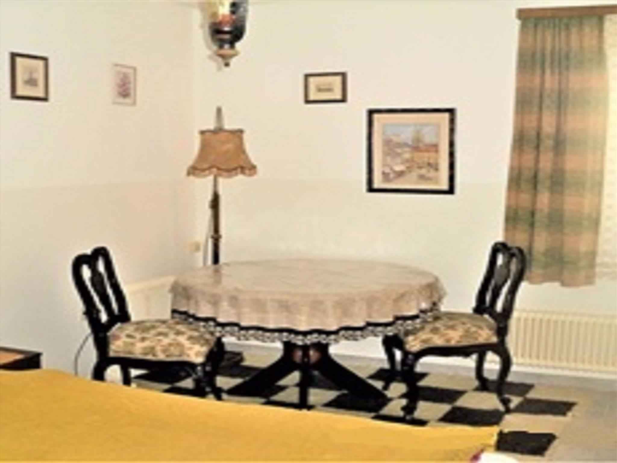 Ihre Ferienwohnung erstreckt sich über 1 Etage, 3 Zimmer (davon 2 Schlafzimmer), ist 65 qm groß und ist für maximal 4 Personen geeignet. An kälteren Tagen kann Ihre Ferienwohnung beheizt werden mit Zentralheizung (Öl). Das Rauchen ist in Innenräumen nicht gestattet. Der Eingang ist im Erdgeschoss und ebenerdig und führt über eine Außentreppe direkt in den Vorraum mit Türen zu allen Räumen. Die Zimmer teilen sich wie folgt auf: Wohnküche mit Sitzecke, TV und Radio. Schlafzimmer mit 1 Doppelbett. Schlafzimmer mit 1 Doppelbett und TV. Kochecke in der Wohnküche mit Essecke, Elektroherd (Cerankochfeld, 4 Platten), Backofen, Dunstabzugshaube, Kühlschrank (Eisfach), Mikrowelle, Kaffeemaschine, Toaster und elektrischem Wasserkocher. Die Essecke bietet Platz für 4 Personen. Bad mit Dusche, 1 Waschbecken, WC und Föhn. Darüber hinaus ist Ihre Ferienwohnung mit WLAN- Internetzugang, Waschmaschine und Wäschetrockner ausgestattet. TV- bzw. Rundfunksender können per Satellit empfangen werden.