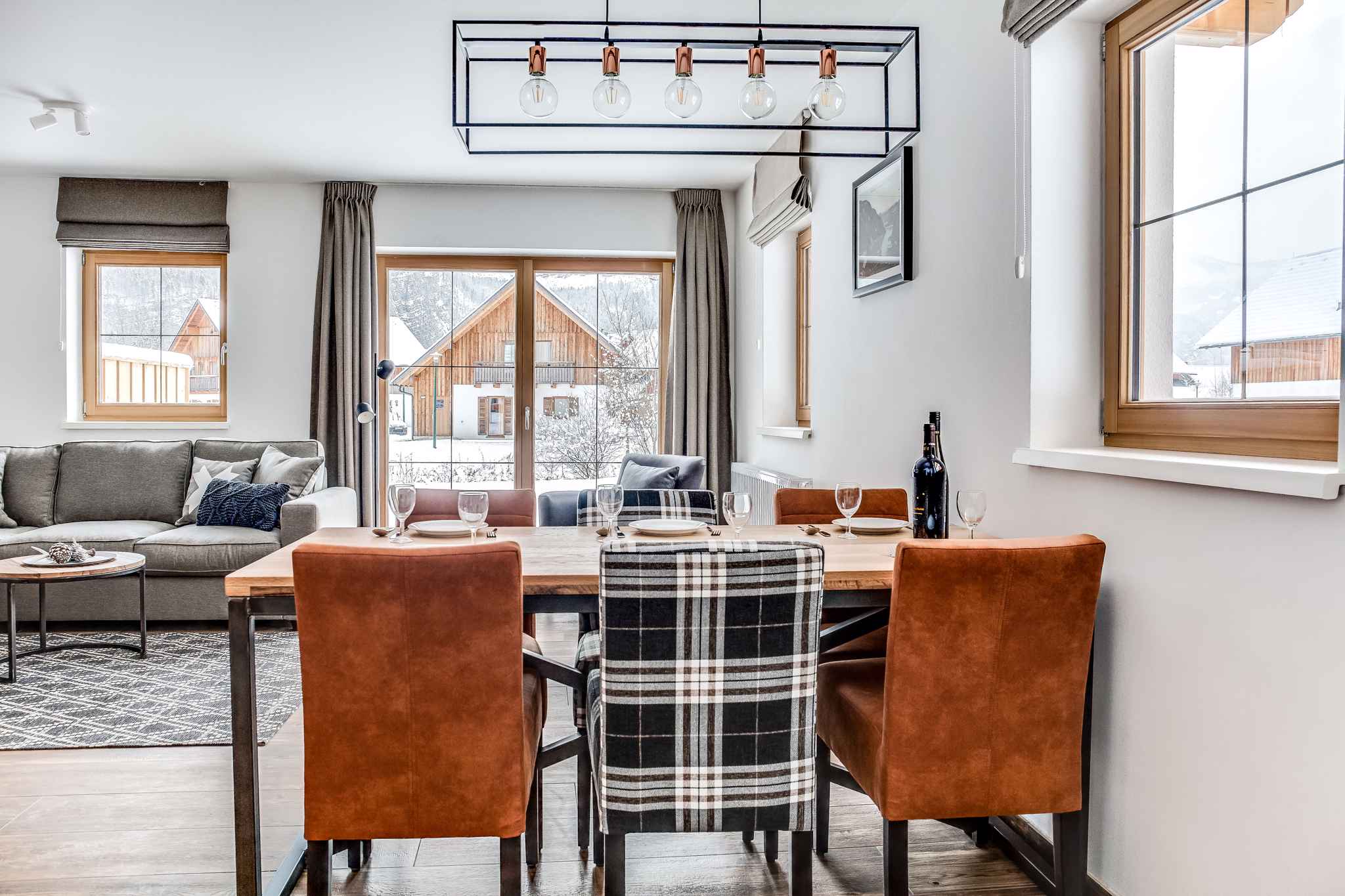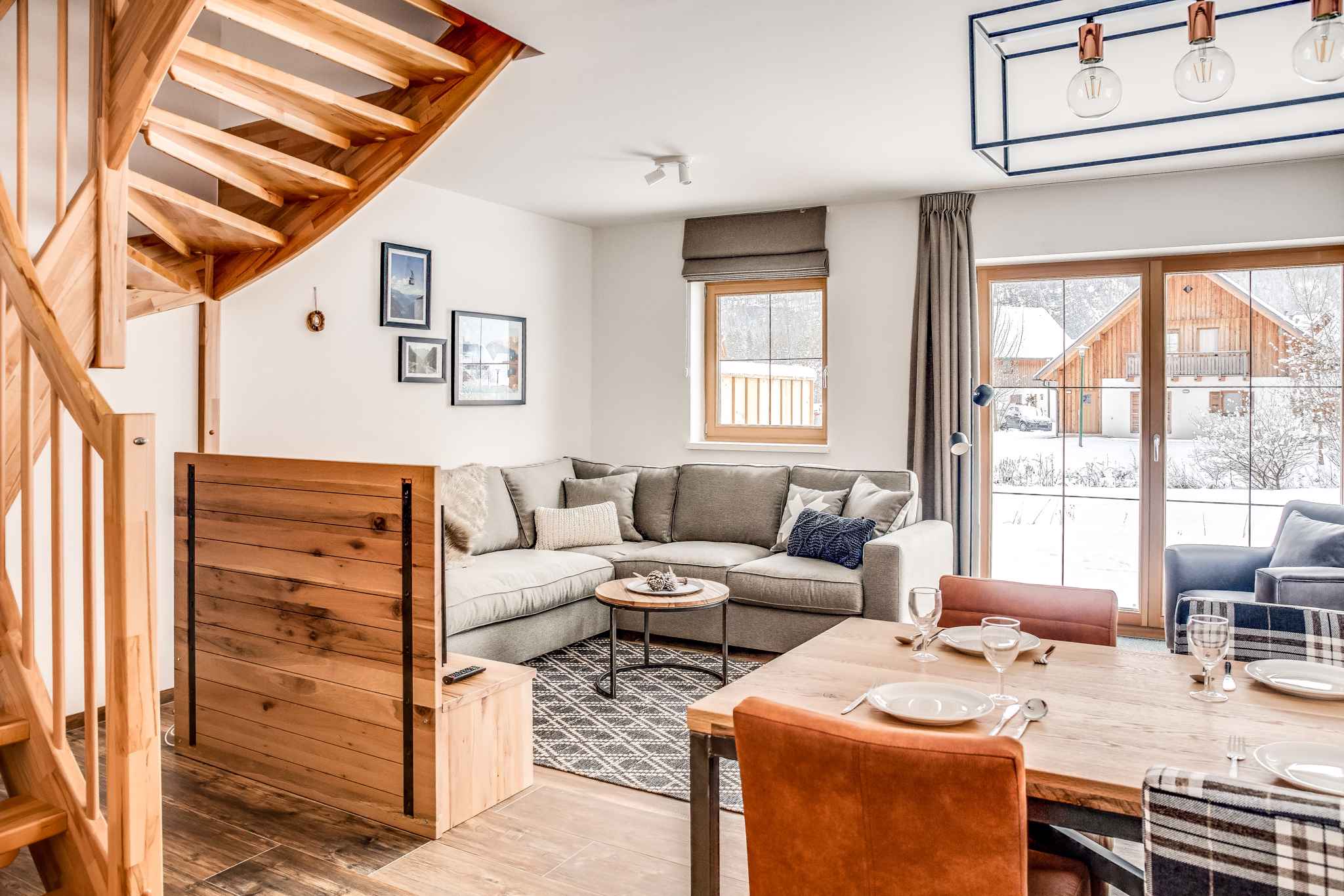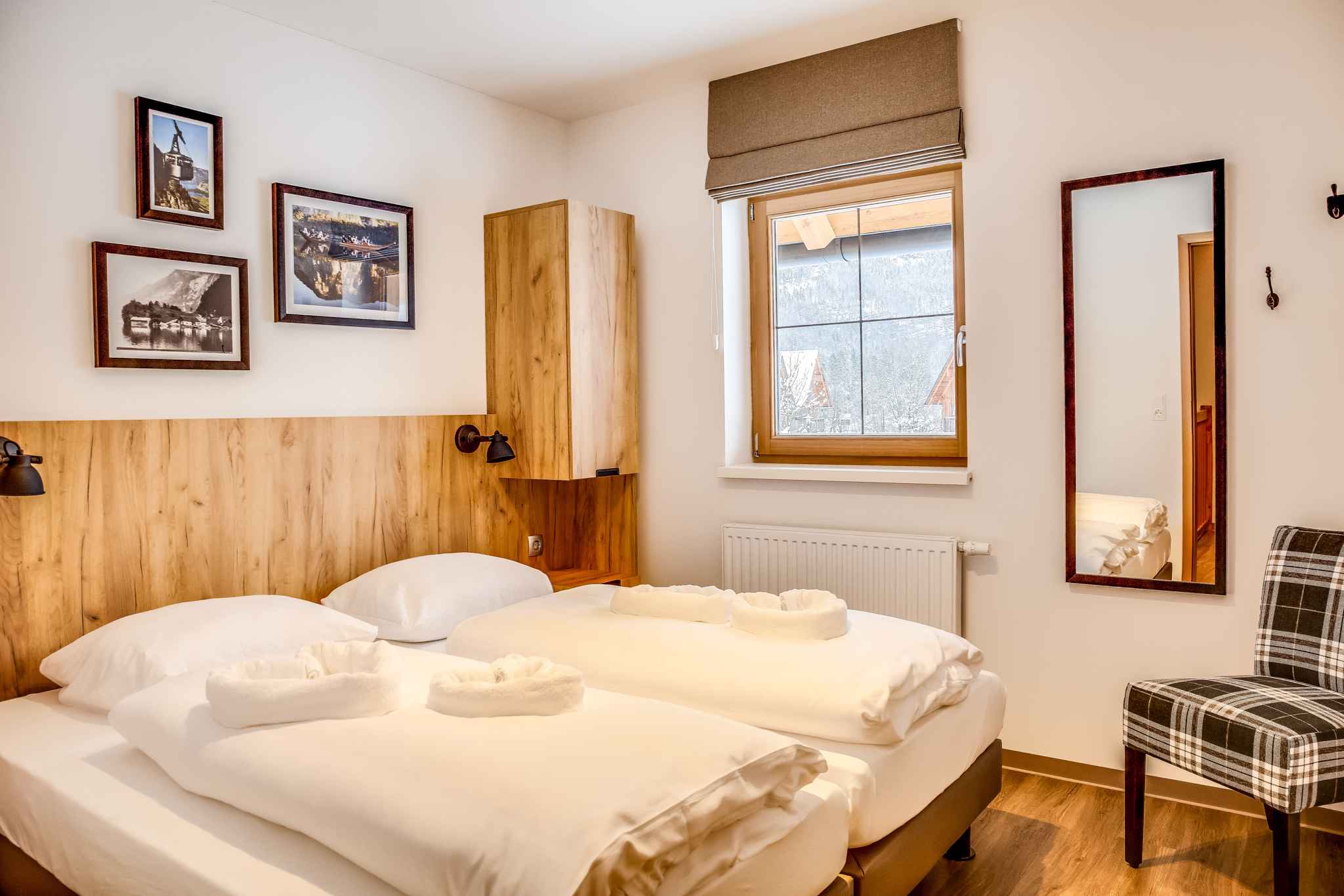 Alle Chalets sind mit viel Holz in gehobenen alpenländischen Stil eingerichtet. Die Anlage verfügt über Rezeption, Internet (WLAN), 1 Restaurant, Bar, Café, Kinderspielzimmer, Terrasse und Kinderspielplatz. Babysitter Innenpool (12 m x 5 m, 1,4 m tief). Dampfbad, Sauna, Fitnessraum und Massage. Im Juli und August Kinderbetreuung für Kinder 3-12 Jahre laut Aushang vor Ort.Kreditkarten: Visa, MasterCard.Lage: Obertraun, 514 mNN. Das einzeln stehende Chalet ist eine Doppelhaushälfte und modern eingerichtet. Das Grundstück befindet sich in einer Ferienanlage. Auch wegen der sonnigen Lage ist das Domizil beliebt. 1 Parkplatz pro Chalet in unmittelbarer Nähe. (Bei An- und Abreise kann für Aus- und Beladen des Gepäcks direkt vor das Chalet vorgefahren werden.) Weitere Parkmöglichkeiten am zentralen Parkplatz. Die nächste Einkaufsmöglichkeit ist 1000 m entfernt, Restaurant 100 m und Ortszentrum 700 m. Bahnhof in Obertraun 400 m. Ortszentrum und Bahnhof ca. 5 Gehminuten. Talstation der Krippensteinseilbahn ca. 2 km. Eisstockbahn, Pferdeschlittenfahrt, Eislaufplatz, Ski- und Rodelverleich in Obertraun. Welterbe-Ort Hallstatt 5 km, Bad Ischl 25 km.Im Sommer: Badesee in Obertraun 100 m. Reitmöglichkeiten, Schiffanlegestelle der Hallstattschifffahrt. Öffentliches Strandbad. Ostuferwanderweg, Koppental-Wanderweg. Für Alpinisten Aufstiegsmöglichkeiten zum Dachsteinplateau. Talstation der Dachstein Seilbahn zur Eis- und Mammuthöhle und zur Five Fingers Aussichtsplattform am Krippenstein.Im Winter: Der nächste Skilift befindet sich in 2 km Entfernung in Skigebiet Freesports Arena Krippenstein. Das nächstgelegene Skigebiet Skigebiet Gosau/Russbach/Annaberg ist 20 km entfernt und befindet sich in Gosau. Der Skibus fährt 100 m von Ihrem Chalet. Skigebiet Gosau/Russbach/Annaberg: 40 Schlepplifte, 12 Sessellifte, 8 Kabinenbahnen. 142 Pistenkilometer: 34 km blau, 96 km rot, 12 km schwarz. 45 km Langlaufloipe in Gosau. Skigebiet Freesports Arena Krippenstein: 2 Schlepplifte, 1 Sessellift, 3 Kabinenbahnen. 13 Pistenkilometer: 4 km blau, 6 km rot, 3 km schwarz. Funpark, Winterwandern, Schneeschunwandern, 14 km Langlaufloipe.