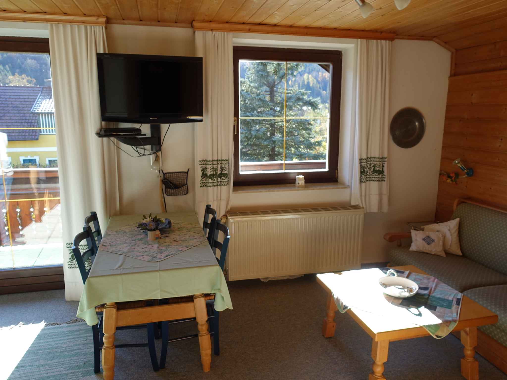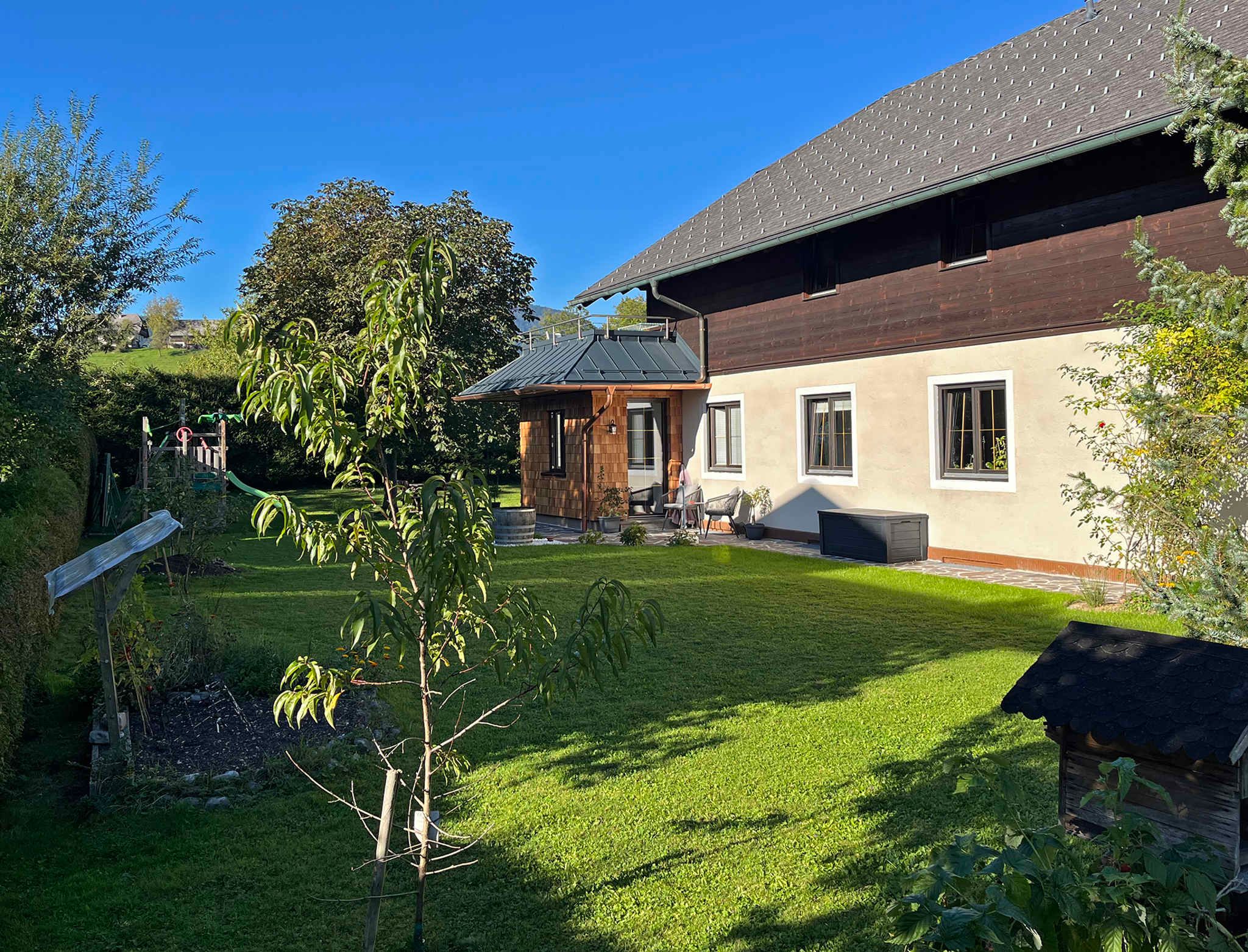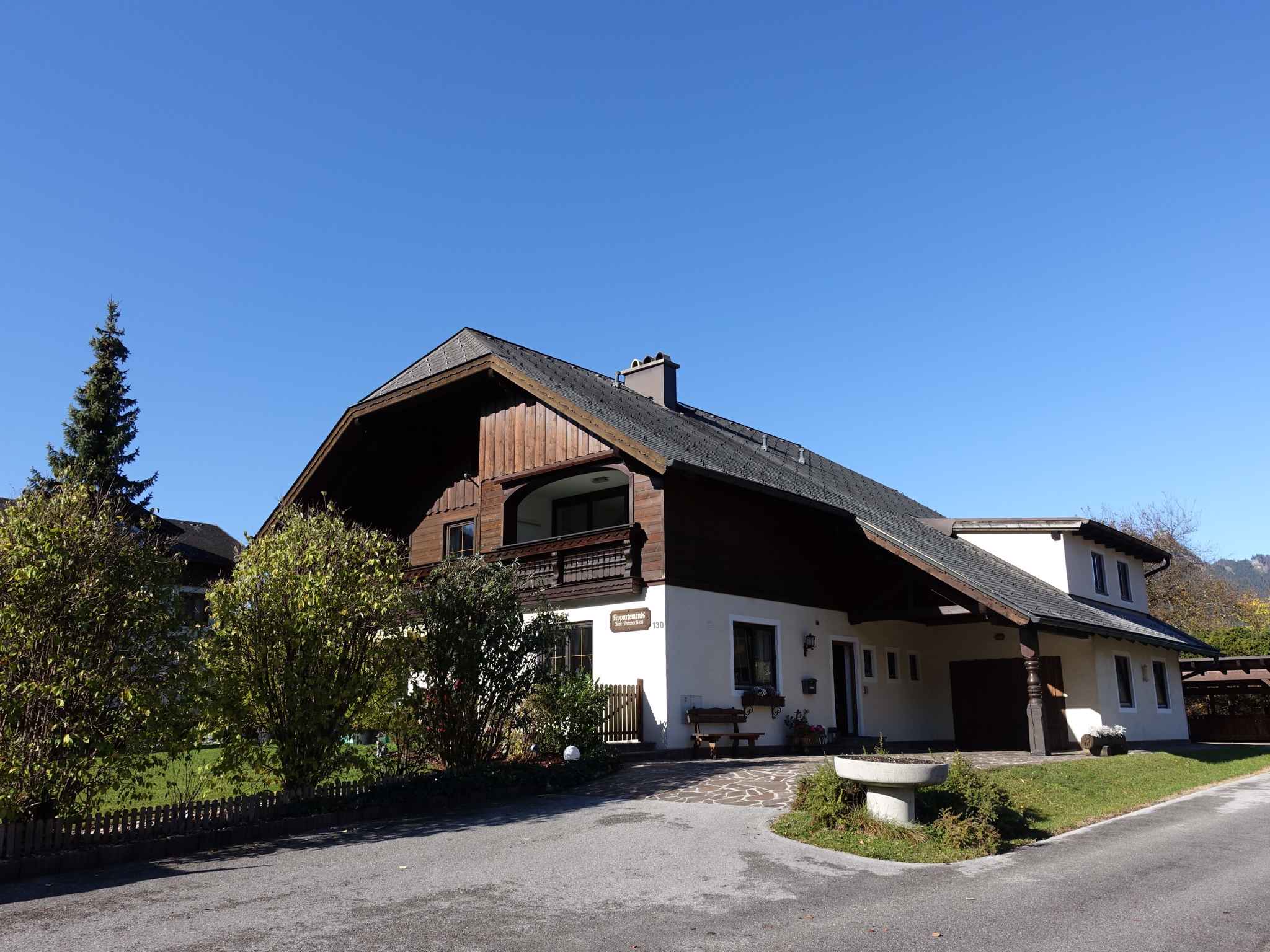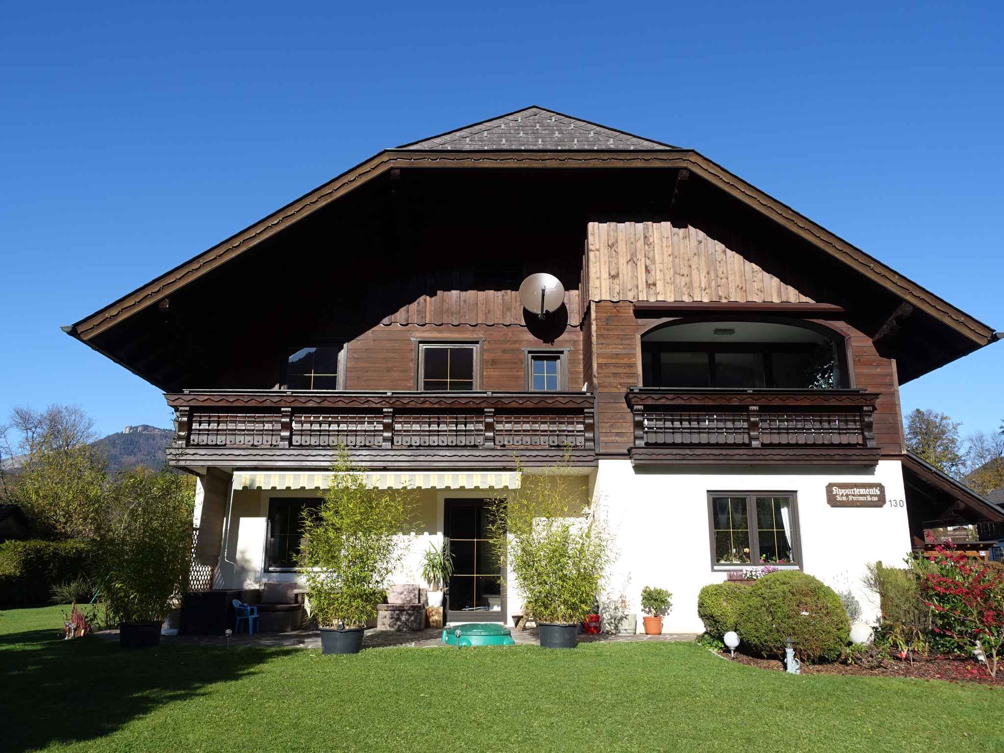 Die Ferienwohnung befindet sich auf einem 1800 qm großen, geschlossenen Gartengrundstück mit Wiese, Blumen, Sträuchern und Bäumen. Das Grundstück ist mit einer Hecke umschlossen. Der Schlafbereich ist mittels Schiebetüren durch eine Trennwand geteilt. Die Wohnung ist maximal für 2 Erwachsene oder 2 Erwachsene + 2 Kinder geeignet. Der Vermieter wohnt ständig im Haus oder, nutzt jedoch einen separaten Eingang. Die Ausstattungen stehen Ihnen zur gemeinsamen Nutzung zur Verfügung. Relaxen Sie draußen mit Pavillon, Sonnenschirm und Gartenmöbeln. Der Spielplatz mit Schaukel lässt Kinderherzen höher schlagen. Eine Grillmöglichkeit ist vorhanden. Abschließbarer Fahrradschuppen.Lage: Strobl, Ortsteil Weissenbach, 560 mNN. Die Ferienwohnung befindet sich in einem Apartementhaus und ist im typischen Landesstil eingerichtet. Das Grundstück liegt am Ortsrand. Auch wegen des Ausblicks auf die Berge und der sonnigen Lage ist das Domizil beliebt. Der Schlafbereich ist mittels Schiebetüren durch eine Trennwand geteilt.