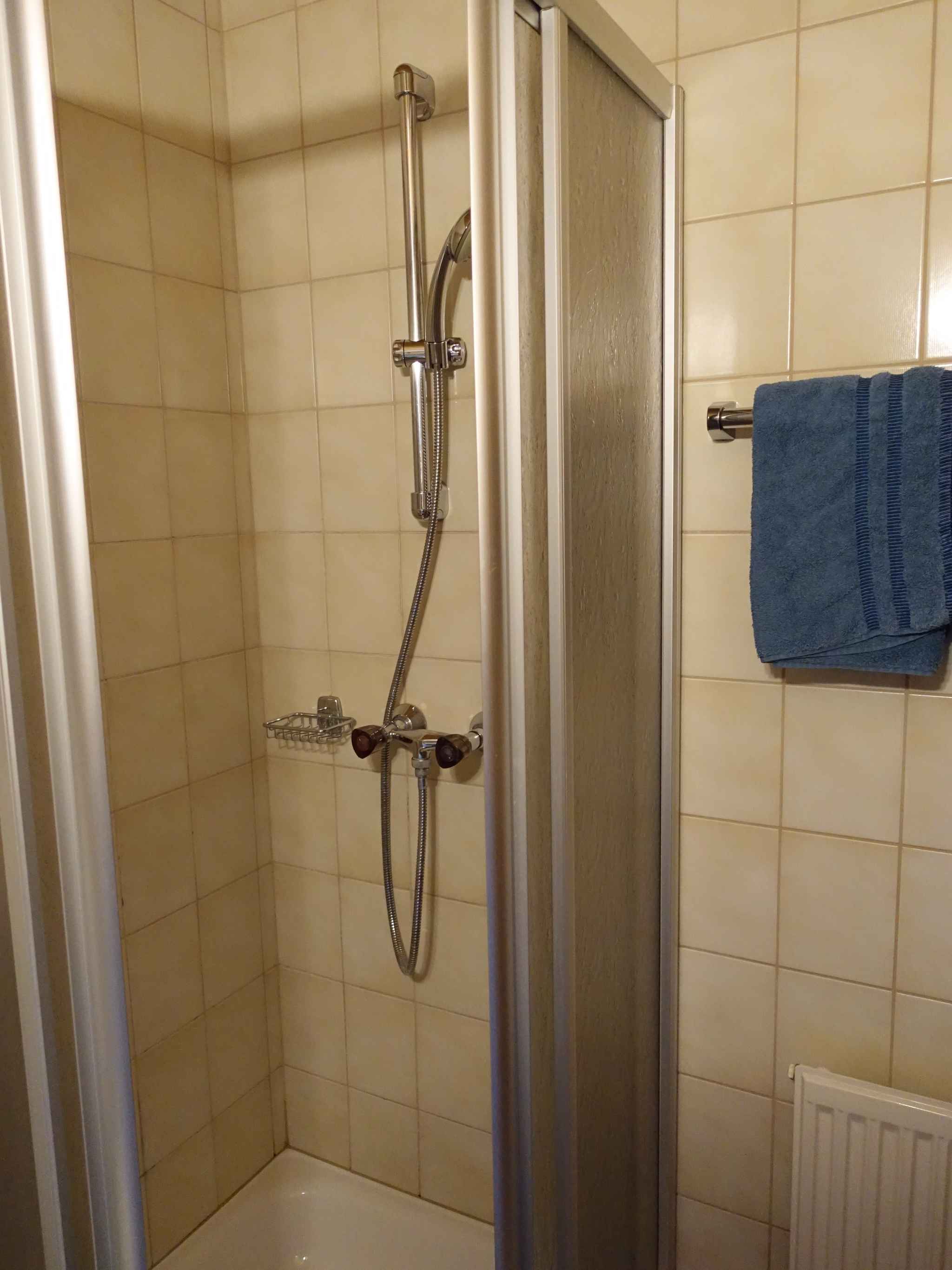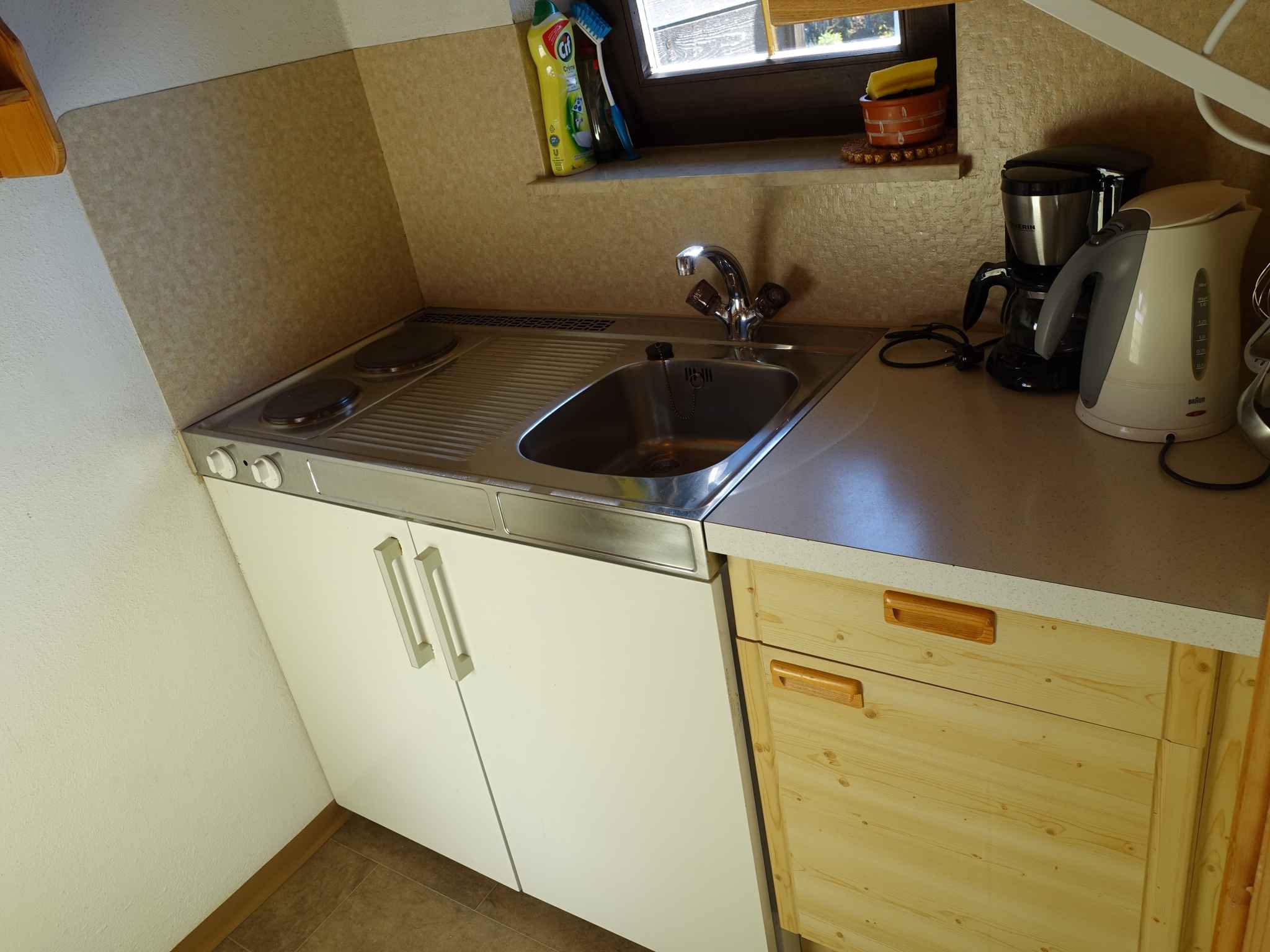 und führt über eine Innentreppe direkt in den Vorraum mit Garderobe. Die Zimmer teilen sich wie folgt auf: Wohn/Schlafzimmer mit 2 Kinderbetten, Sitzecke, Essecke und TV. Die Essecke bietet Platz für 4 Personen. Sie haben Zugang zum überdachten Balkon mit Gartenmöbeln, 1 Tisch und 2 Stühlen. Schlafzimmer mit 1 Doppelbett. Kochnische mit Elektroherd (2 Platten), Kühlschrank (Eisfach), Mikrowelle, Kaffeemaschine, Toaster und elektrischem Wasserkocher. Die für 3 Personen. Bad mit Dusche, 1 Waschbecken, WC und Föhn. Darüber hinaus ist Ihre Ferienwohnung mit WLAN- Internetzugang und Kinderspielzeug ausgestattet. TV- bzw. Rundfunksender können per Satellit empfangen werden.