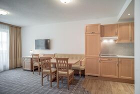 Alle Ferienwohnungen sind lichtdurchflutet und hell, und bieten viel Platz um sich im Urlaub ganz zu Hause zu fühlen. Unser Haus liegt zentral und Sie erreichen in nur wenigen Gehminuten das Zentrum (ca. 250 m) bzw. die Skipiste (ca. 100 m). Wir bieten Ihnen eine persönlich betreute Rezeption, moderne Skiaufbewahrung, Lift, eine kleine Saunalandschaft (nur im Winter geöffnet) mit 3 Kabinen, Frischluftausgang & Ruheraum mit Teebar sowie eine Garage (1 Garagenplatz inkludiert)