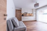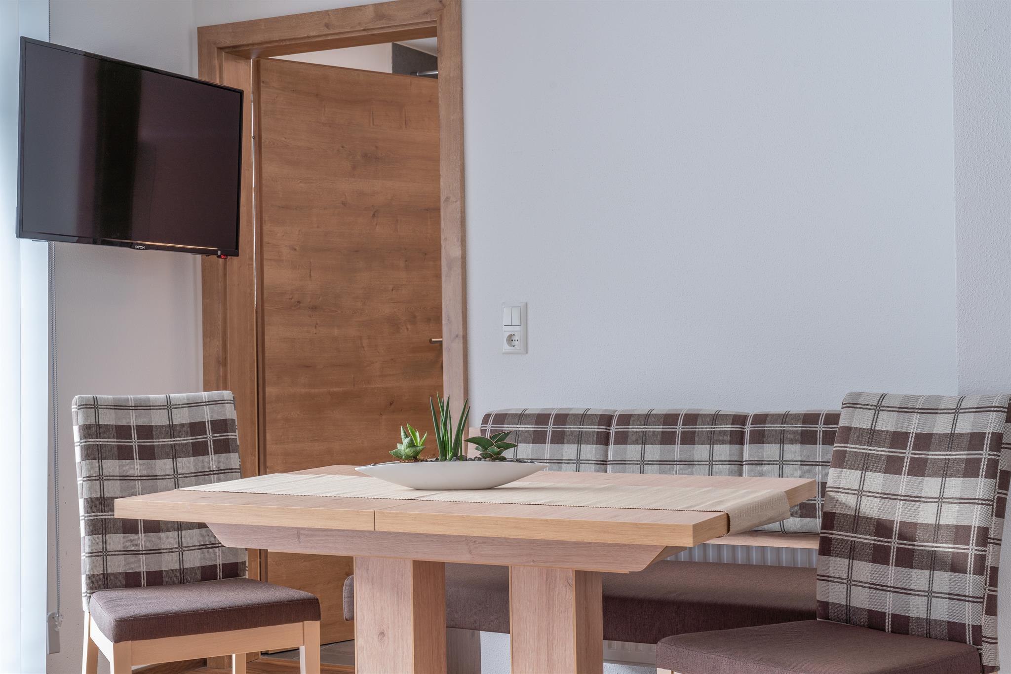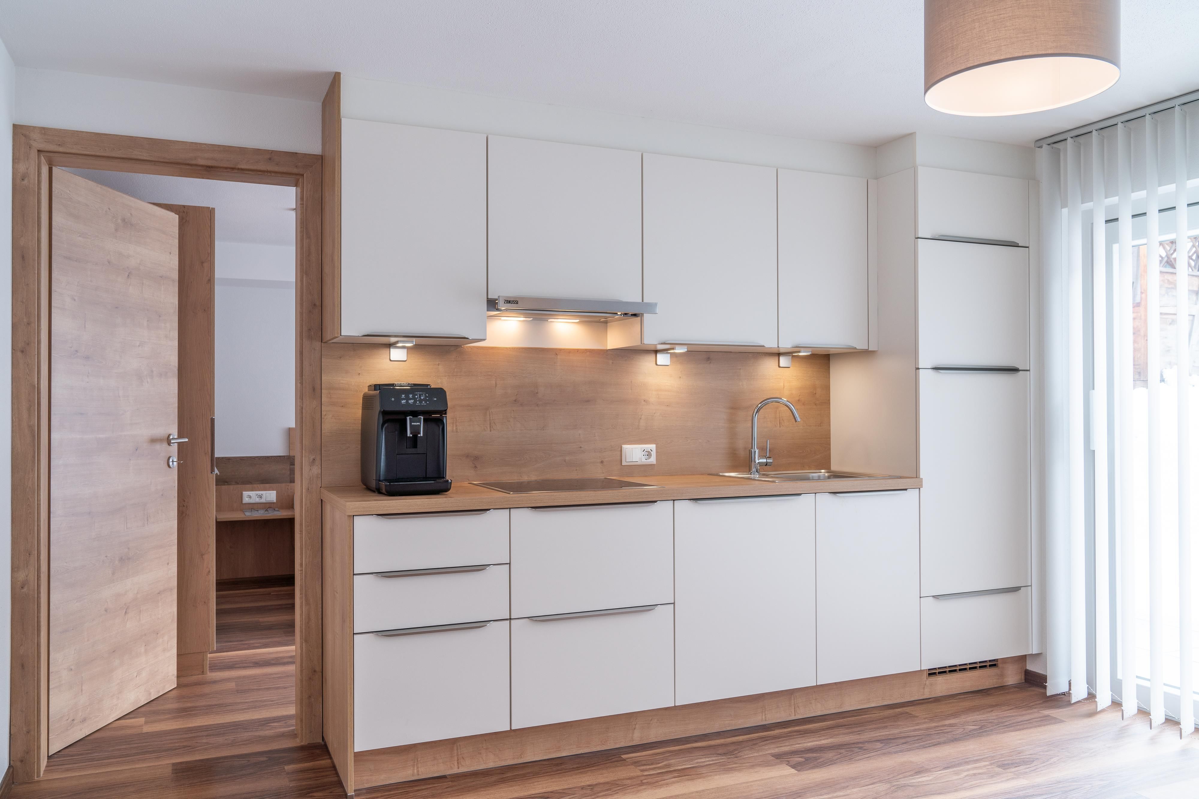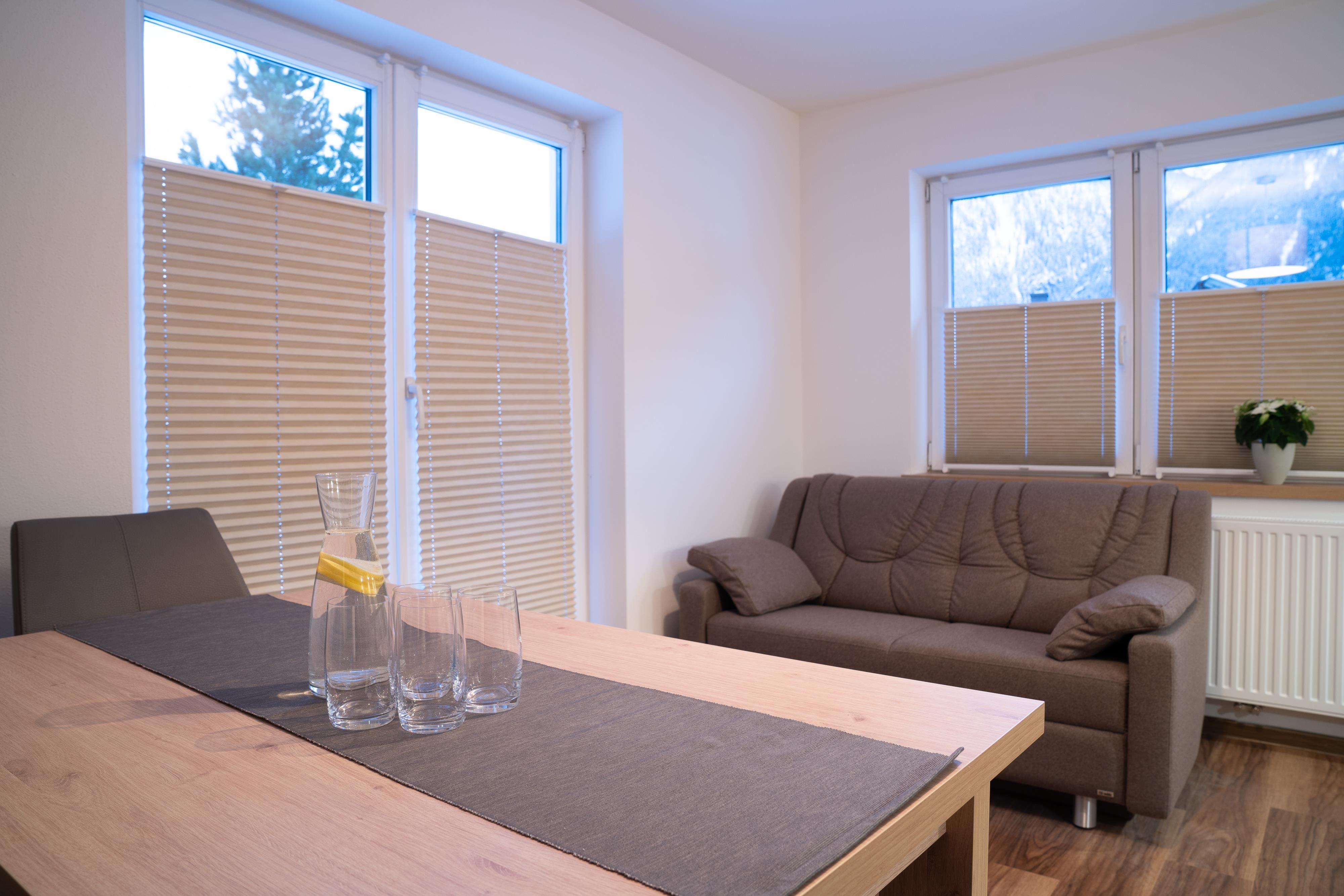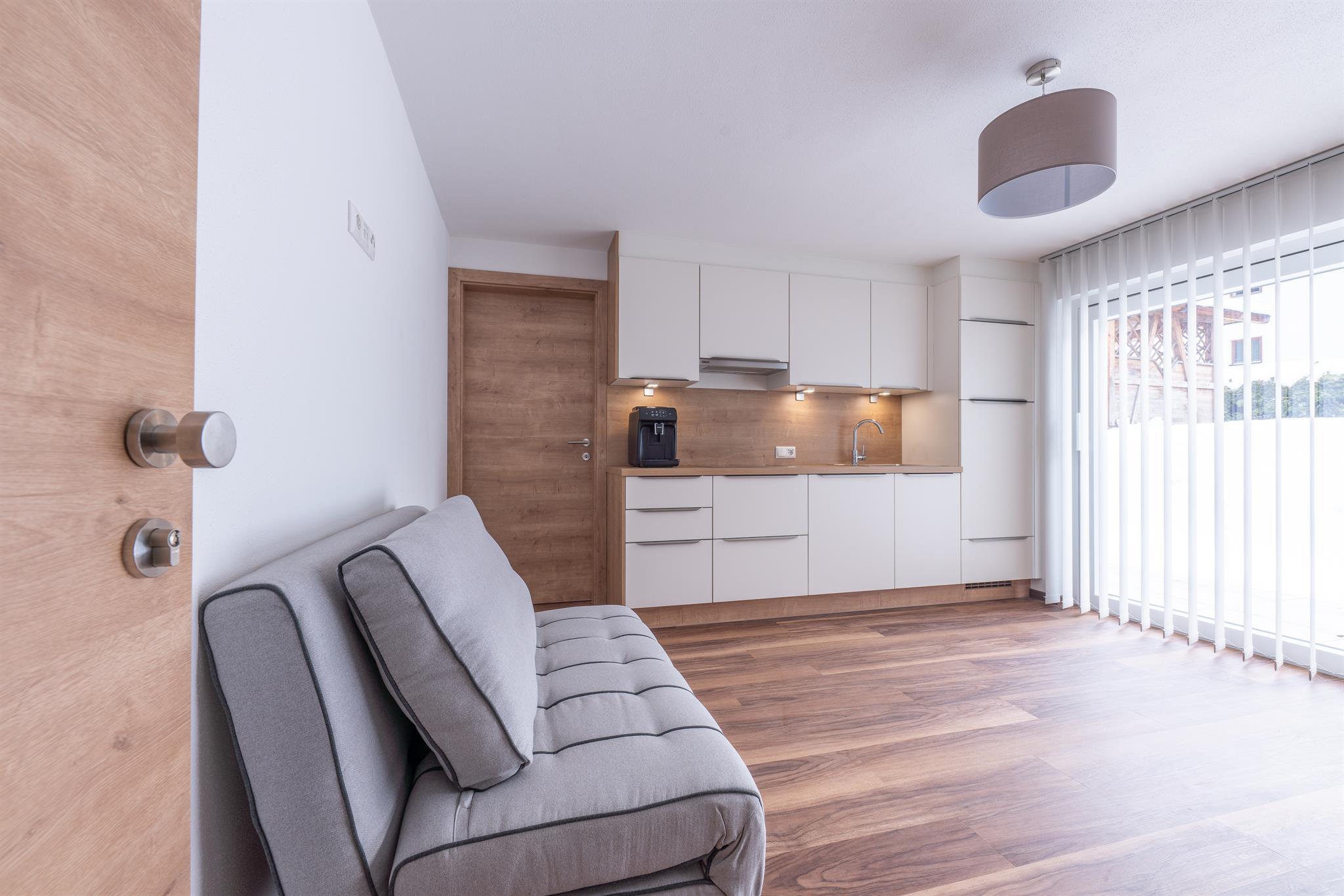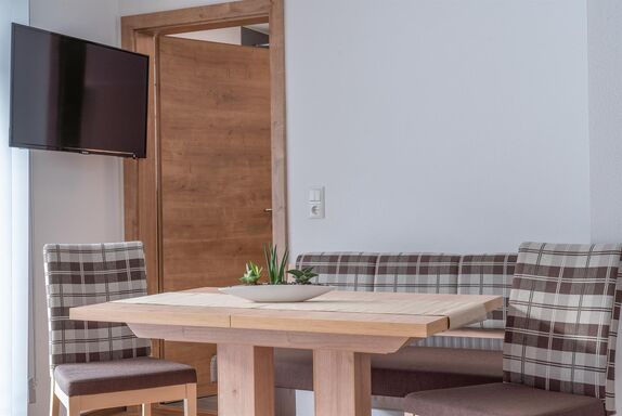 Appartement Goldstück mit ca. 37 m²: 1 Doppelzimmer mit Schlafsofa für eine weitere Person, 1 Badezimmer mit Dusche/WC, gemütliche, komplett ausgestattete Wohnküche (Cerankochfeld, Geschirrspülmaschine, Kaffeevollautomat, Kühlschrank mit Tiefkühlfach, Mikrowelle, Geschirr, Besteck, Gläser uvm.) mit Essbereich, Sofa und eigener, möblierten Terrasse!