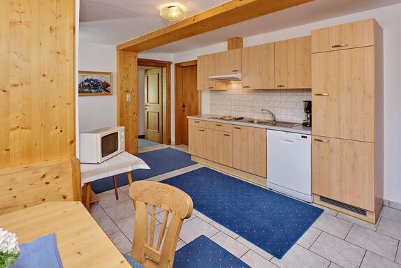 Das Appartement für 8 Personen verfügt über 2 Doppelzimmer mit Dusche/WC und 1 Vierbettzimmer mit Dusche/WC (ideal für Familien mit Kinder) Flat-TV, Balkon. Die Küche ist ausgestattet mit Flat-TV, Kaffeemaschine, Kühlschrank mit Gefrierfach,Toaster, Wasserkocher, Mikrowelle, Geschirr, Geschirrspülmaschine, E-Herd (ohne Backrohr). Größe: ca. 79 m² Auf Anfrage für 10 Personen geeignet (noch zusätzlich ein Appt. für 2 Pers. mit Verbindungstür)