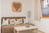 Mit viel Liebe zum Detail eingerichtet, erwartet Sie ein gemütliches familiäres Ambiente auf 65 m². Es ist eine komplett abgetrennte Wohnung mit eigenem Eingang & eigenem Garten aufgeteilt auf zwei Etagen. Im Parterre befindet sich die komplett neu eingerichtete Küche mit gemütlichem Essbereich. Enspannen und sich Wohlfühlen können Sie im angrenzenden Wohnzimmer mit Flat-TV. Ein Doppelzimmer mit Doppelbett sowie ein Schlafzimmer mit französischem Bett (1,40 m) und Einzelbett jeweils mit Flat-TV, Schreibtisch und Schminkbereich mit Haarföhn. Badezimmer mit Dusche, separates WC.