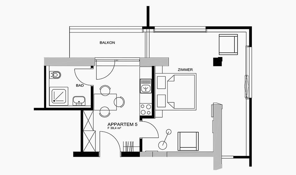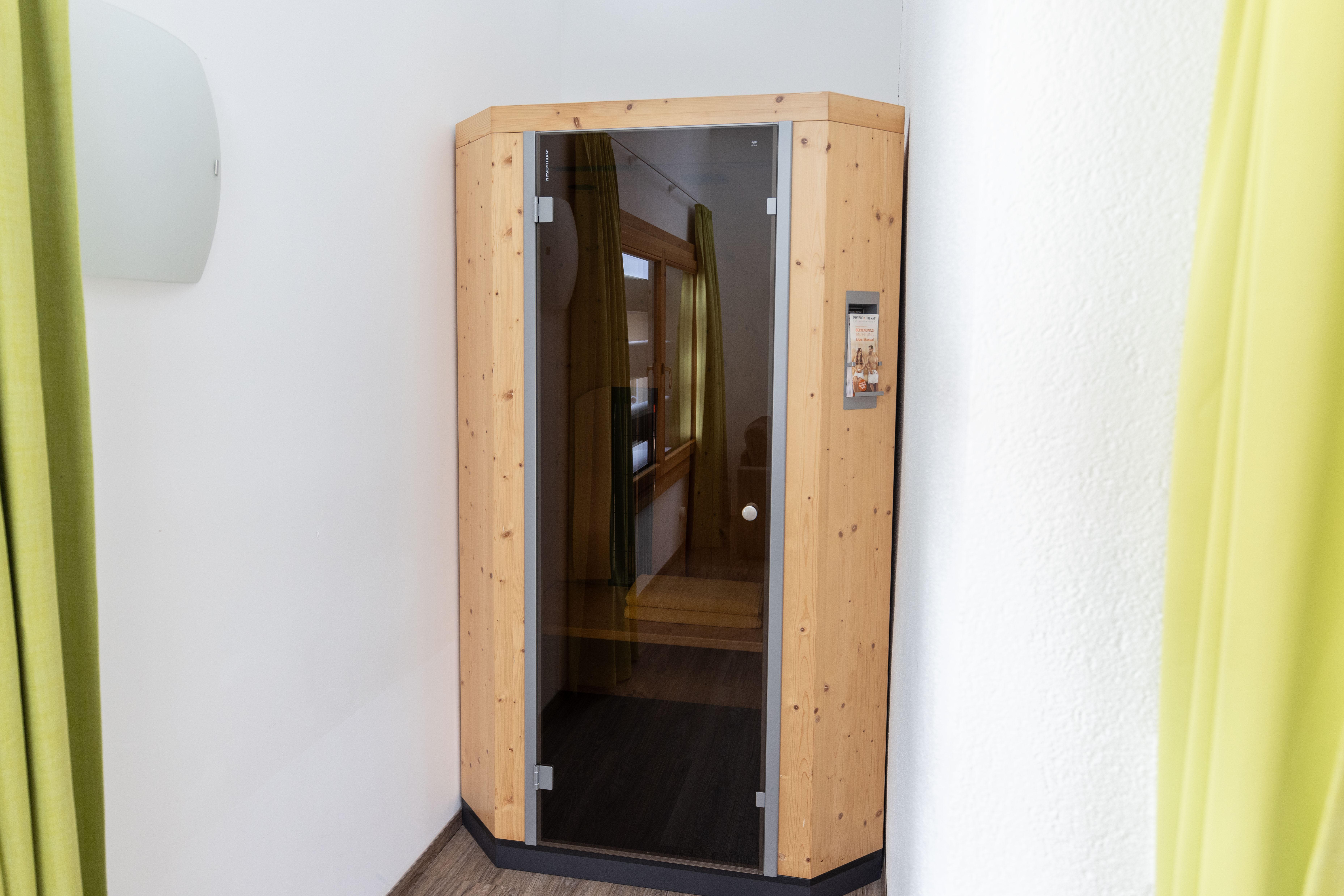 Das Wellness-Appartment SUN 5 (ca. 39m²) besticht durch sein spezielles Design und bietet Platz für 2-3 Personen. Ausstattung: 1 Doppelzimmer mit Doppelbett und ein separates Schlafsofa für eine weitere Person, Infrarotkabine im Schlafzimmer, Badezimmer mit Dusche/WC und Haarföhn, Wohnküche mit Geschirrspüler, Mikrowelle, Kaffeemaschine, Kabel-TV, gratis W-Lan, Balkon.