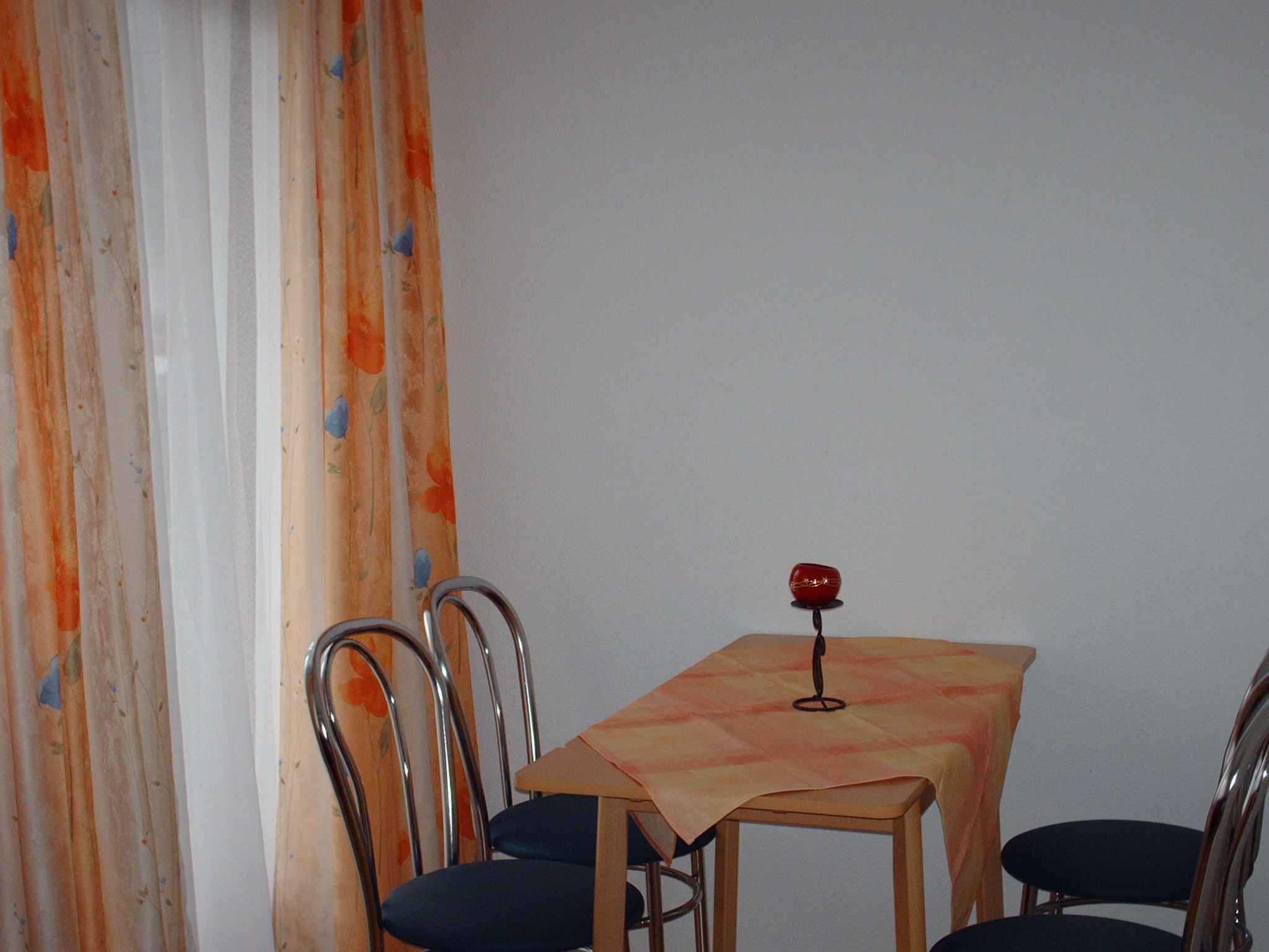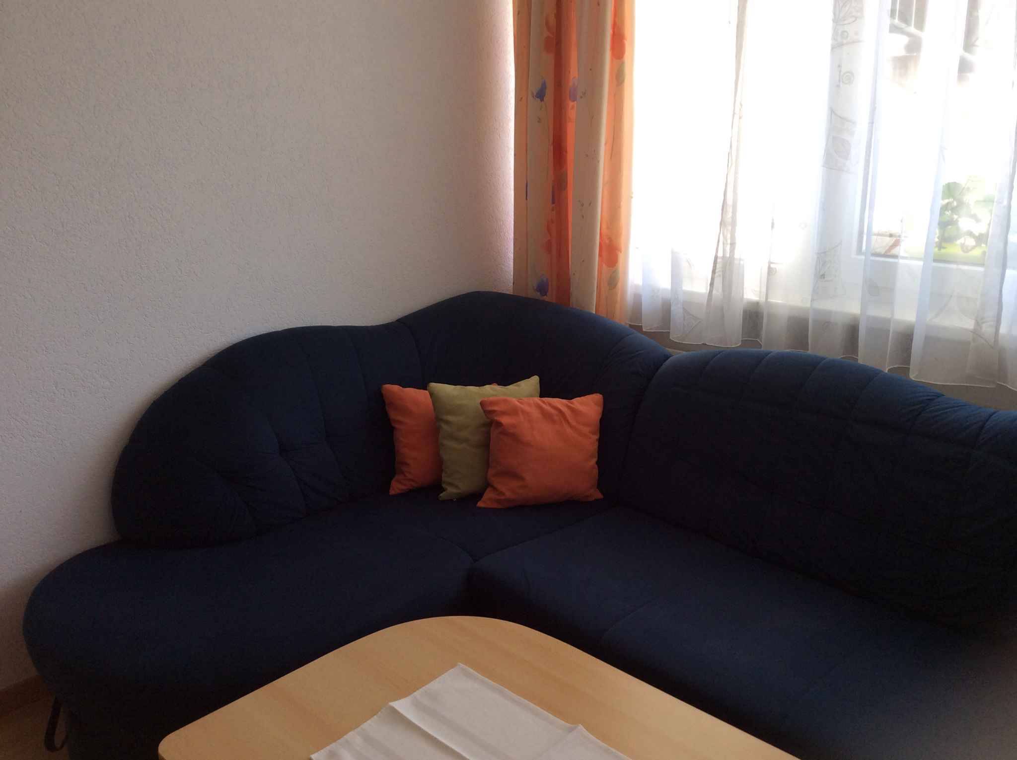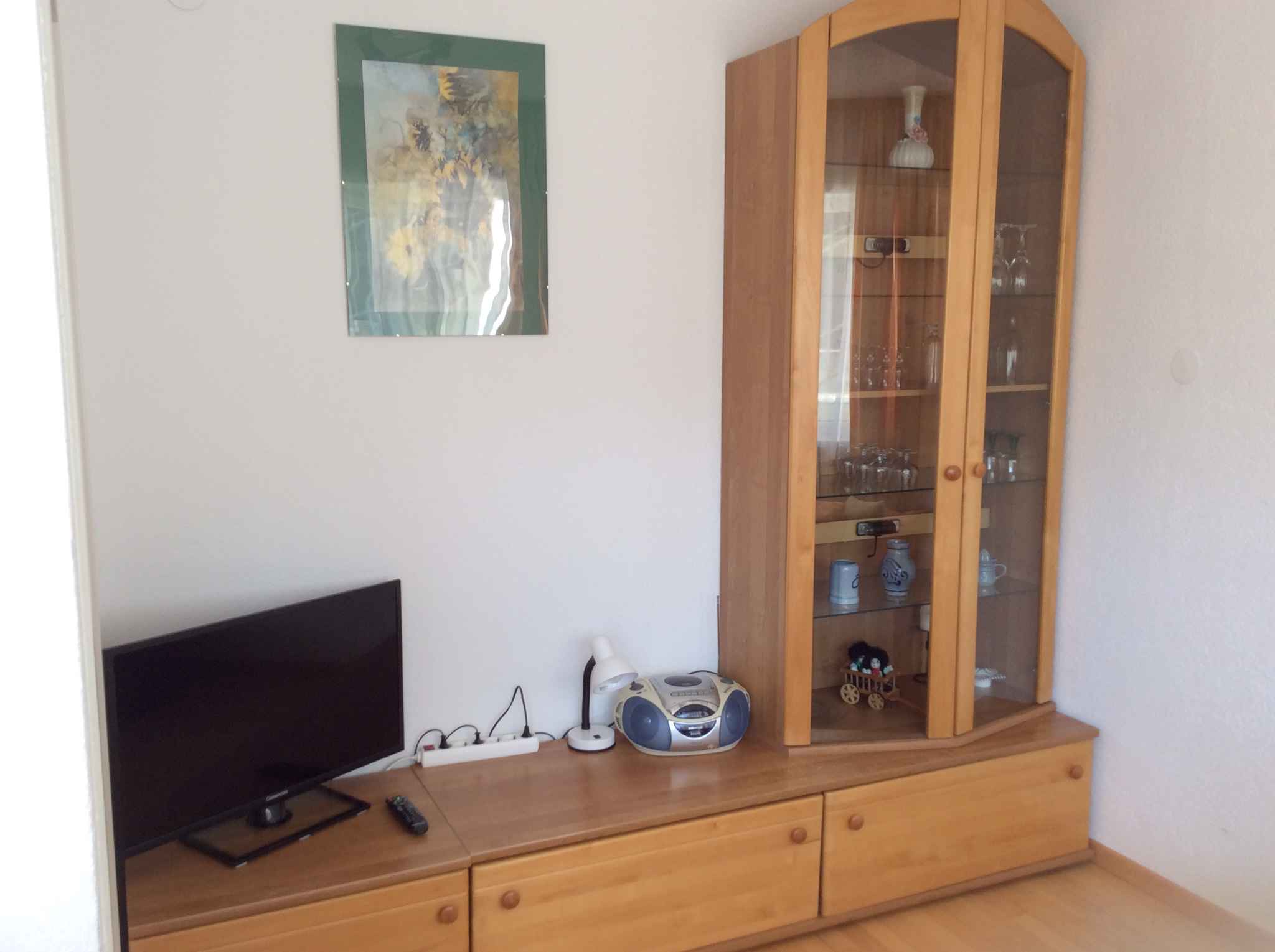 Ihre Ferienwohnung erstreckt sich über 1 Etage, 2 Zimmer (davon 1 Schlafzimmer), ist 43 qm groß und ist für maximal 4 Personen geeignet. An kälteren Tagen kann Ihre Ferienwohnung beheizt werden mit Zentralheizung (Öl). Der Eingang führt über eine Außentreppe direkt in den Vorraum. Die Zimmer teilen sich wie folgt auf: Wohn/Schlafzimmer mit 1 Zusatzbett auf Sitzecke, Sitzecke, Essecke, TV und Radio. Die Essecke bietet Platz für 4 Personen. Sie haben Zugang zur 45 qm großen Terrasse. Schlafzimmer mit 1 Doppelbett und 1 Zusatzbett. Kochnische mit Essecke, Elektroherd (Cerankochfeld), Backofen, Dunstabzugshaube, Kühlschrank (Eisfach), Kaffeemaschine und elektrischem Wasserkocher. Bad mit Badewanne mit Duscheinrichtung, 1 Waschbecken und WC. Darüber hinaus ist Ihre Ferienwohnung mit WLAN- Internetzugang ausgestattet. TV- bzw. Rundfunksender können per Satellit empfangen werden.